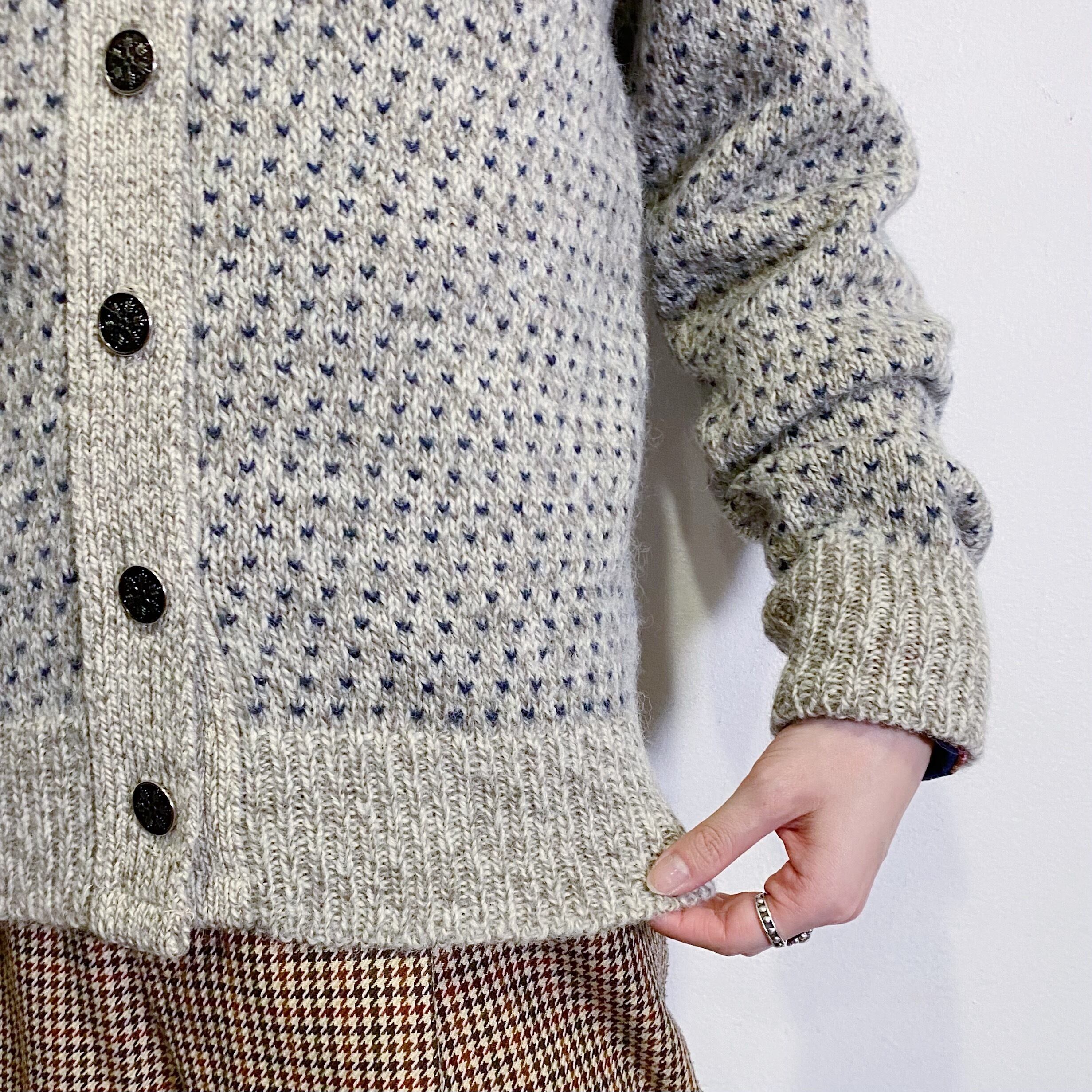 グレーとネイビーの色合いがかわいい、80‐90年代頃のL.L.Beanのニットカーディガンです。