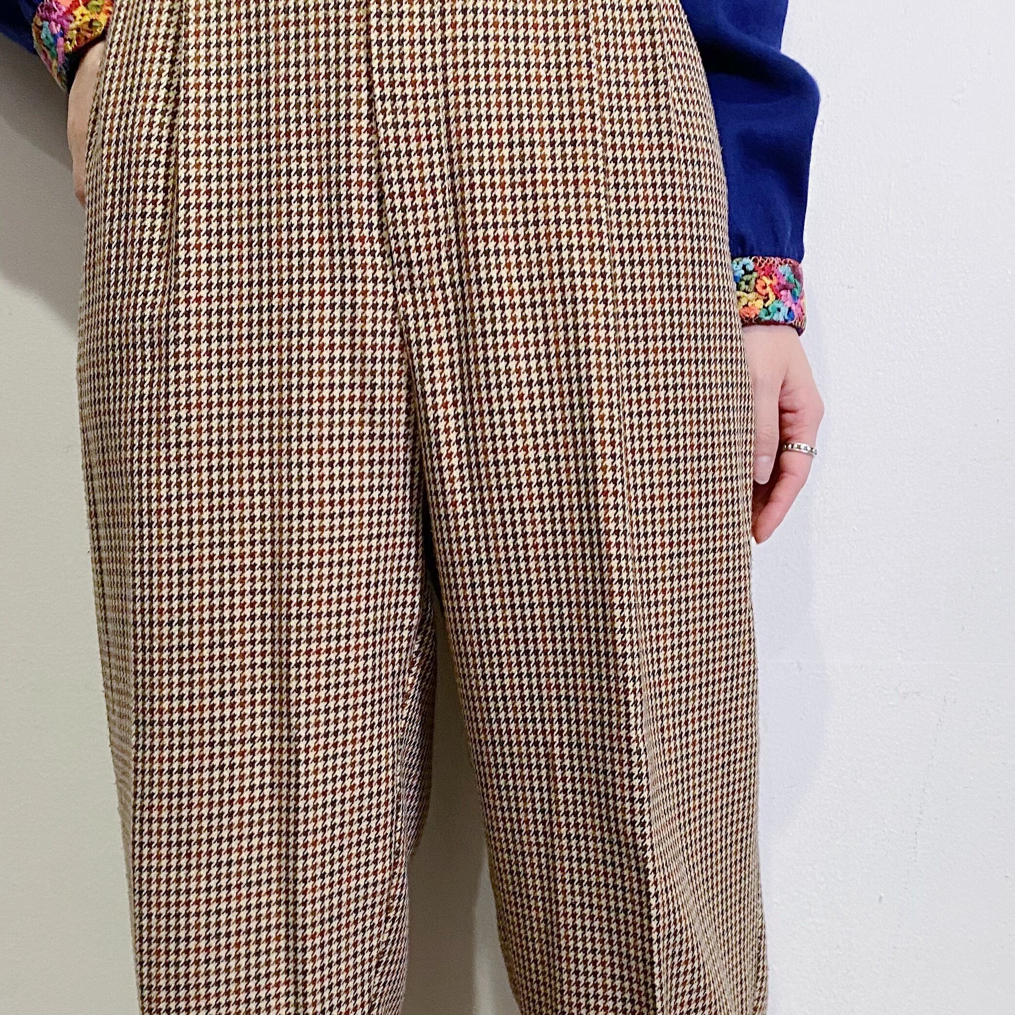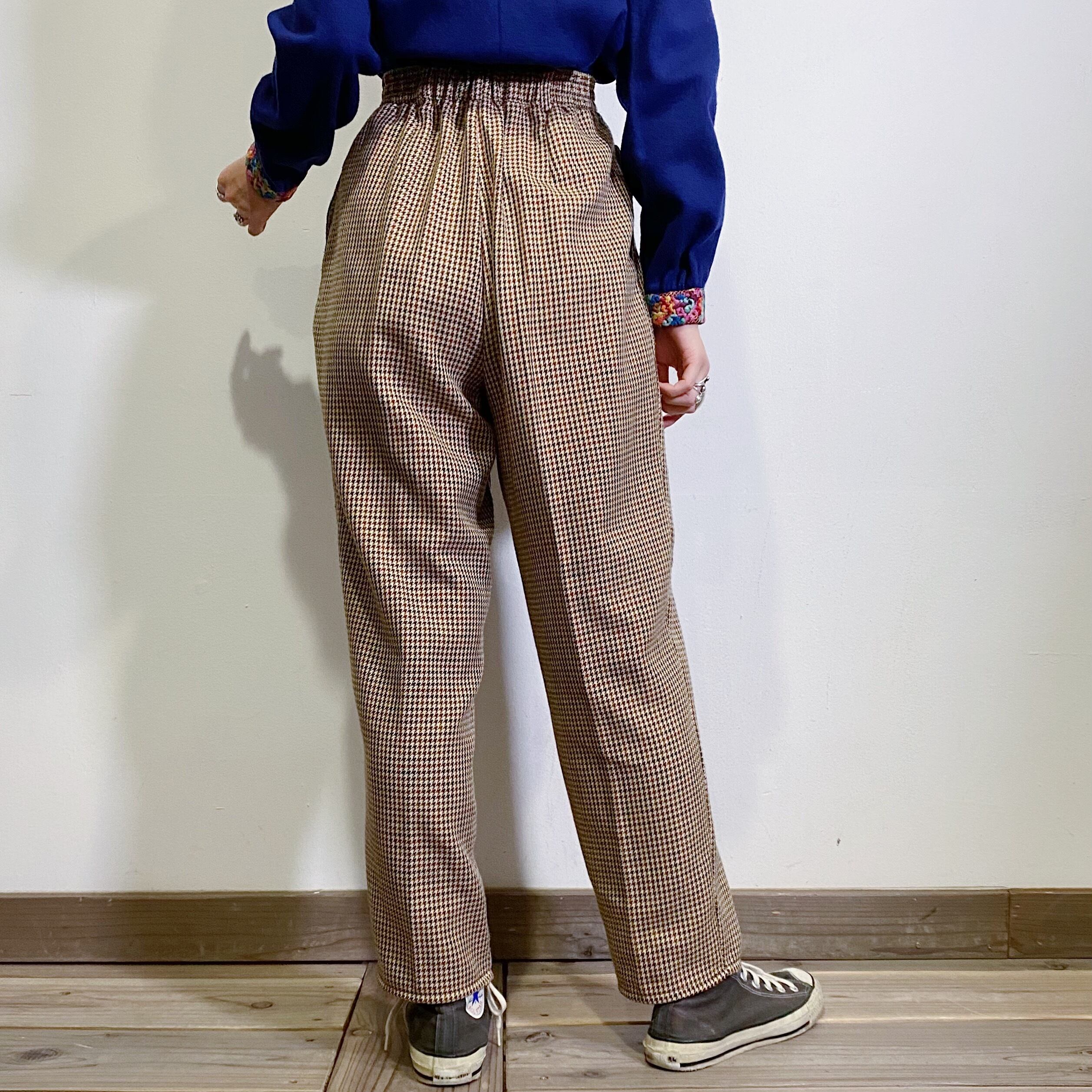 ブラウンベースの千鳥柄がかわいい、80‐90年代のスラックスパンツです。