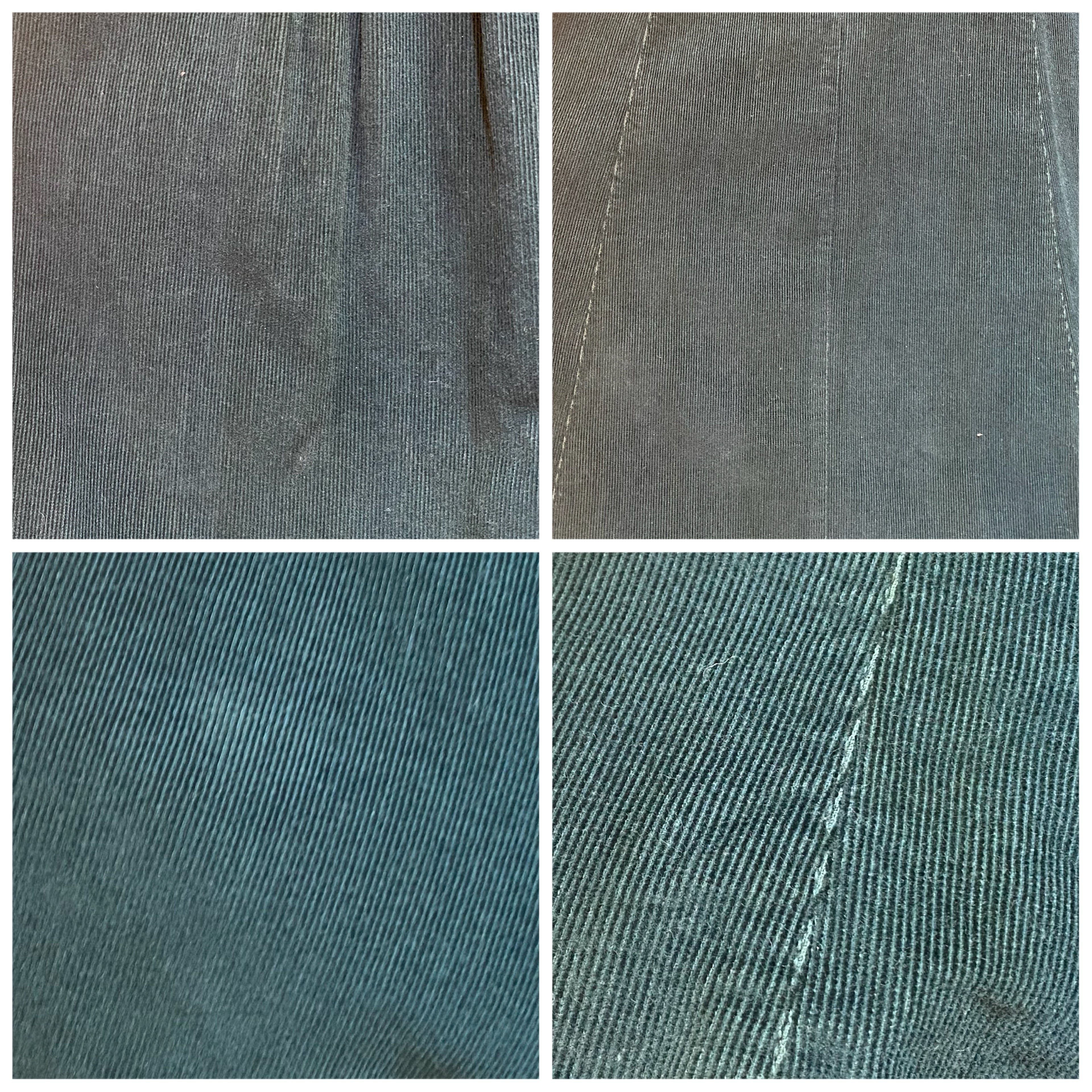 コーデュロイ素材特有の小傷や起毛が剥げて生地が薄くなっている箇所がございますが、気にならない程度かと思われます。