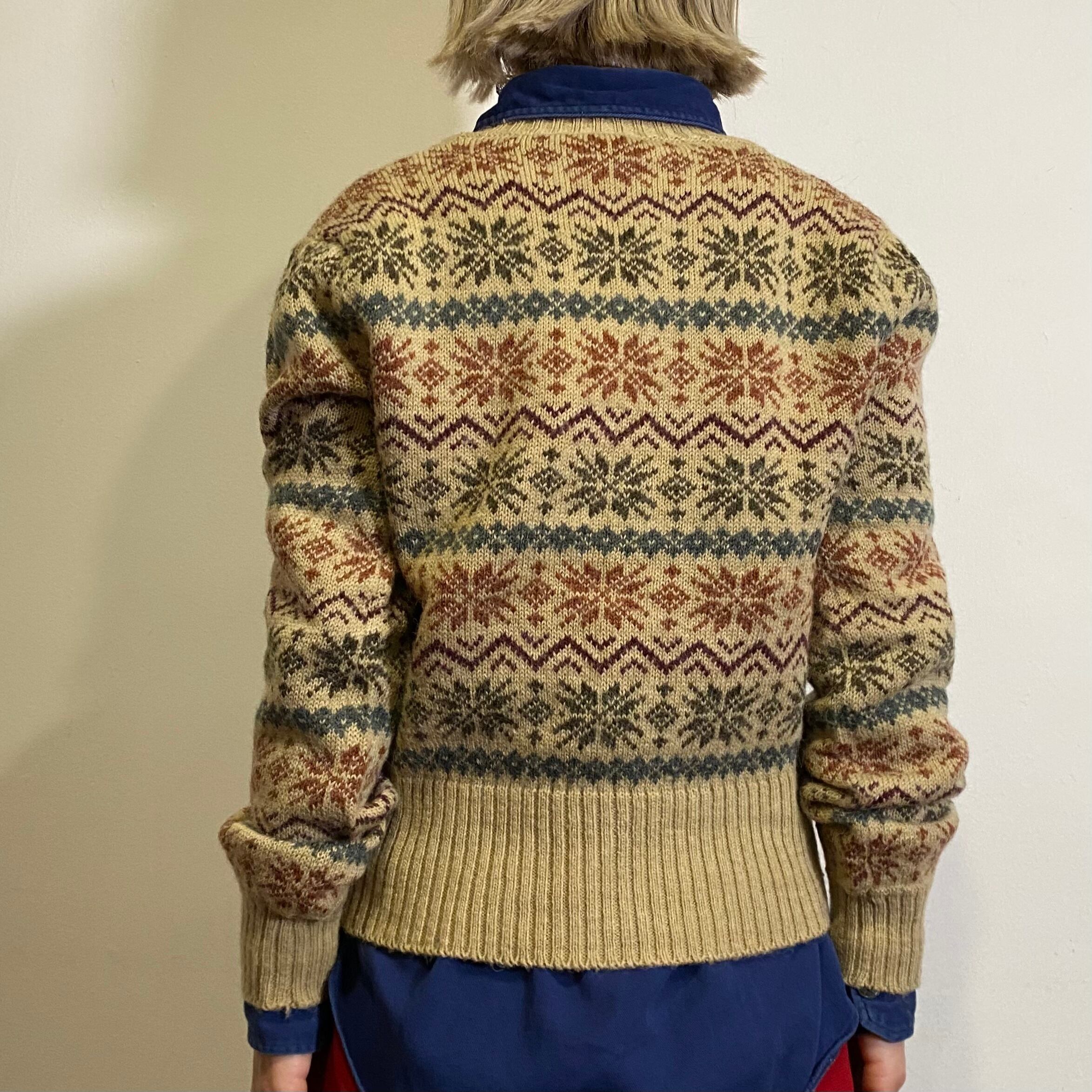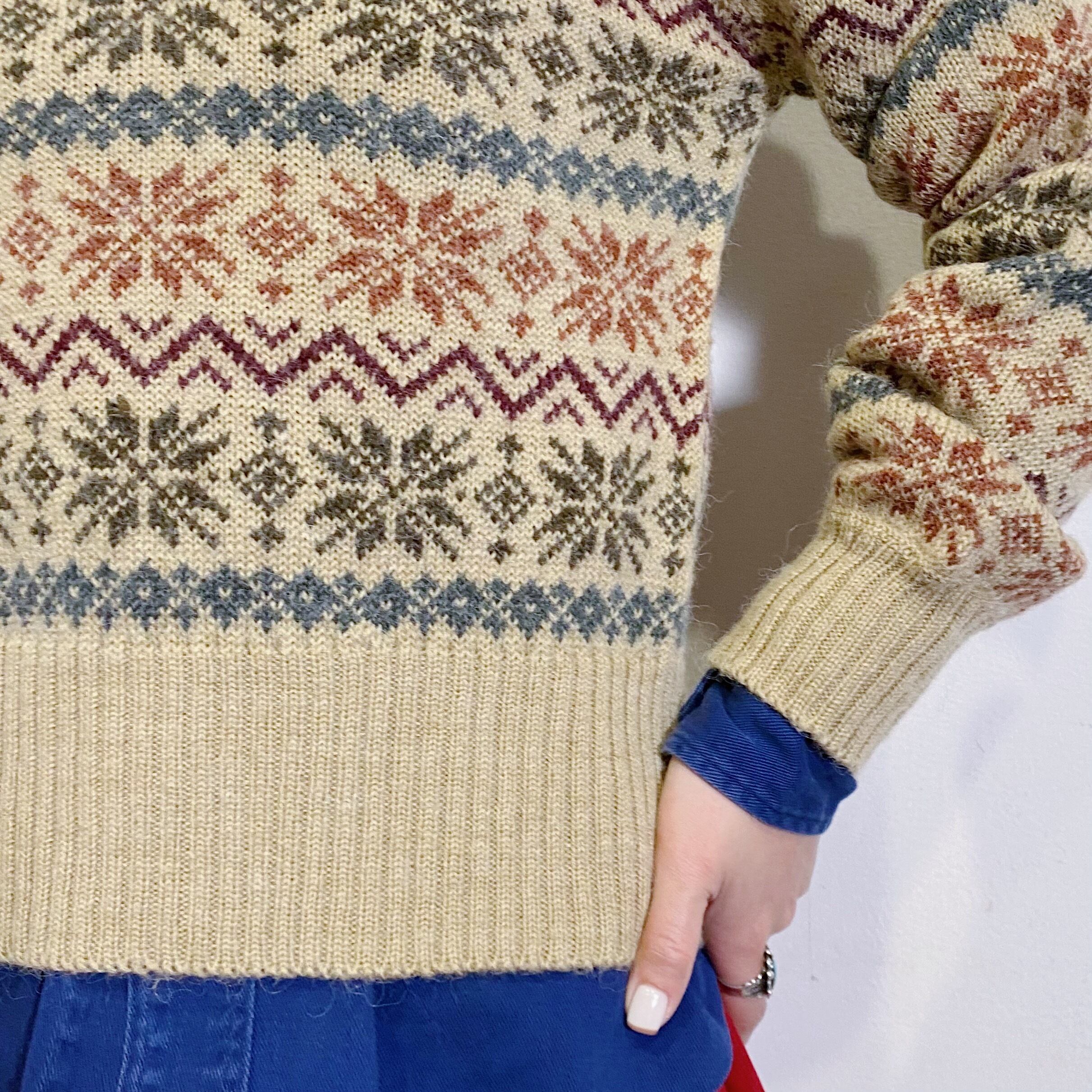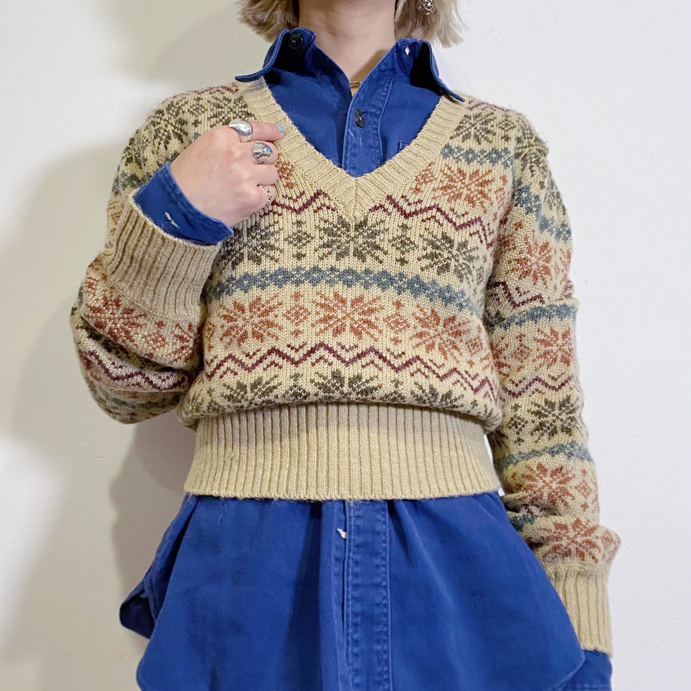雪の結晶のような編み模様が可愛い、70年代のニットセーターです。
