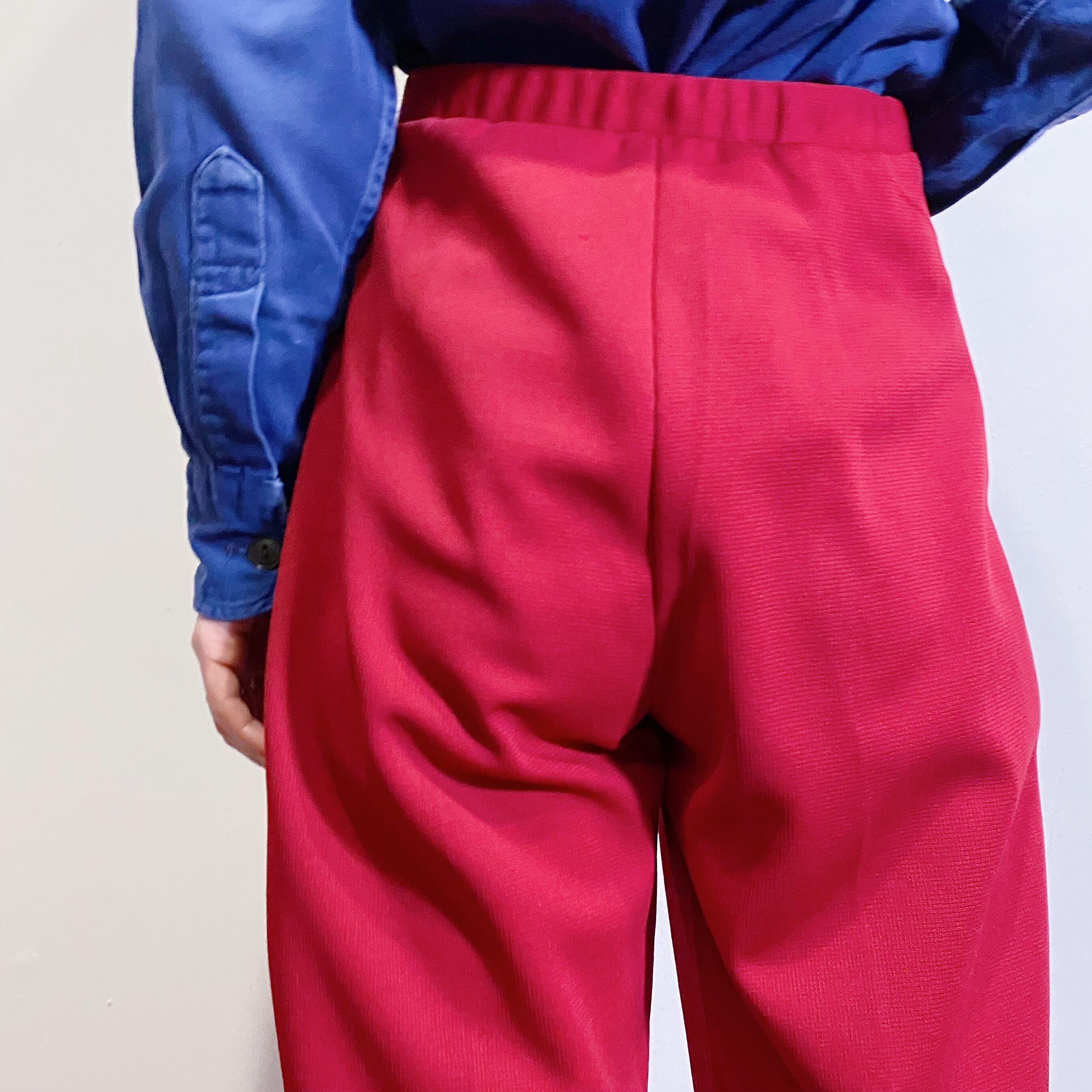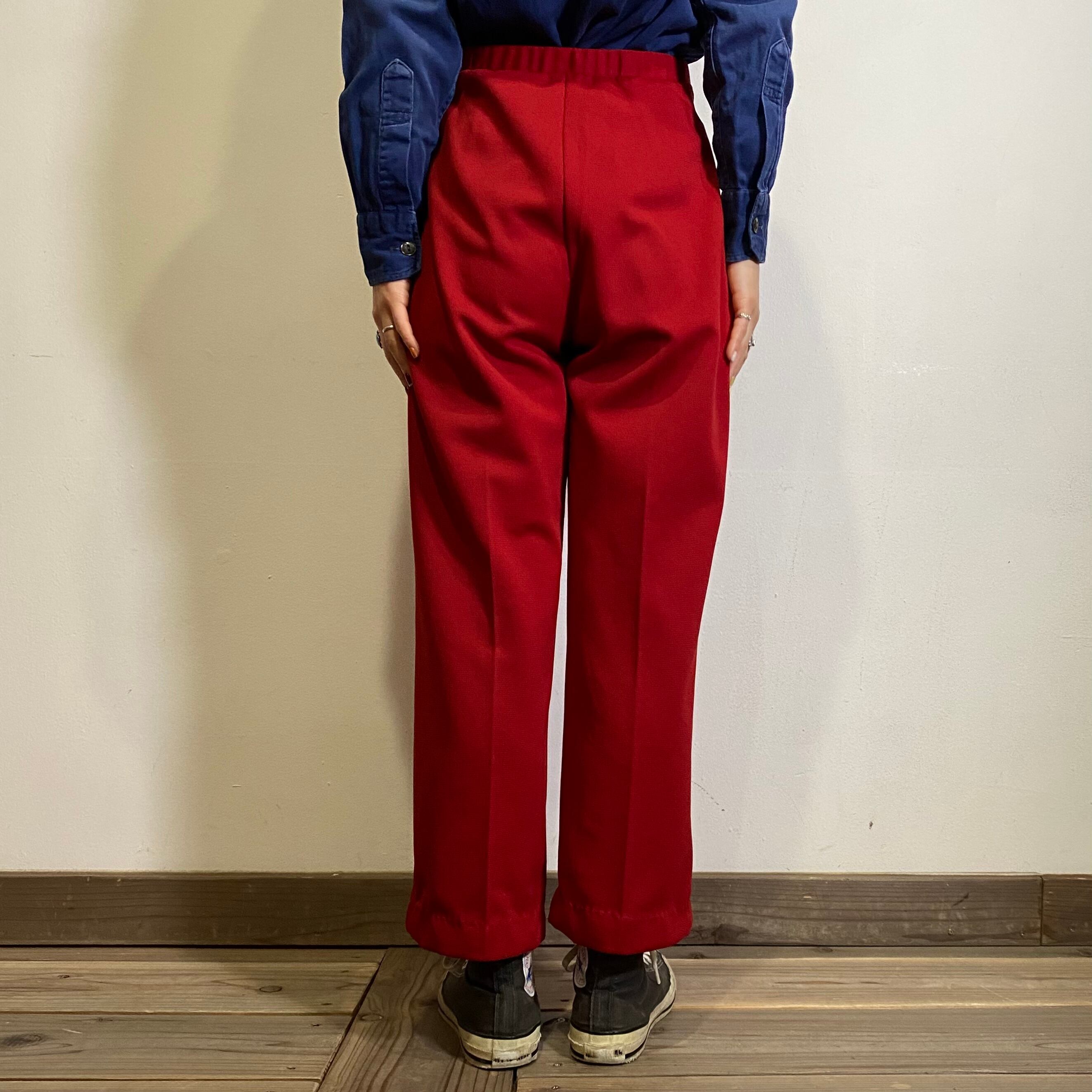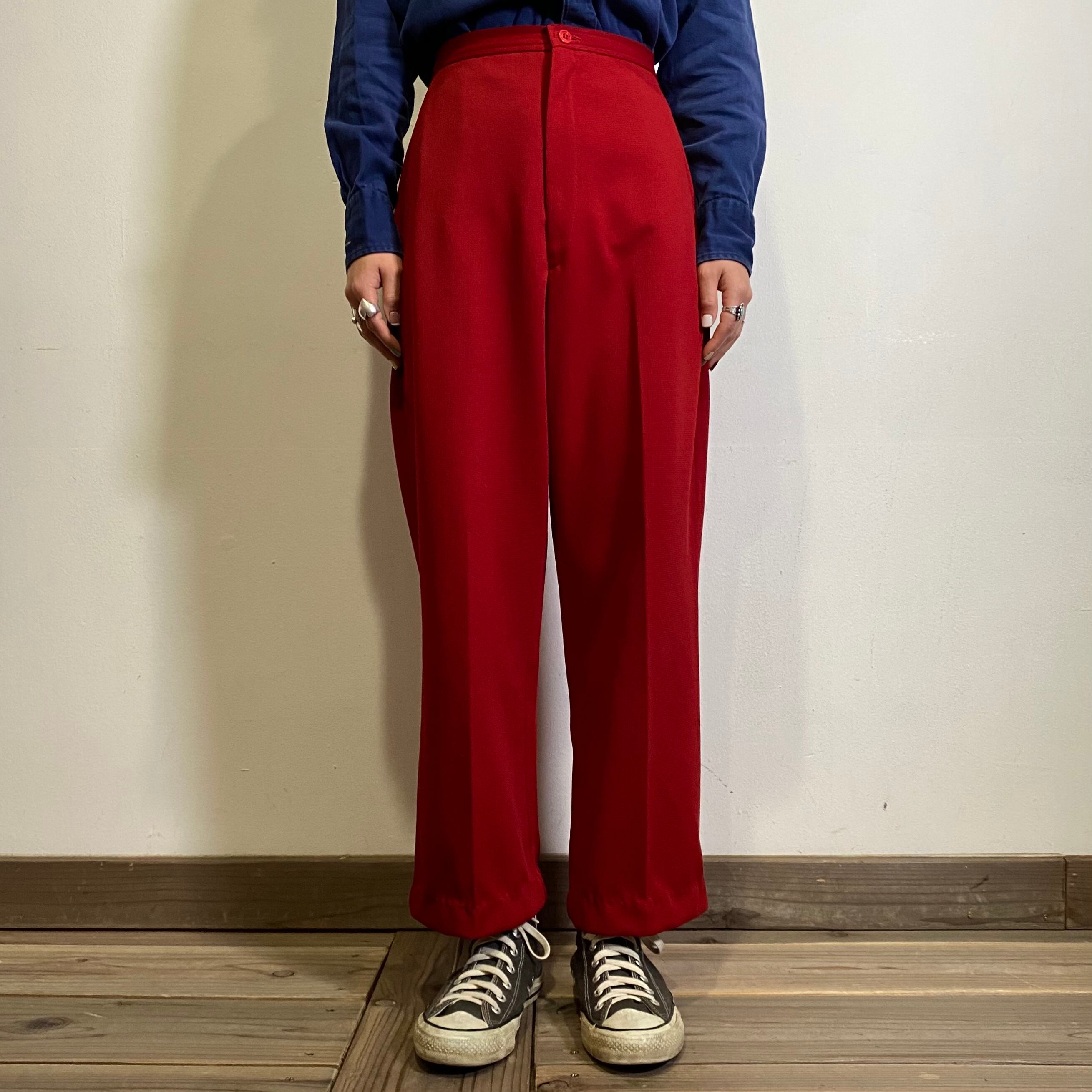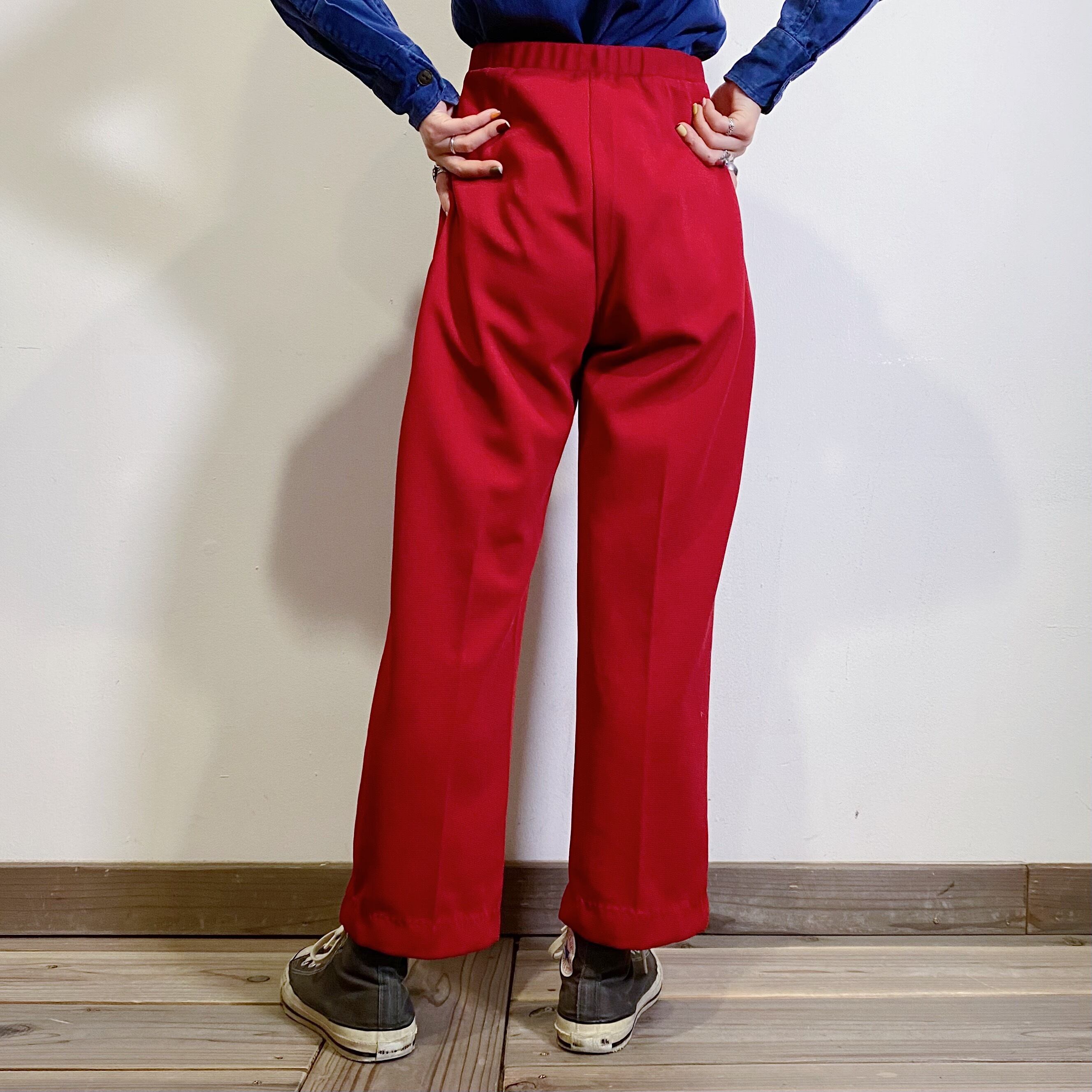 深みのあるレッドとシルエットが可愛い70年代のパンツです。