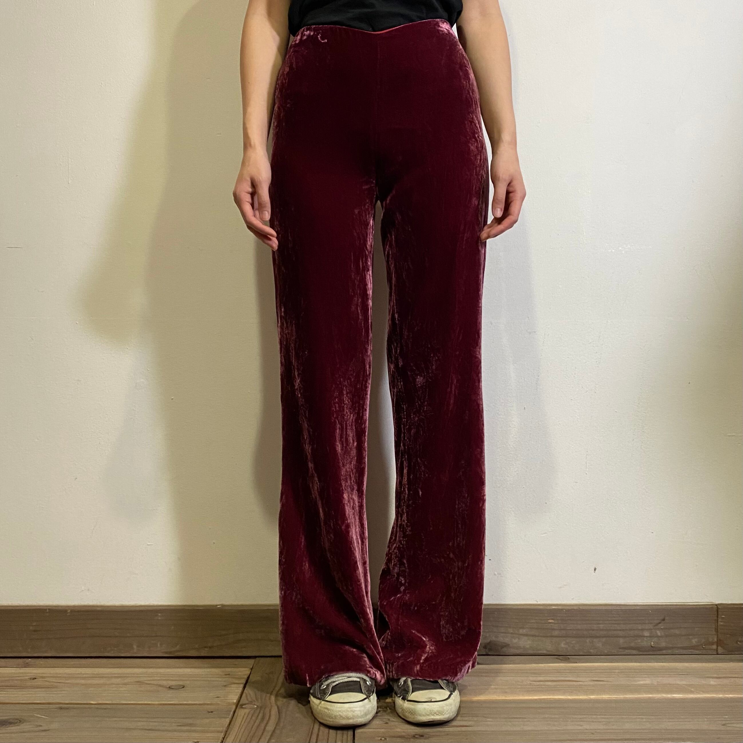 パープルとピンクの中間のような色合いが可愛いベロアパンツです。