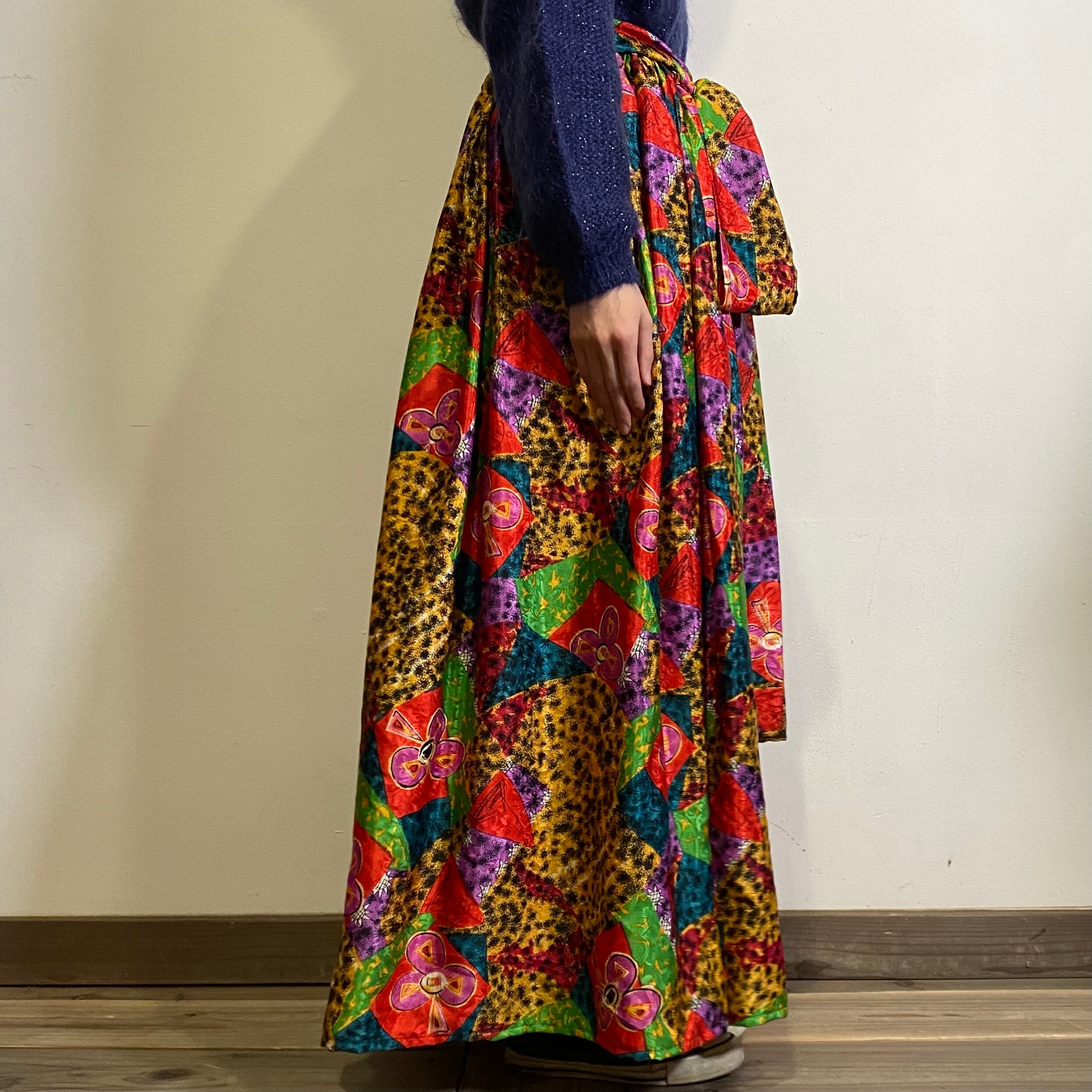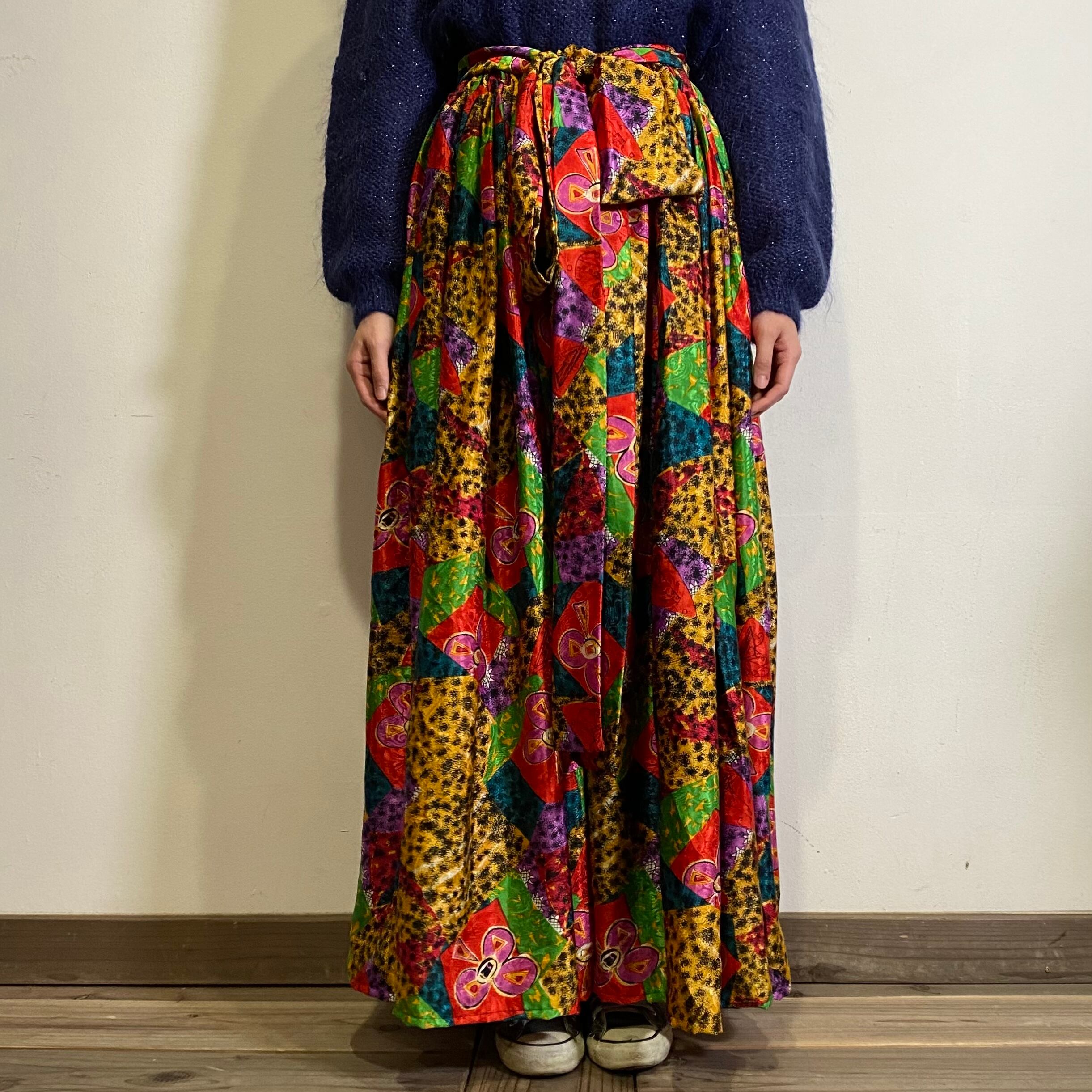 80年代らしいカラフルなテキスタイルが可愛いロングスカートです。