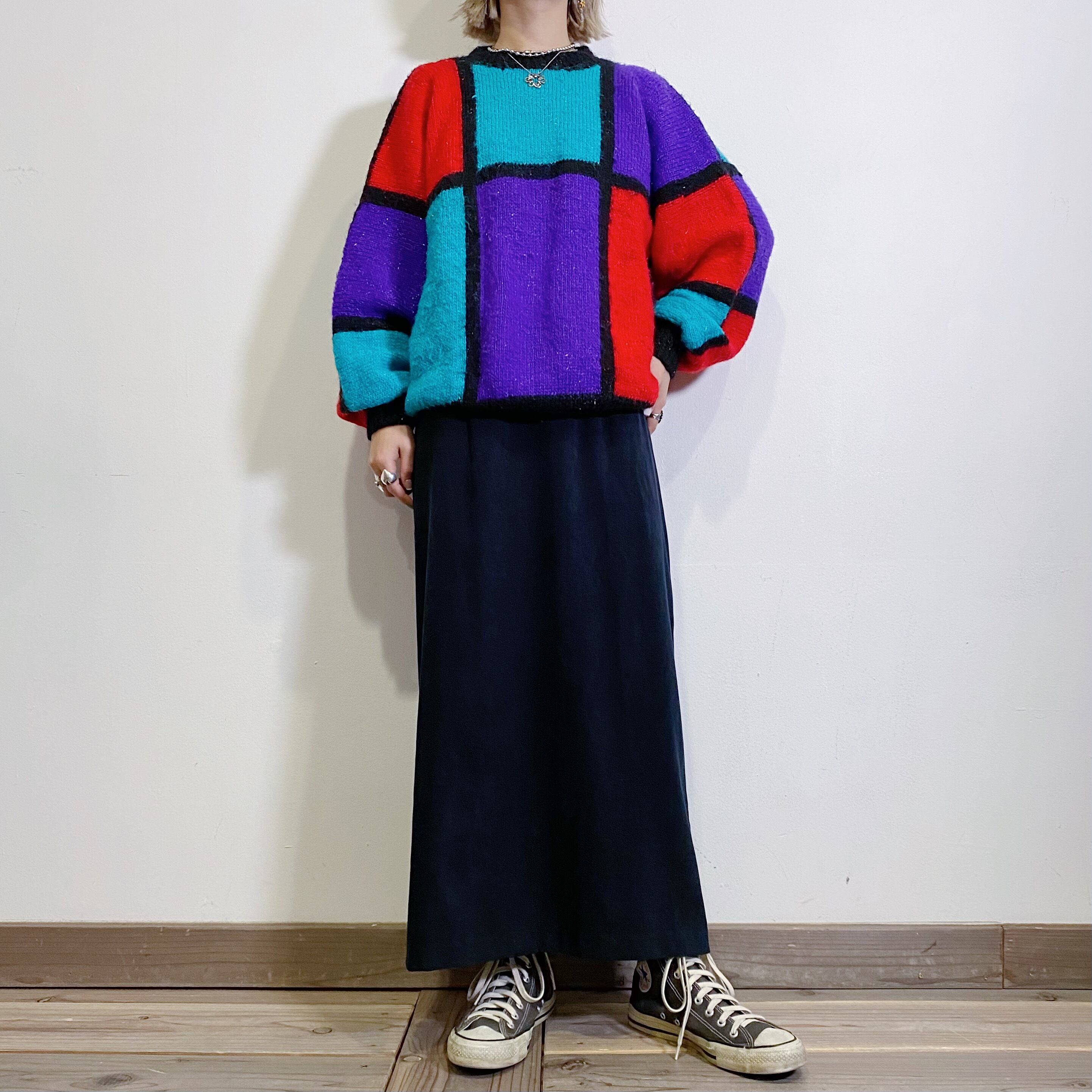 モンドリアンの作品から着想を得たであろう、アートな80年代セーターです。