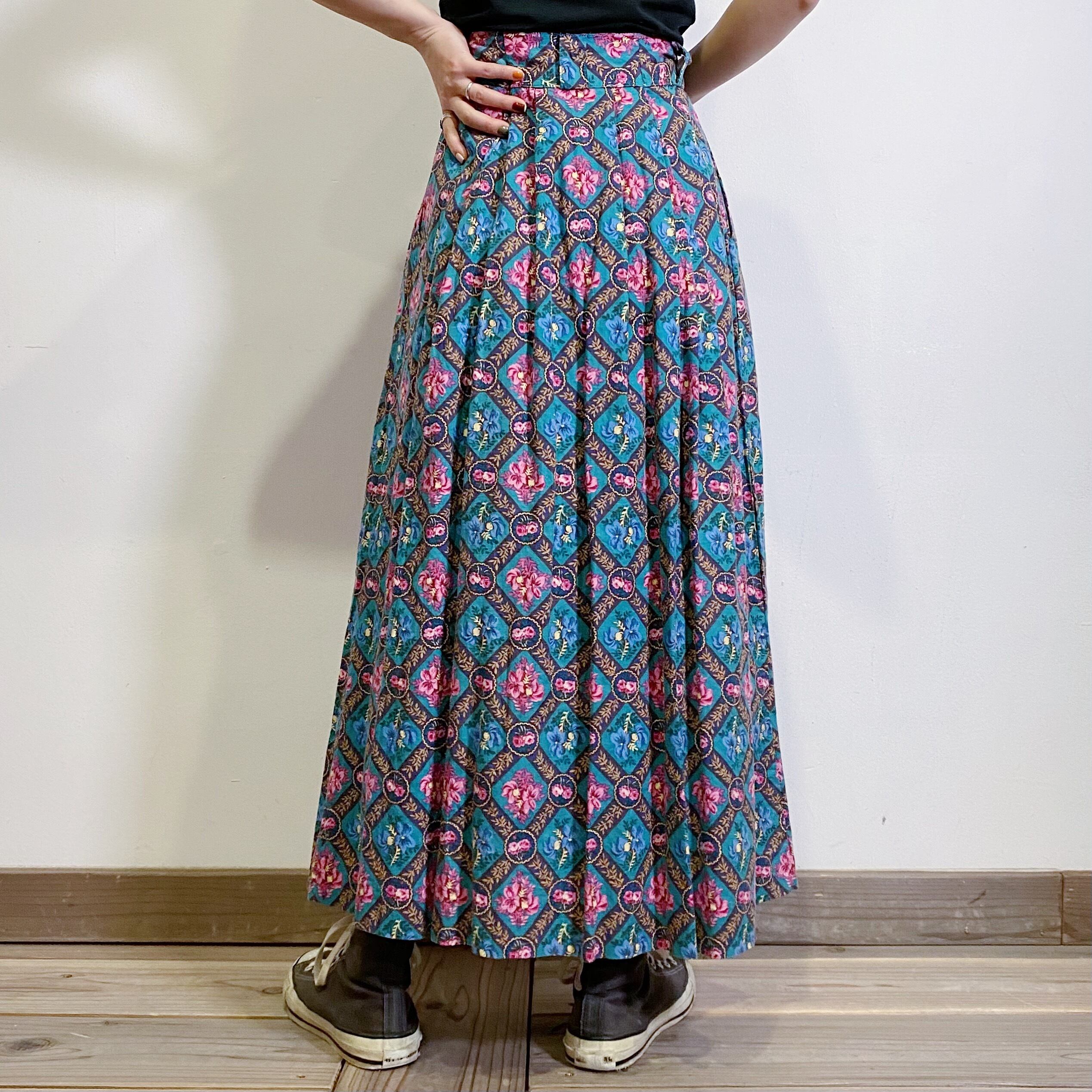 まるで海外の壁紙のようなテキスタイルが可愛いロングスカートです。