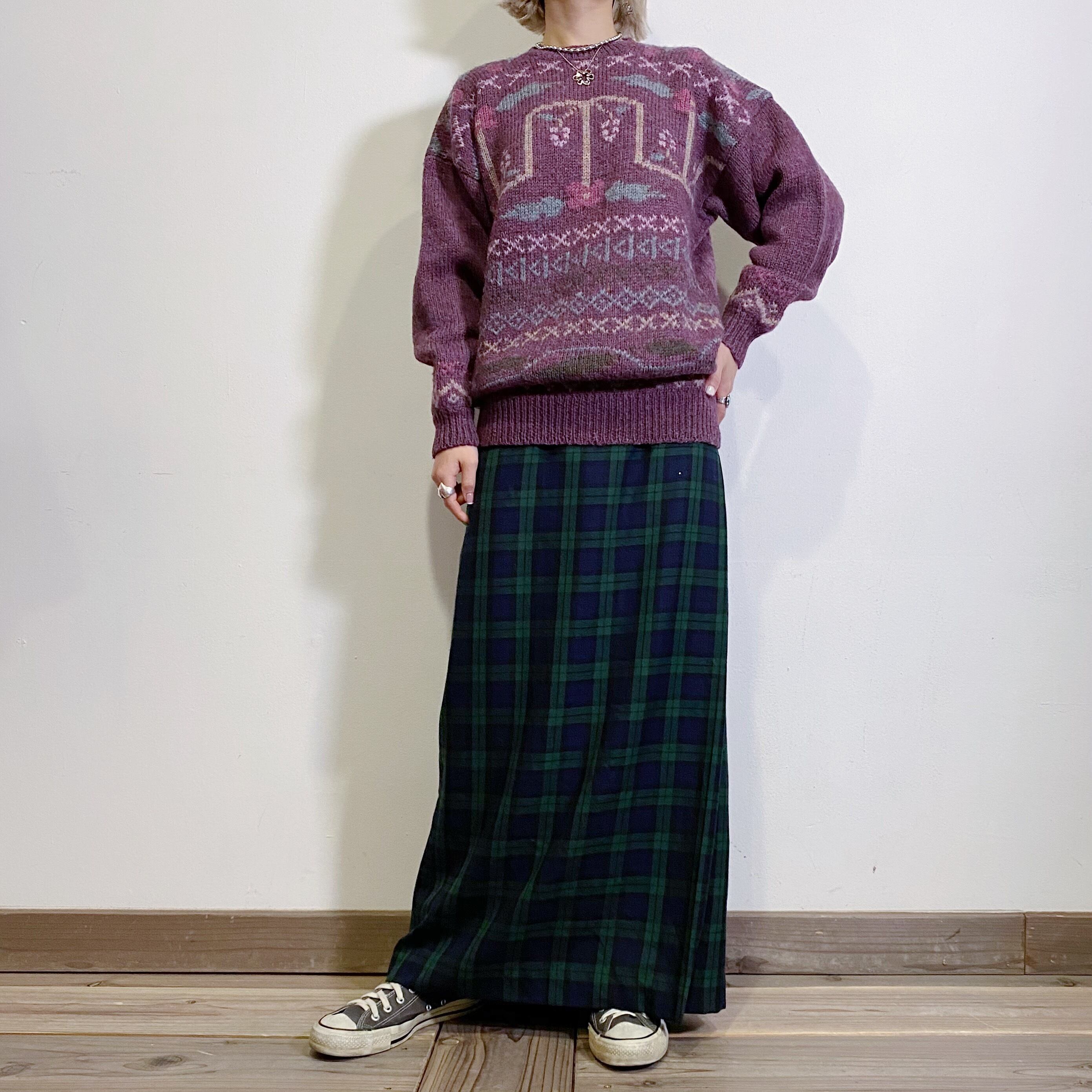 ネイビーとグリーンの落ち着いた色合いが使いやすそうな、90年代のスカートです。