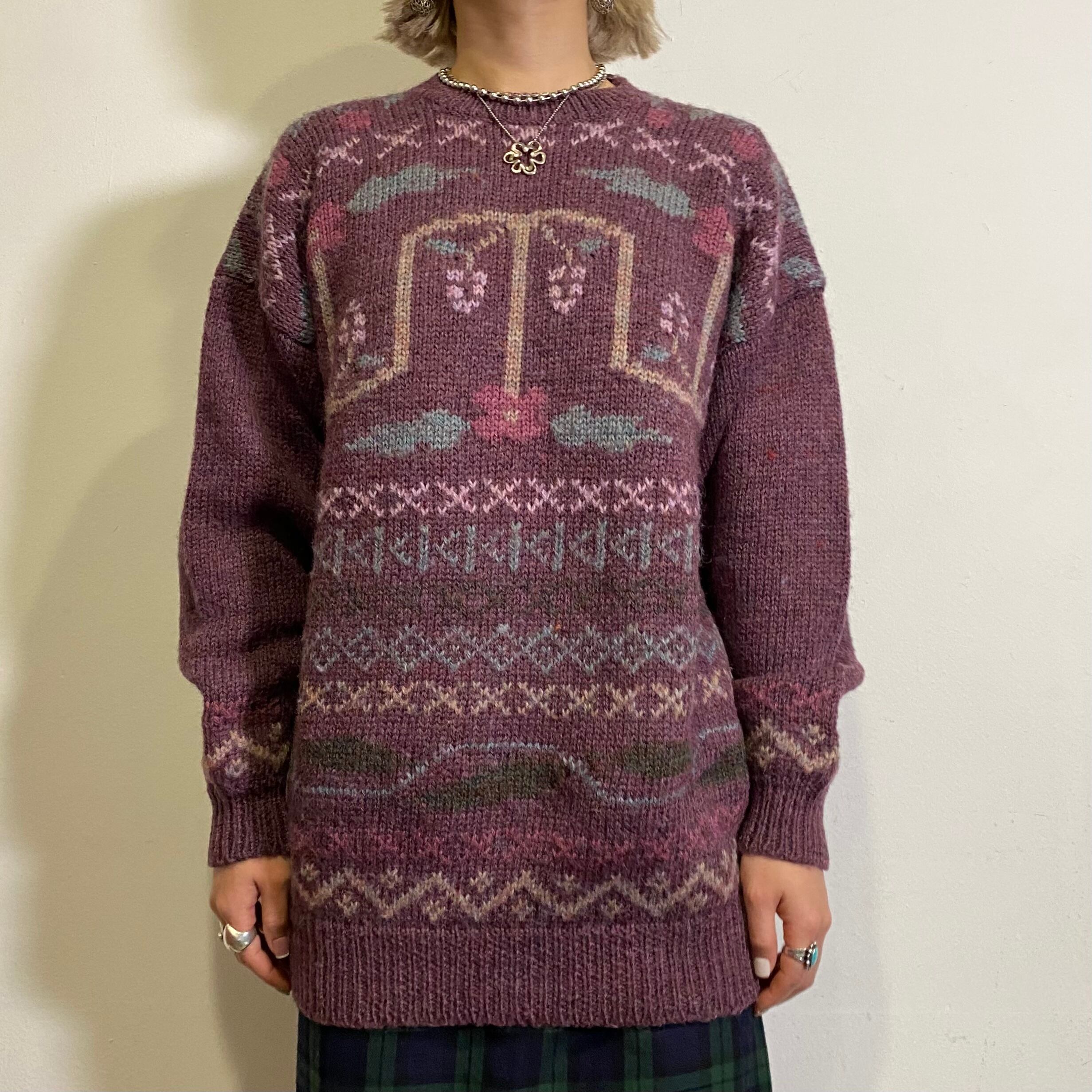 お花やブドウの模様が可愛い、90年代のニットセーターです。