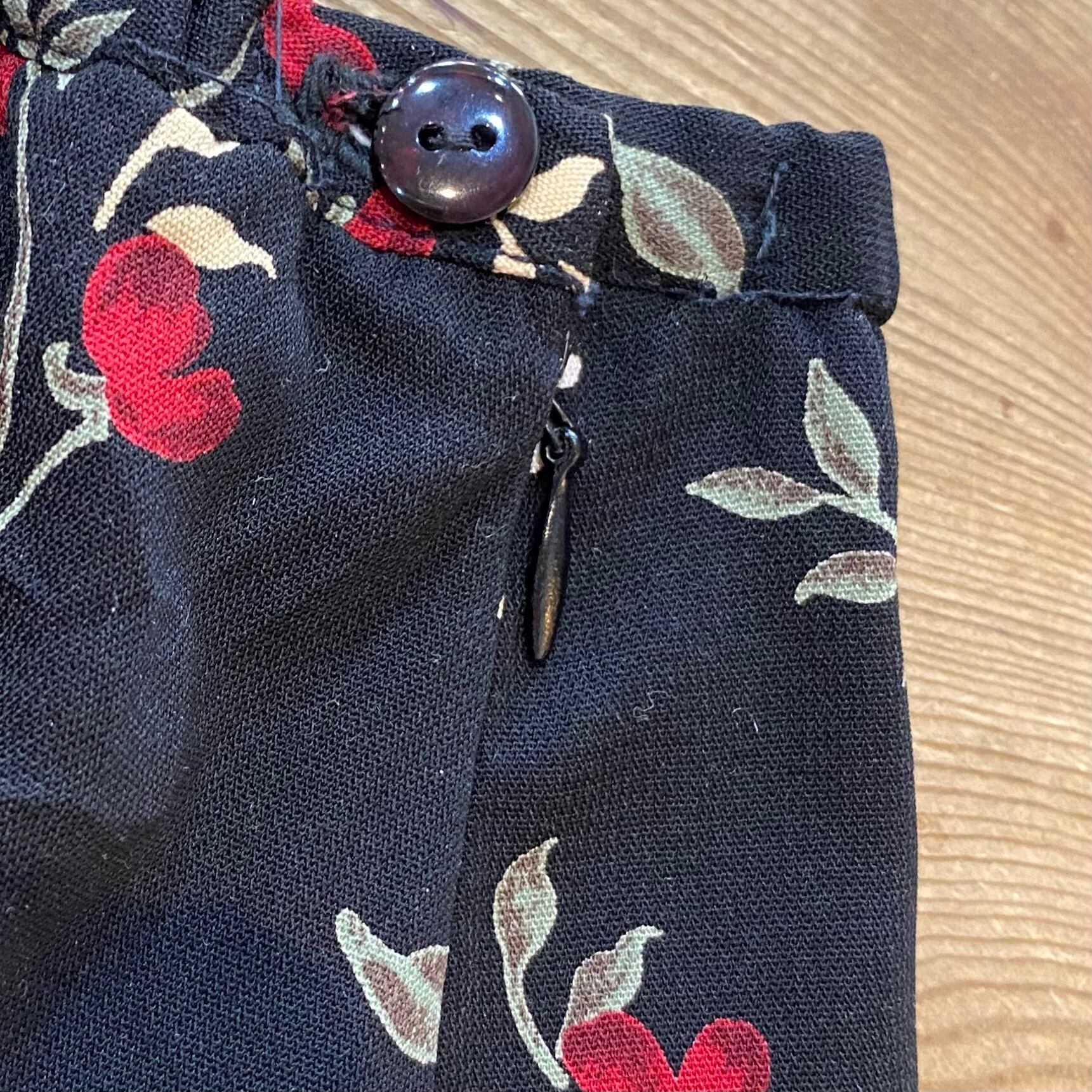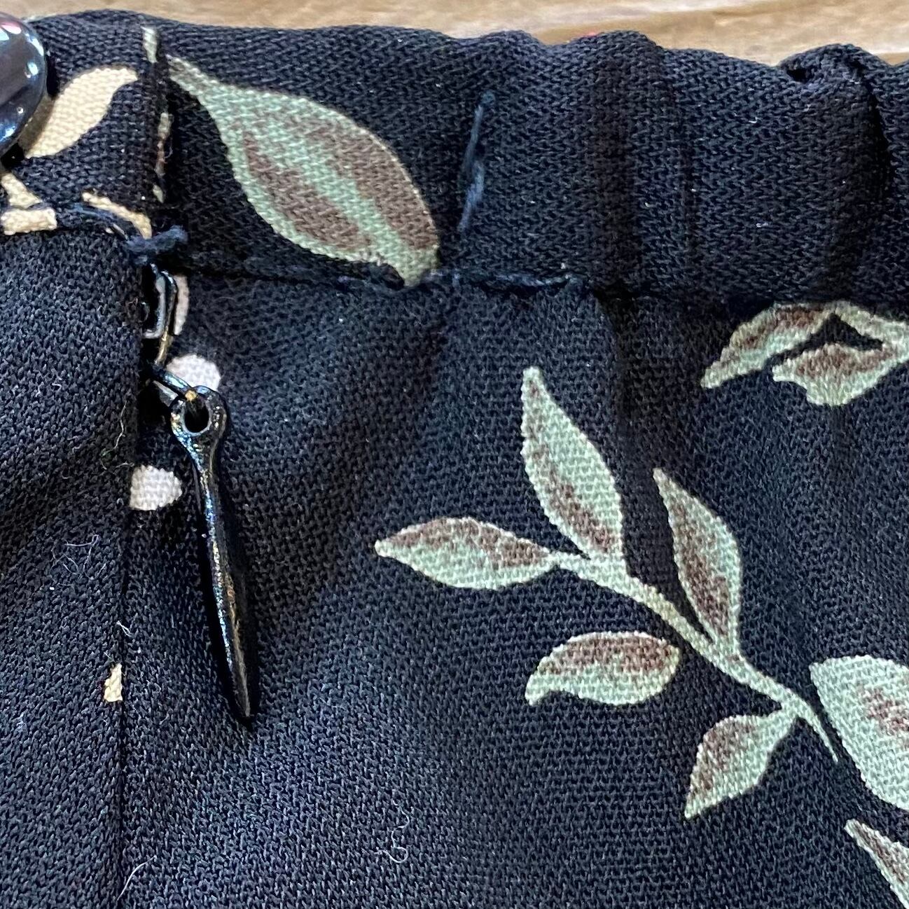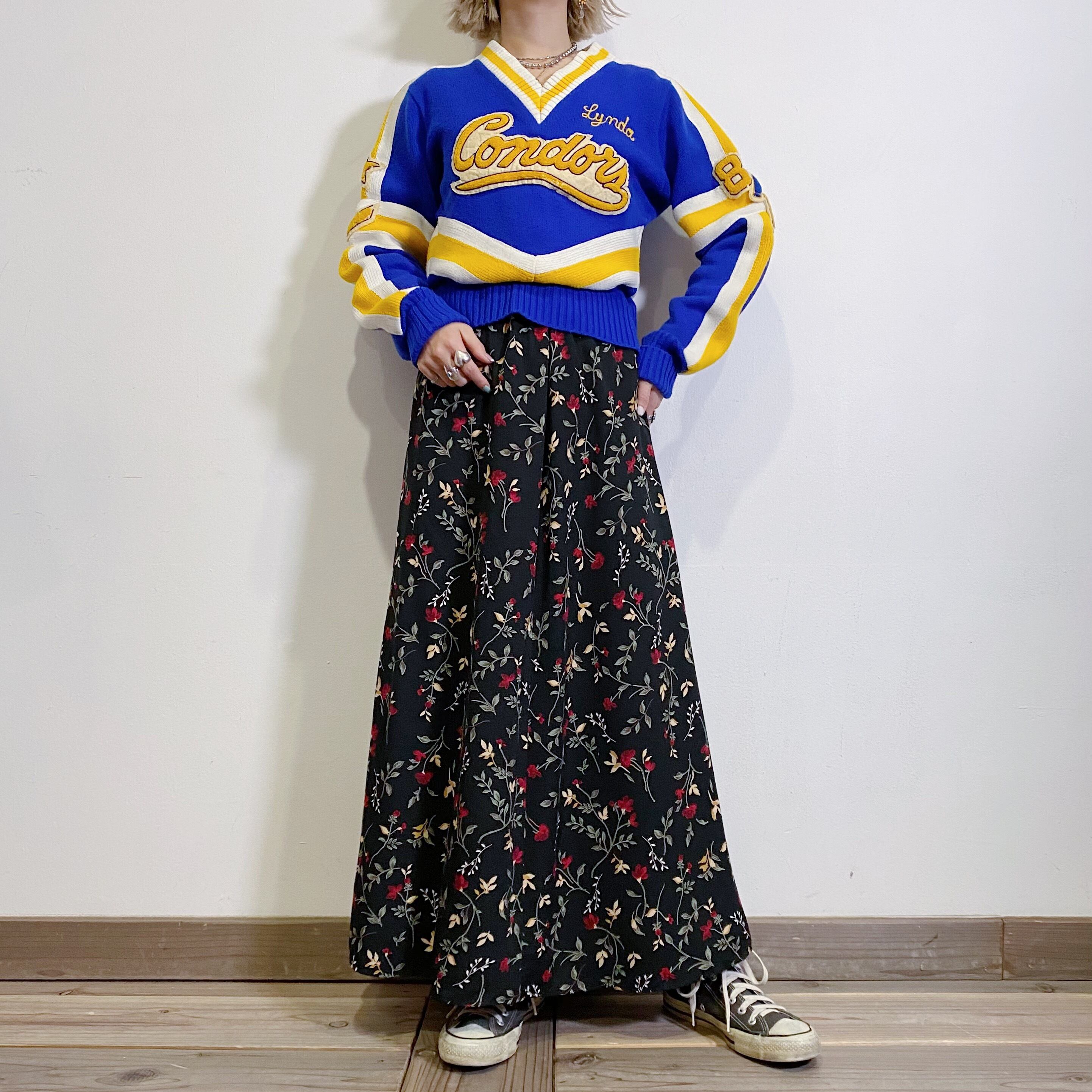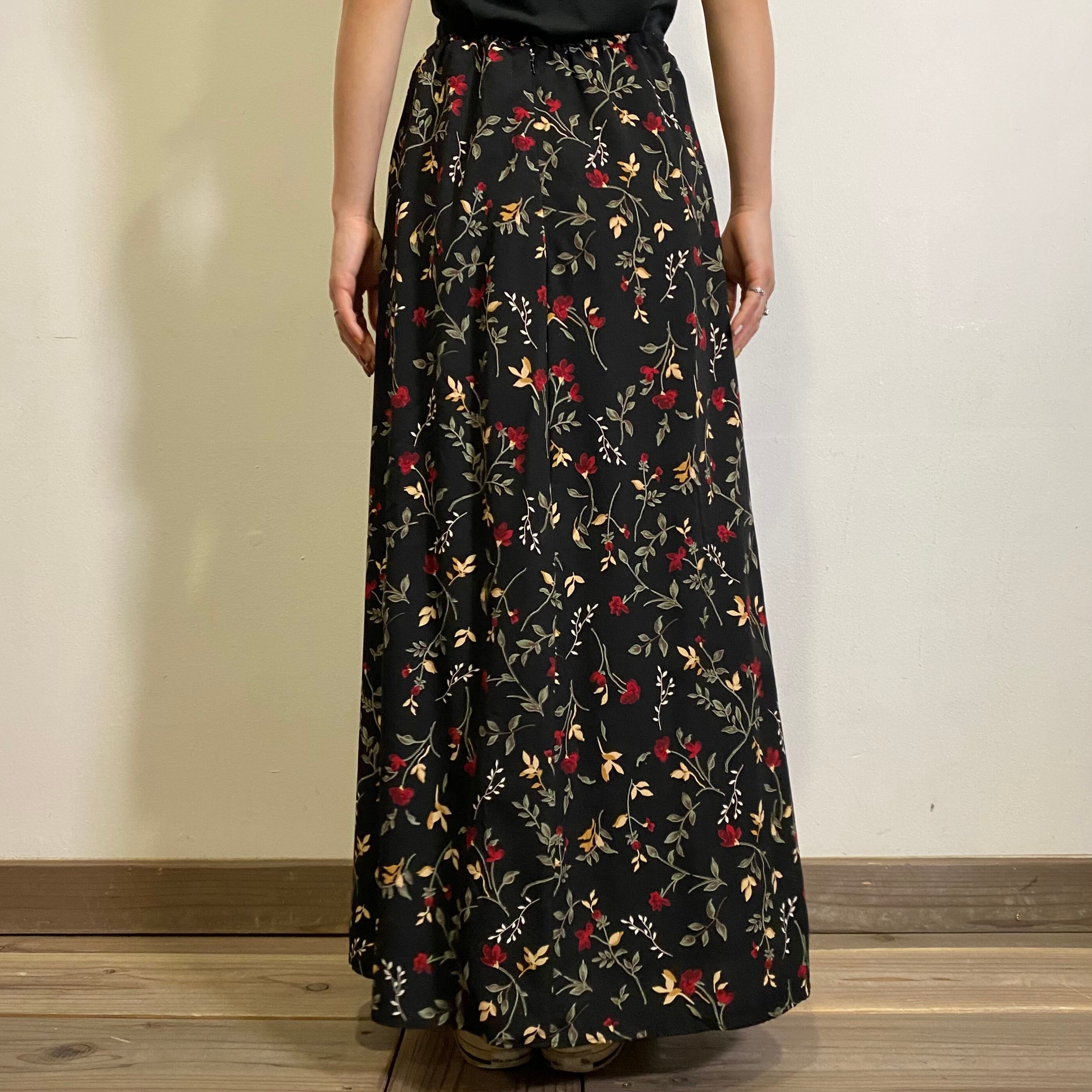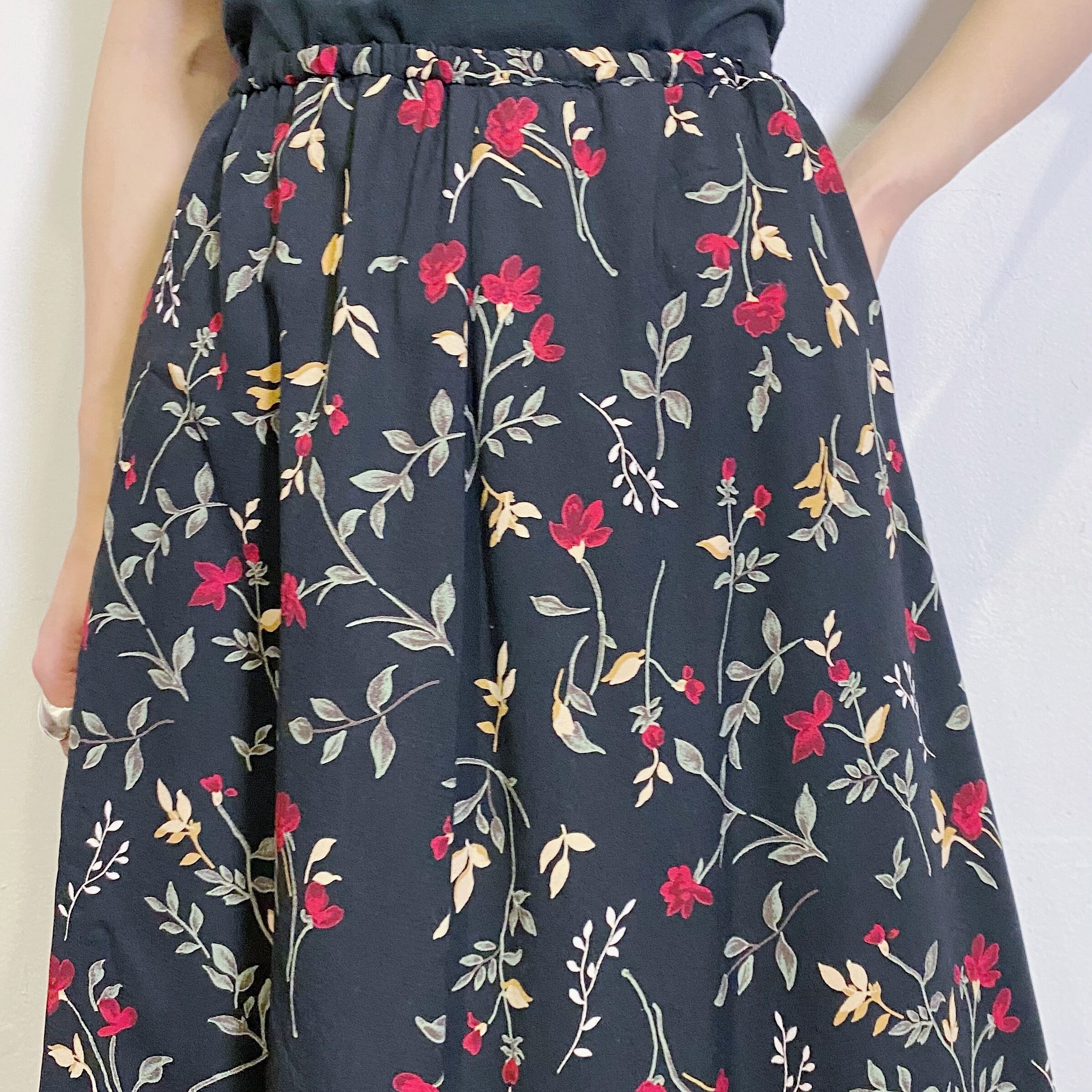 黒地に花柄が可愛い、使い勝手の良さそうなロングスカートです。