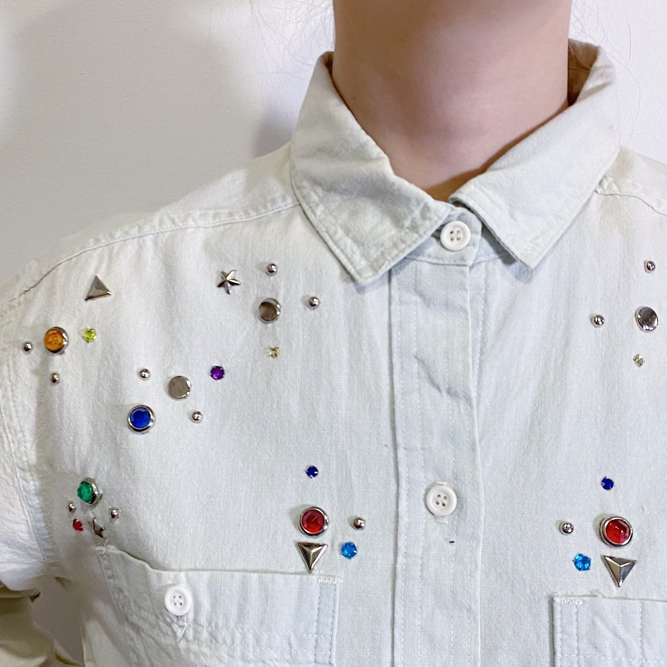 星や三角にカラフルなスタッズがかわいい、80年代のコットンシャツです。