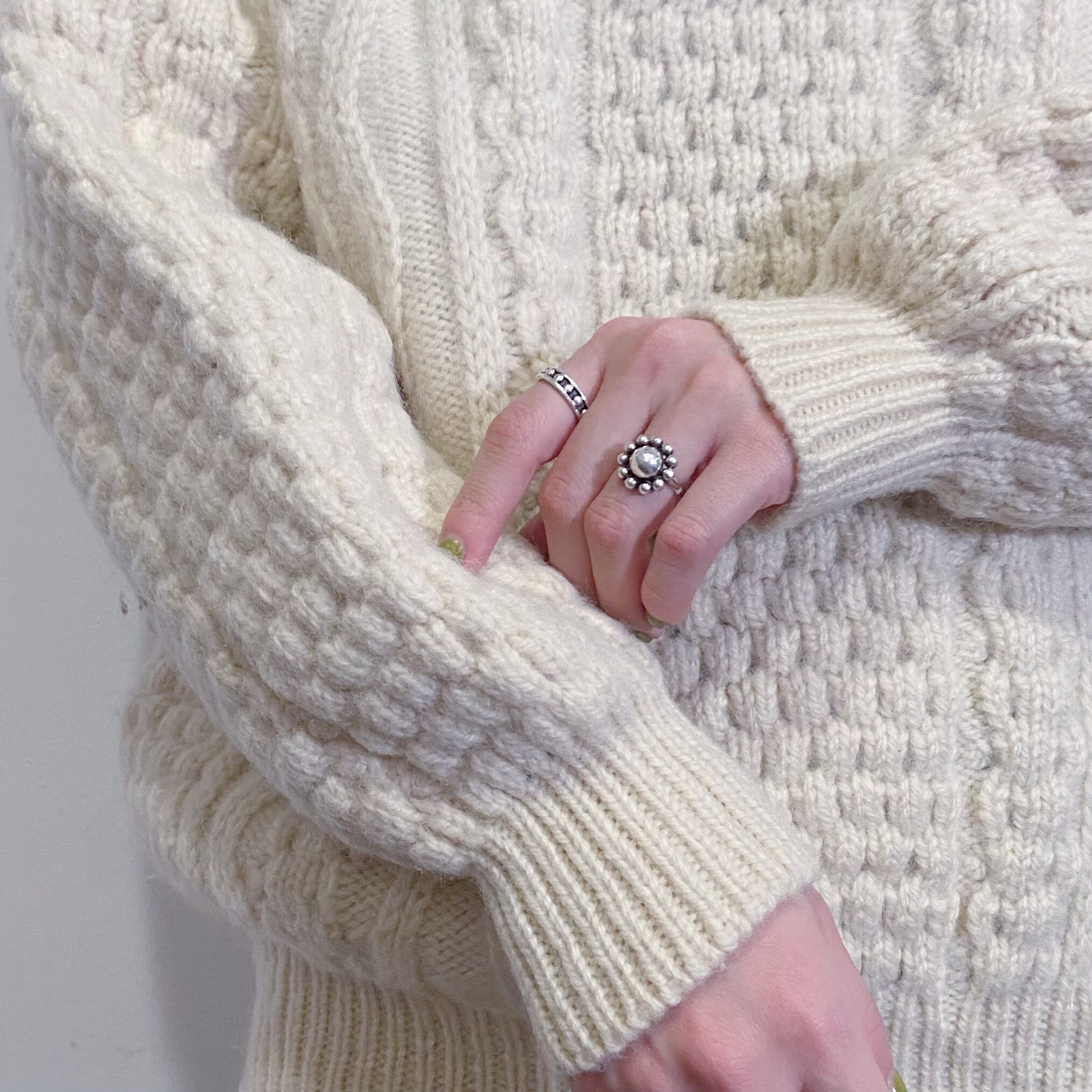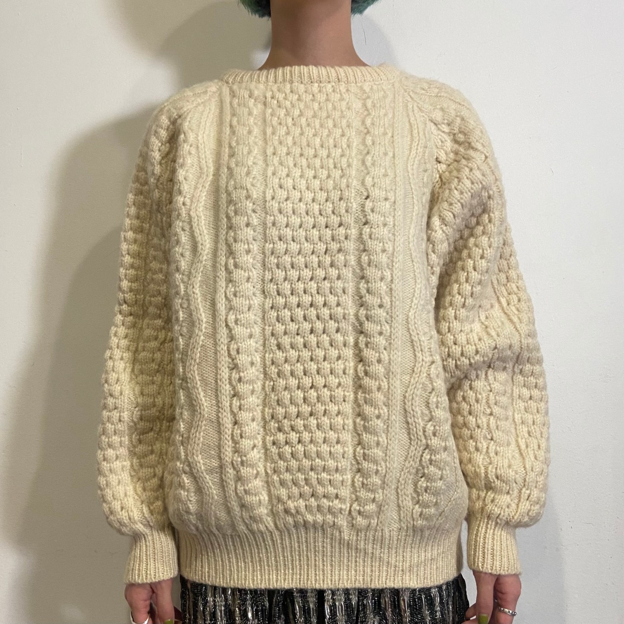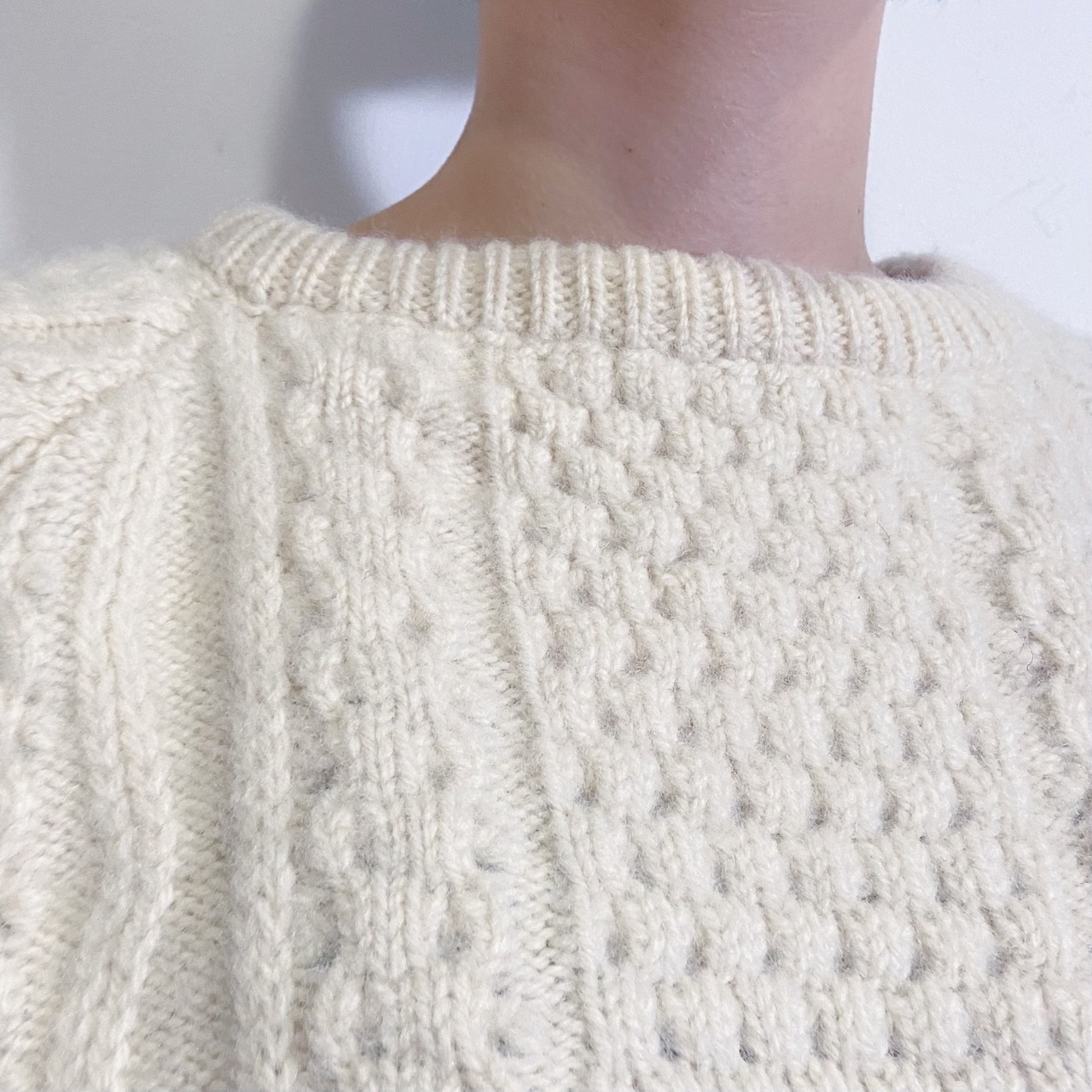 ゆったりサイズが可愛いフィッシャーマンニットです。