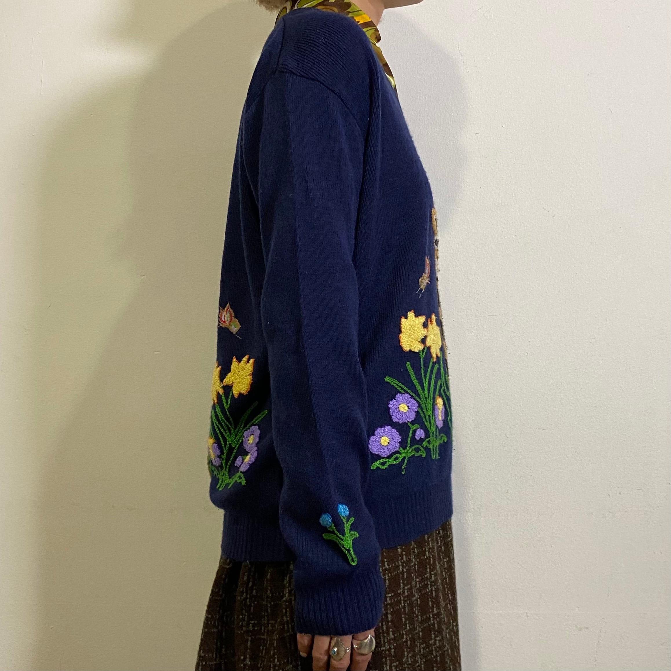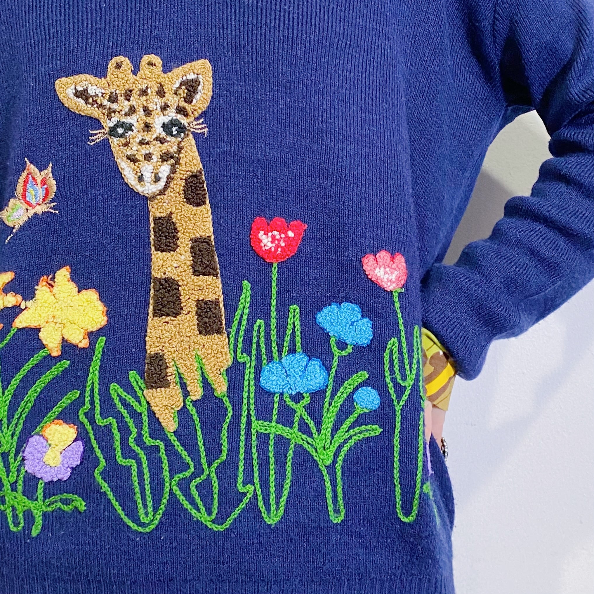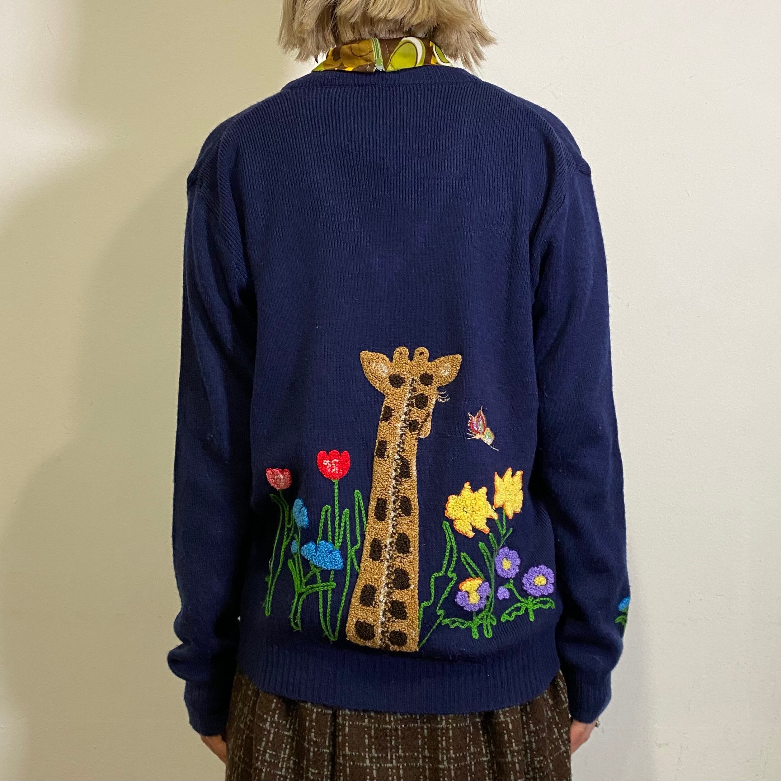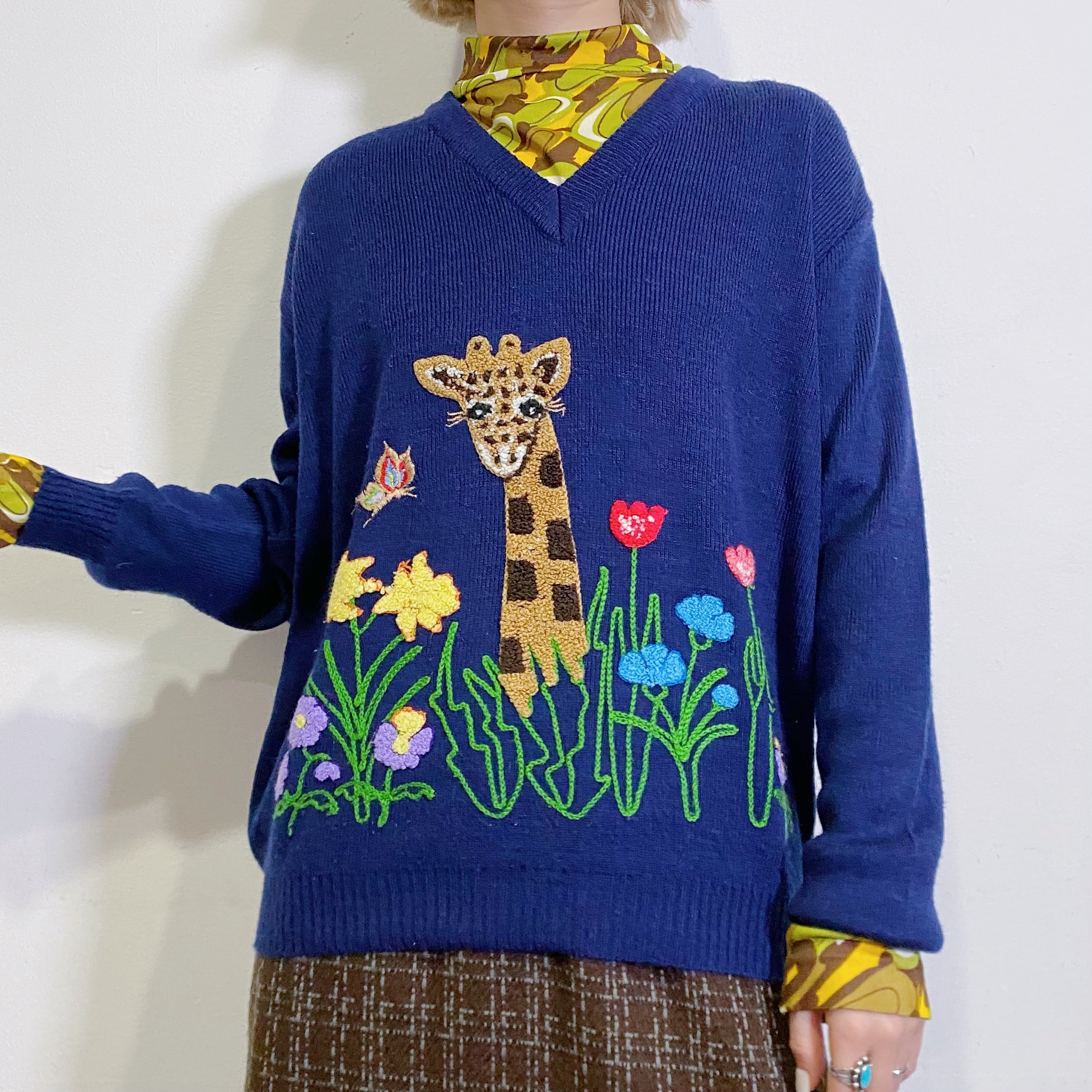 お花畑からキリンが顔を出したデザインが可愛い、70年代のニットセーターです。