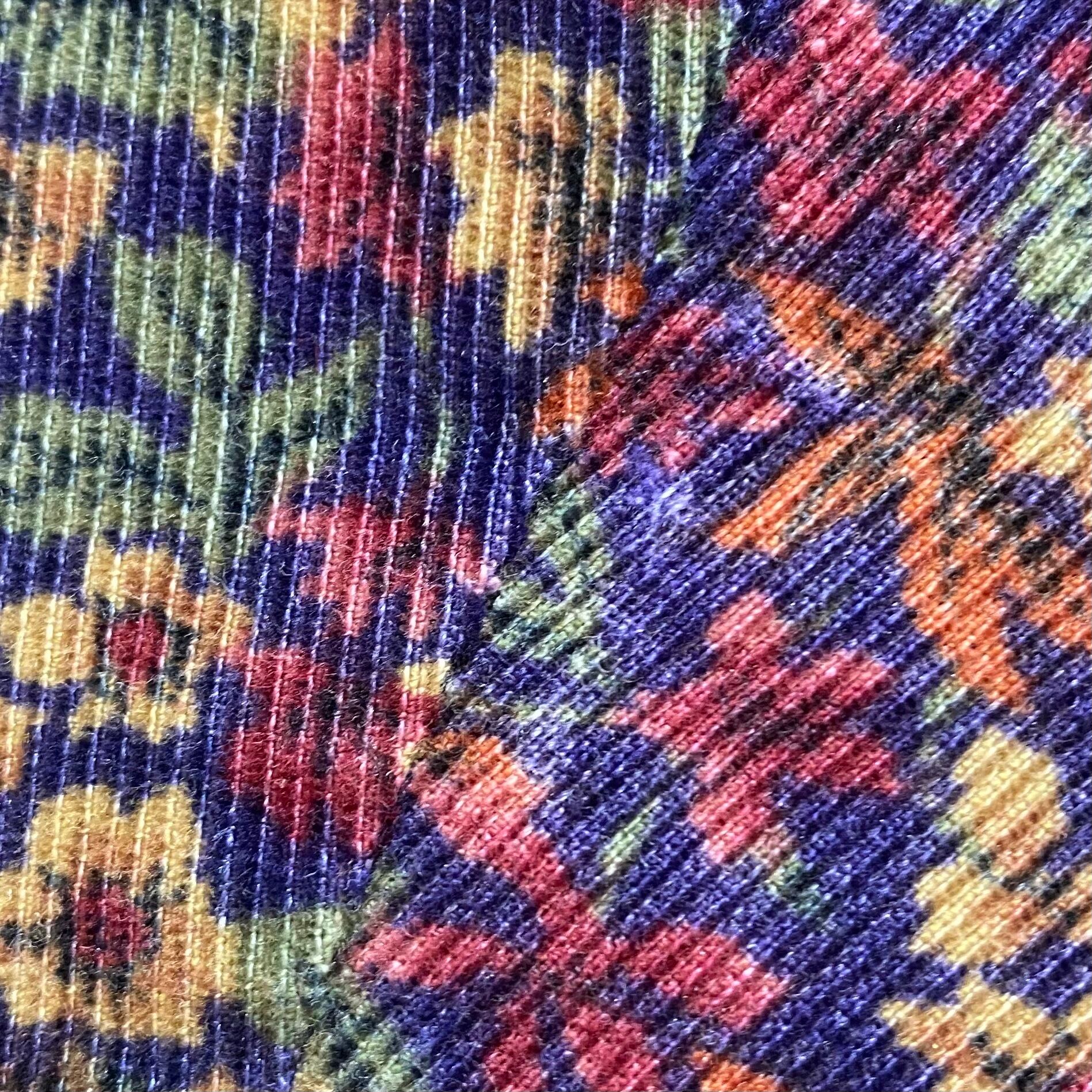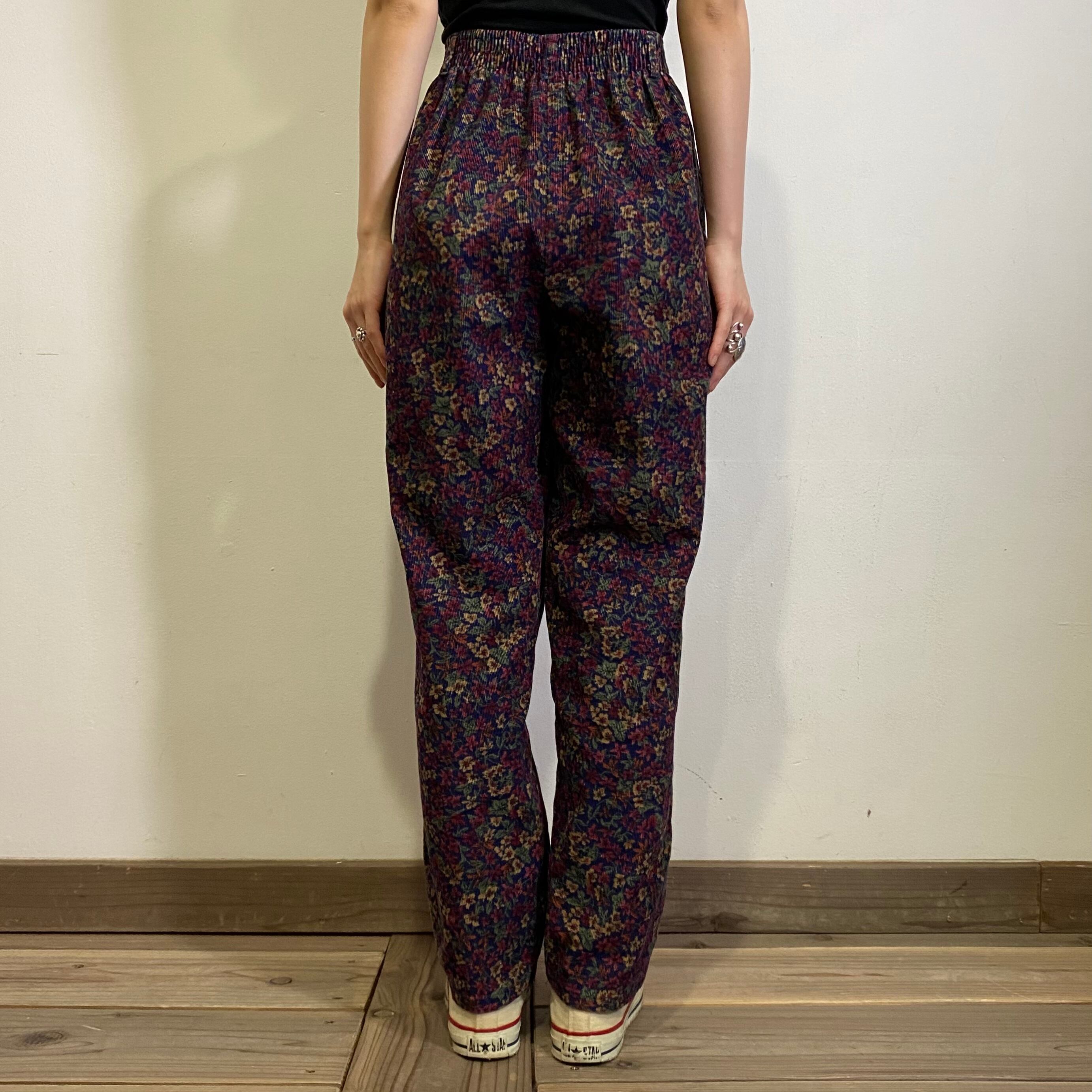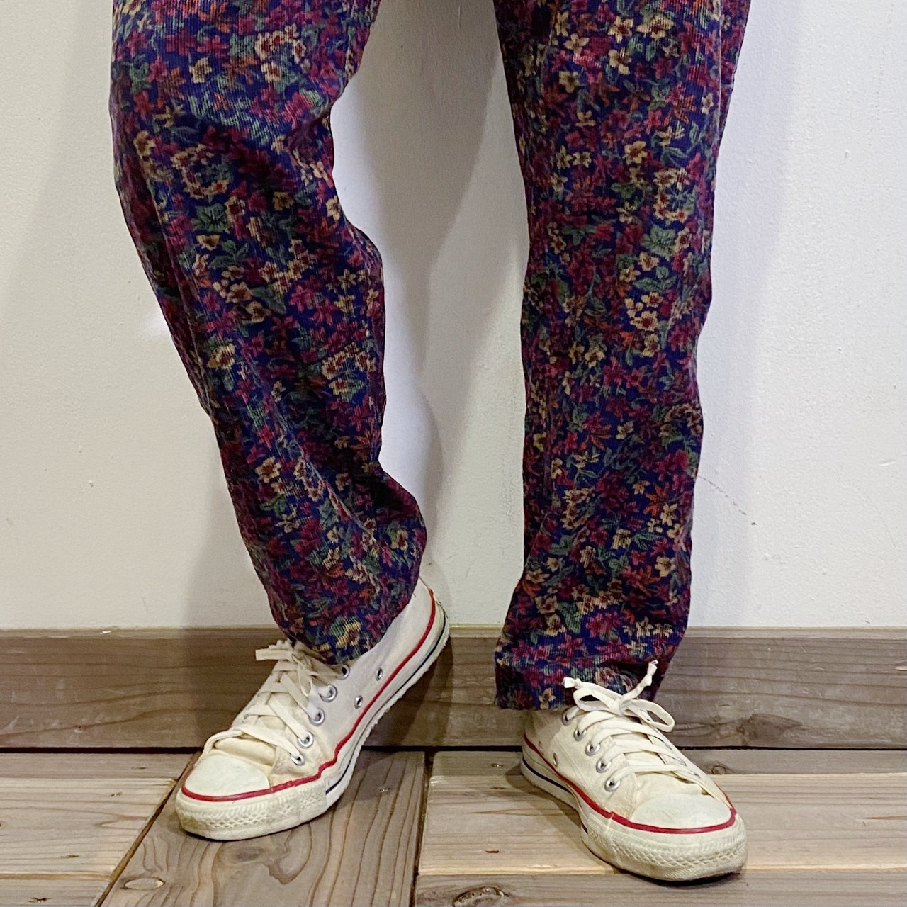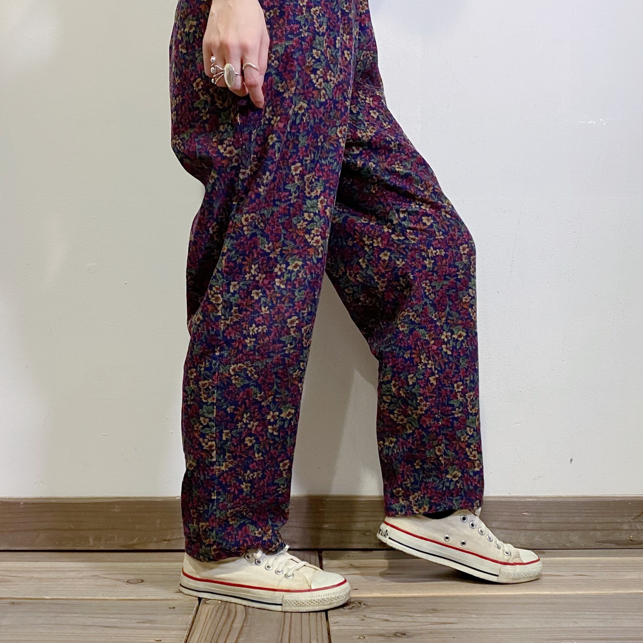 ネイビーベースに小花柄のテキスタイルが可愛い、コーデュロイ素材のイージーパンツです。