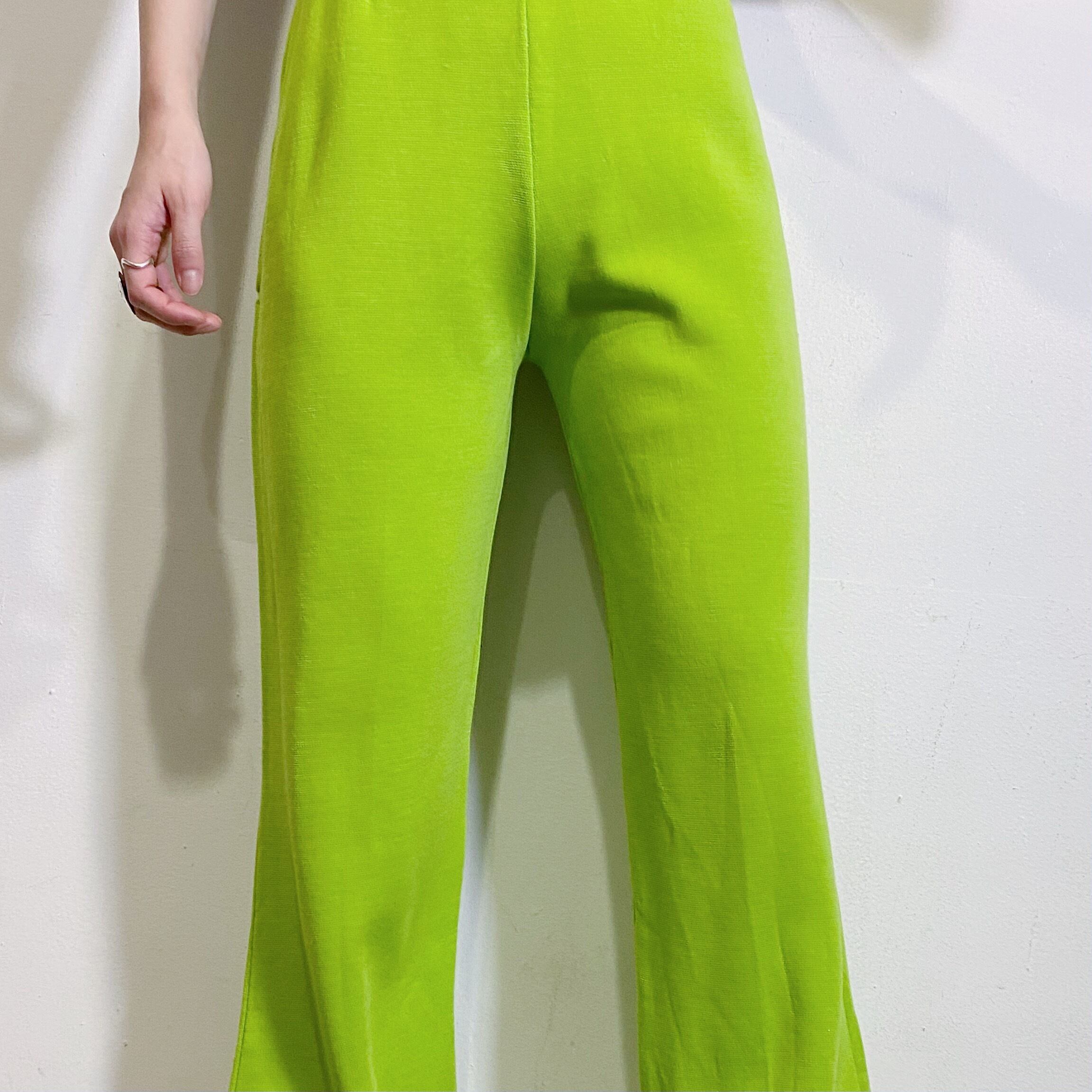 70s lime green long flare pants