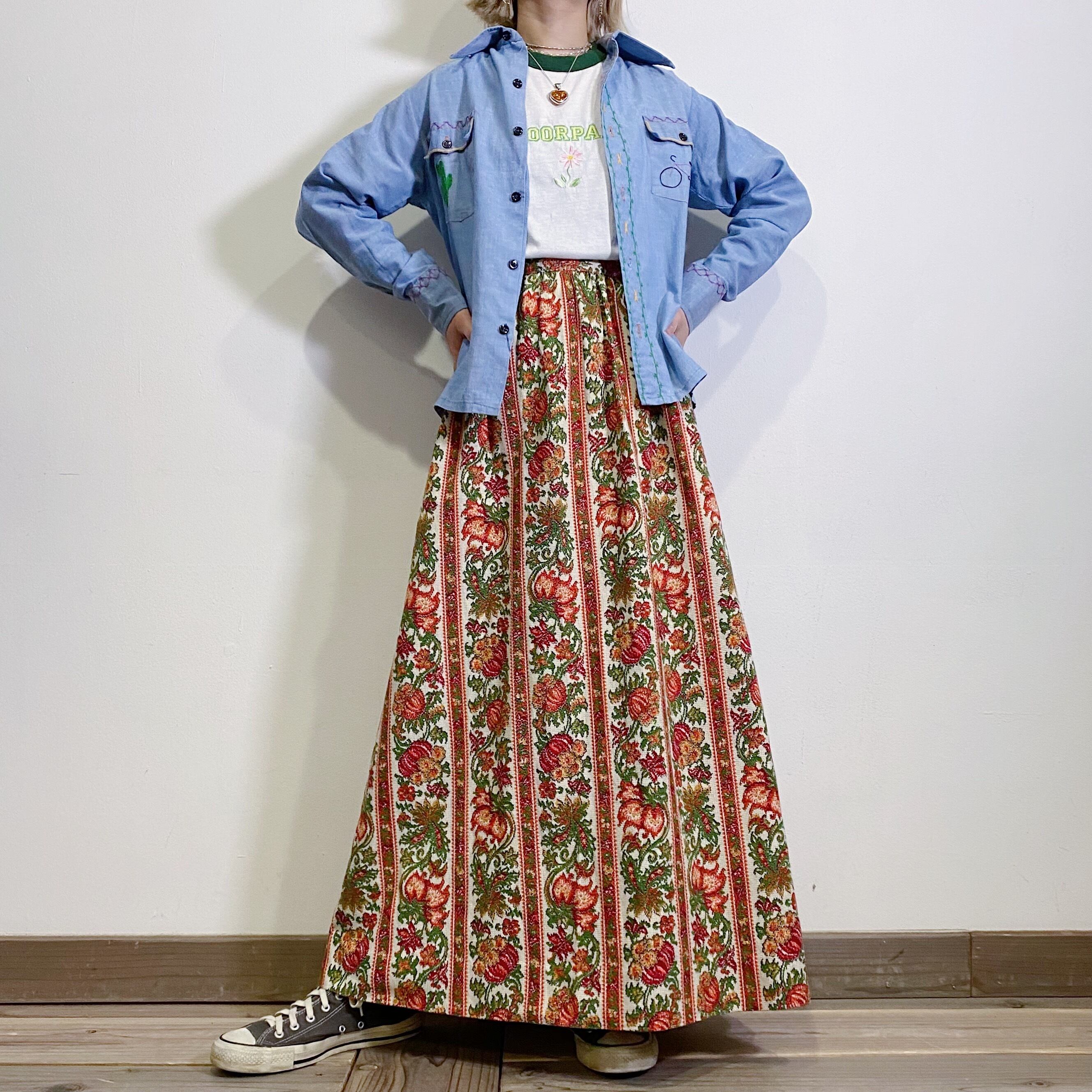 サボテンや自転車、太鼓などが手刺繍された70年代のシャンブレーシャツです。