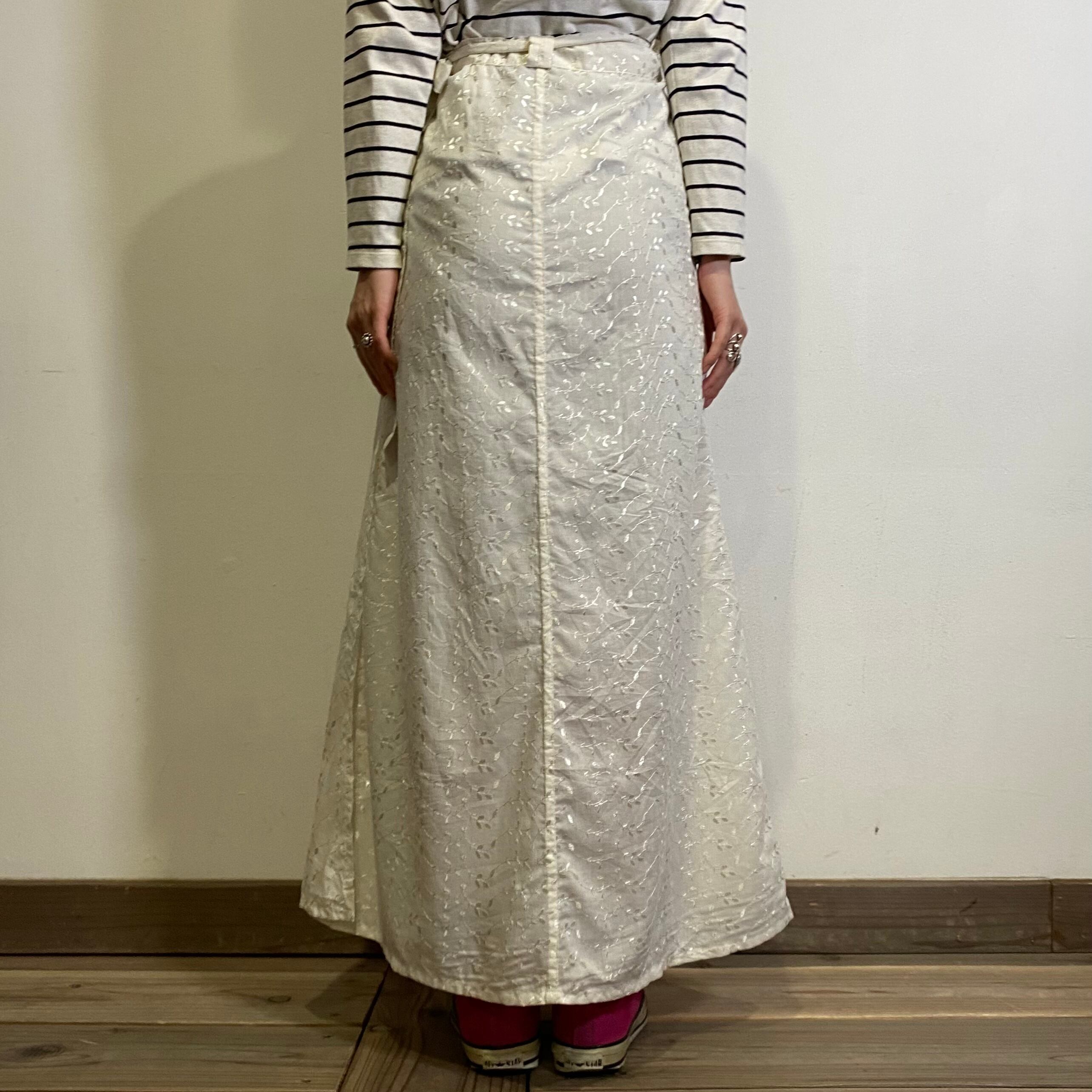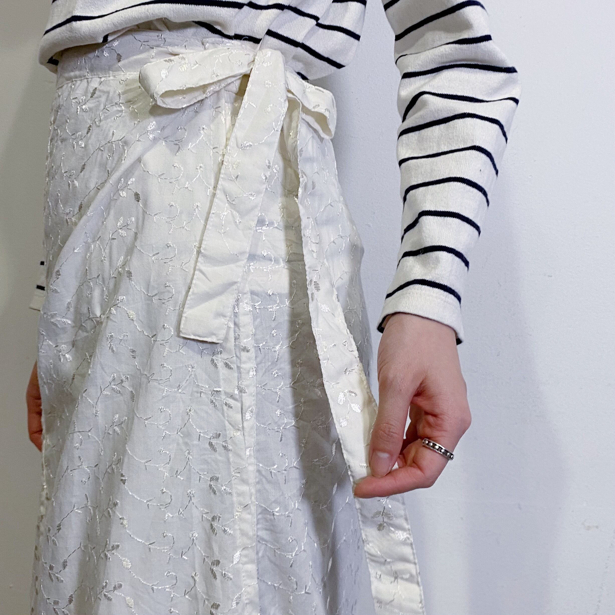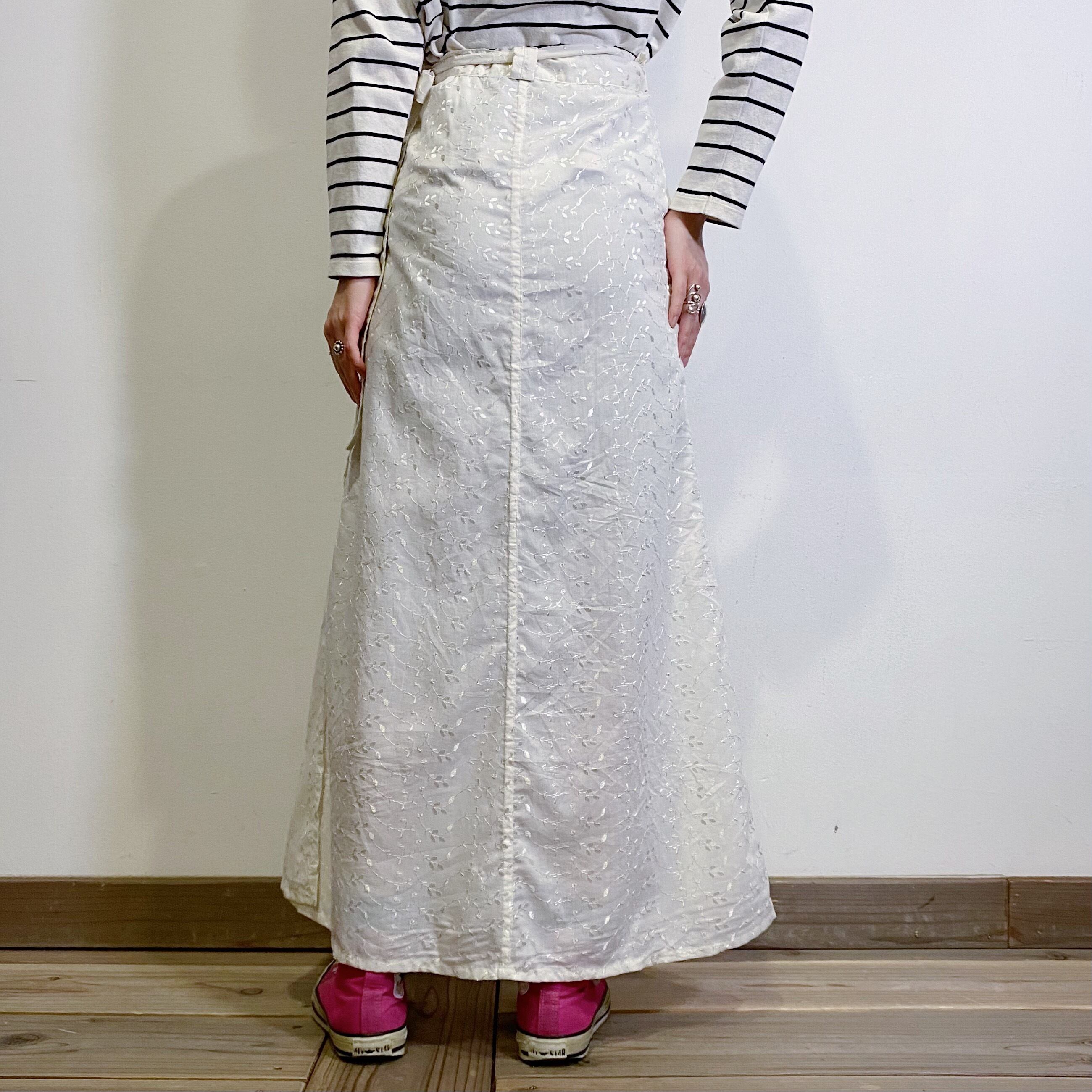 ホワイトカラーに同色のお花の刺繍が可愛いコットンロングスカートです。