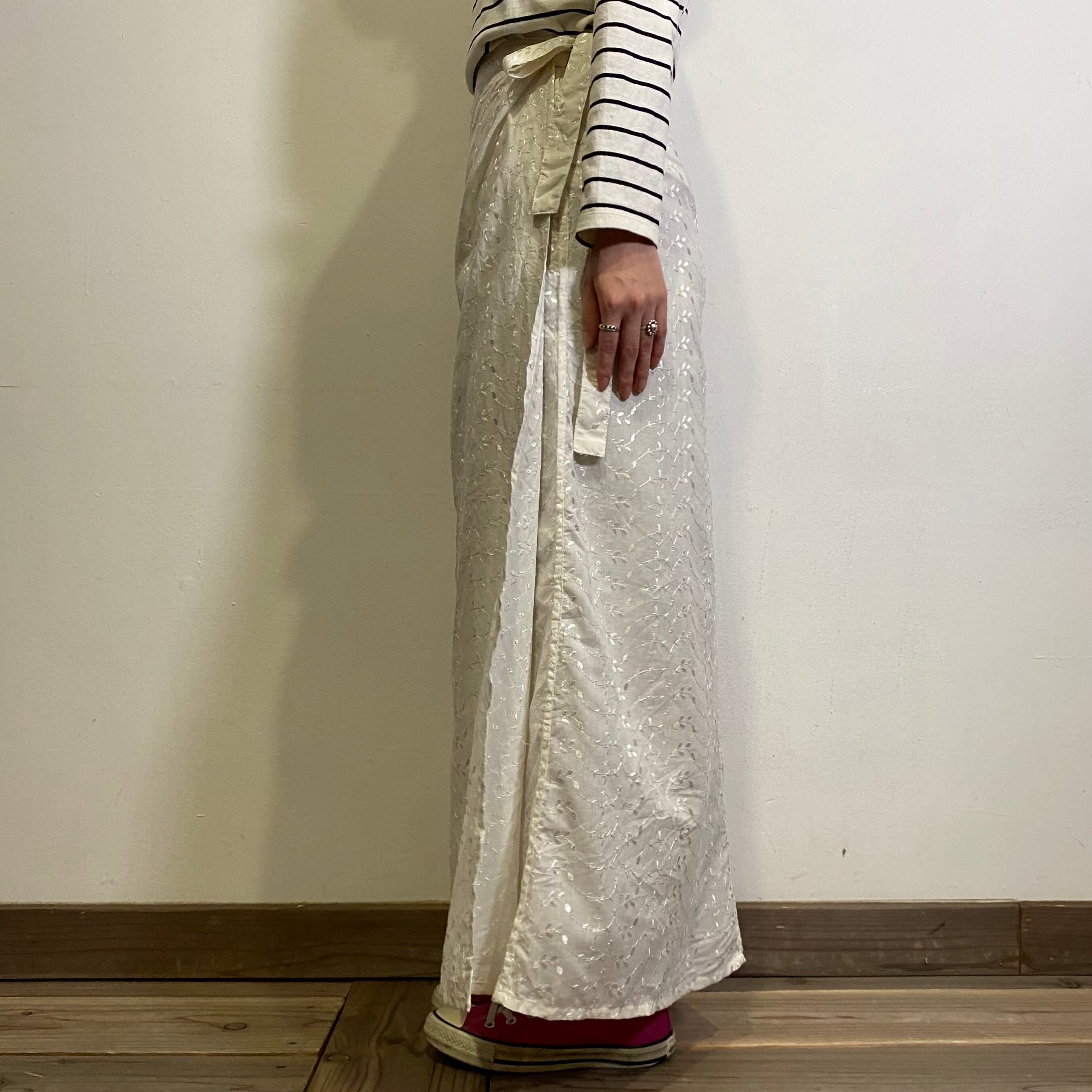 white flower embroidery wrap long skirt