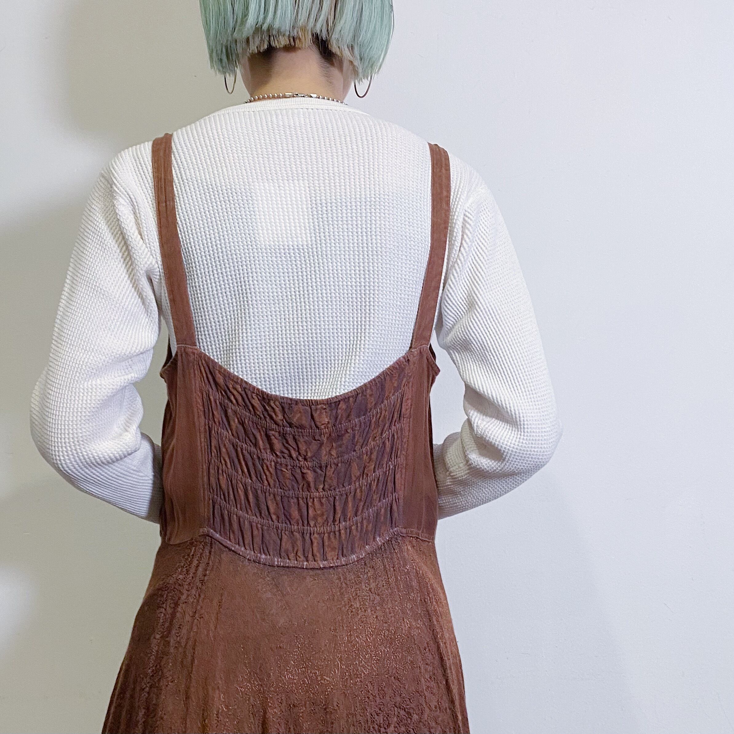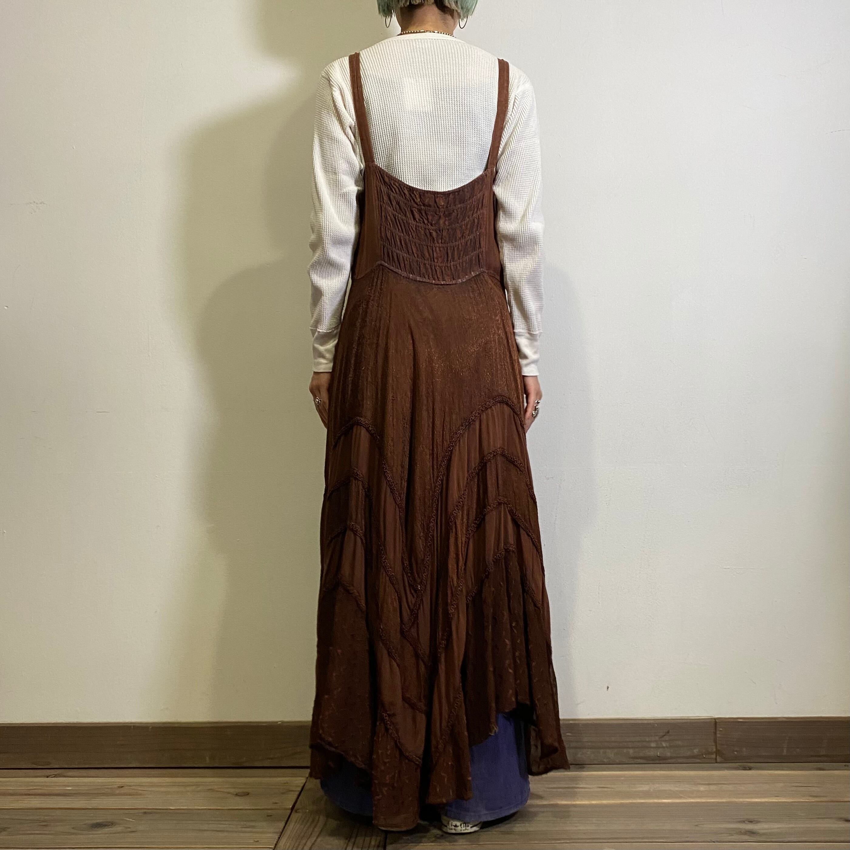 こっくりブラウンが大人可愛い、インドレーヨンのキャミワンピースです。