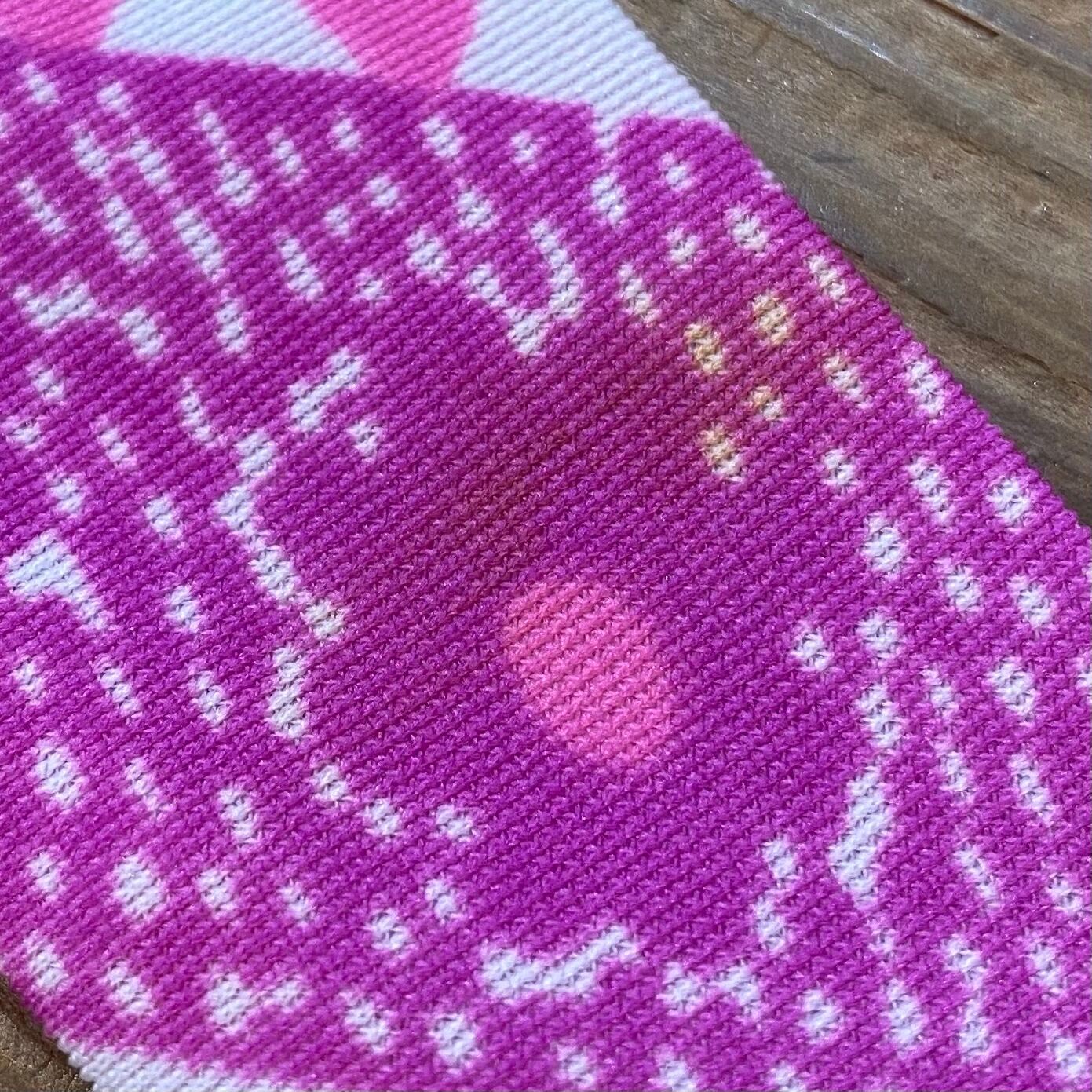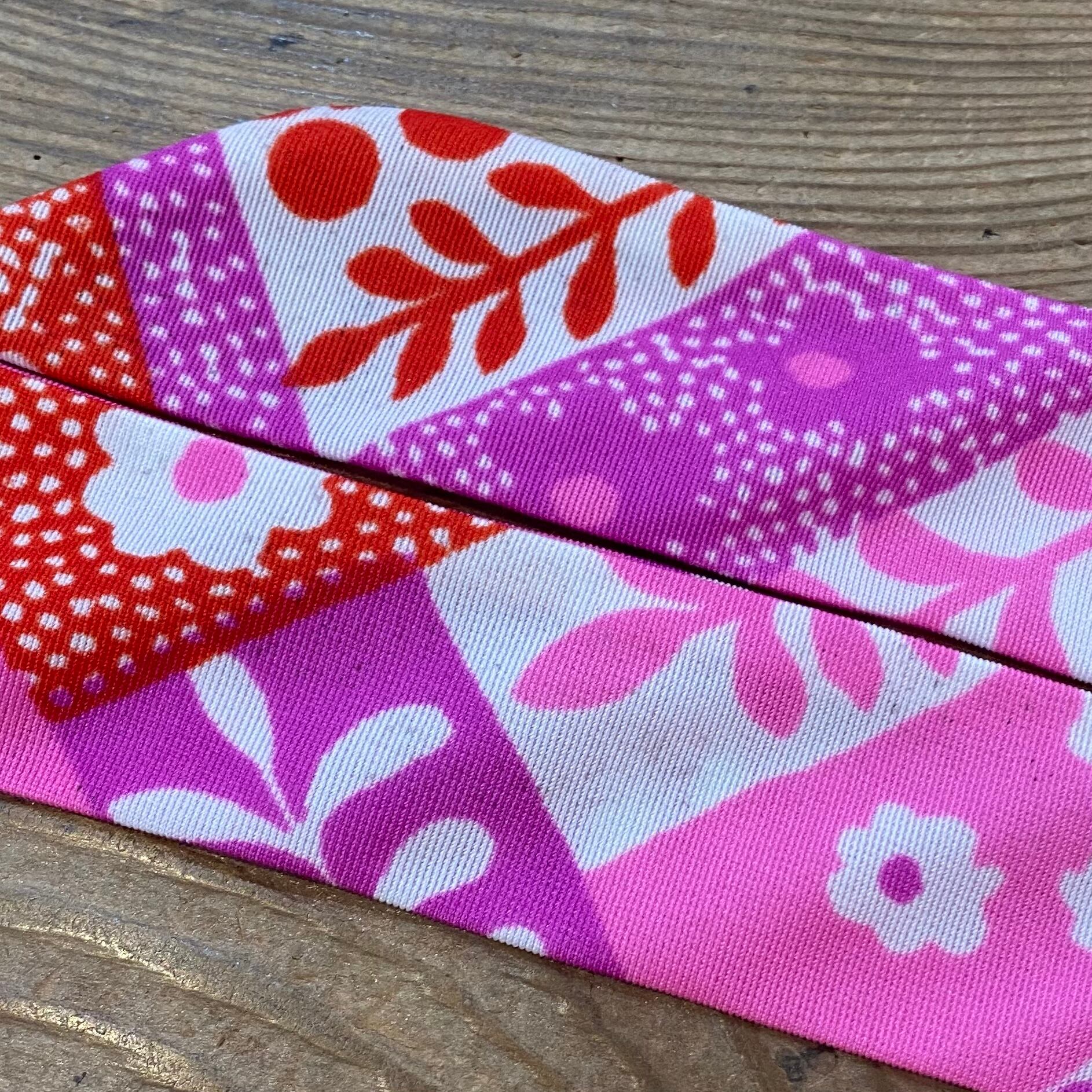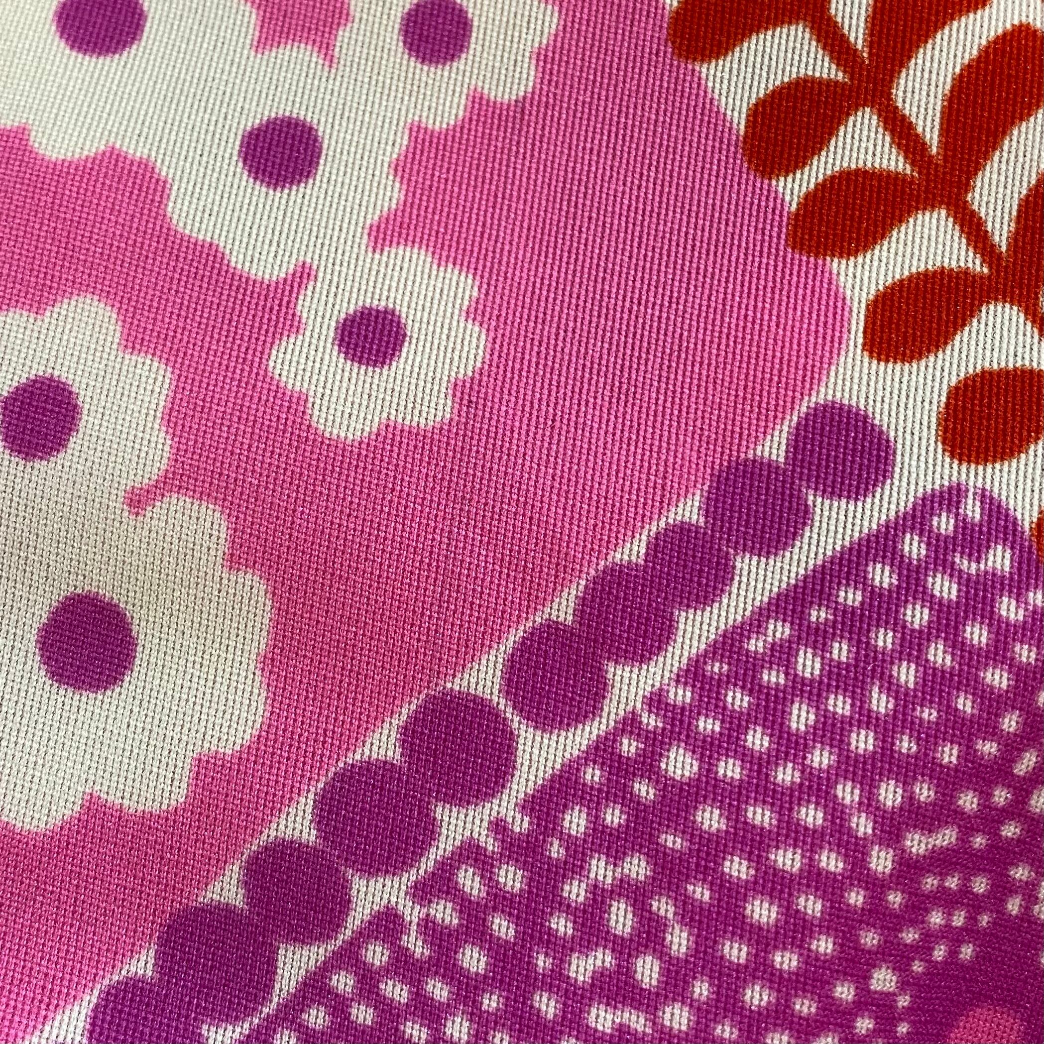 レッドやピンクの色合いもハッピーで、程よいフレアシルエットも魅力的な一枚。