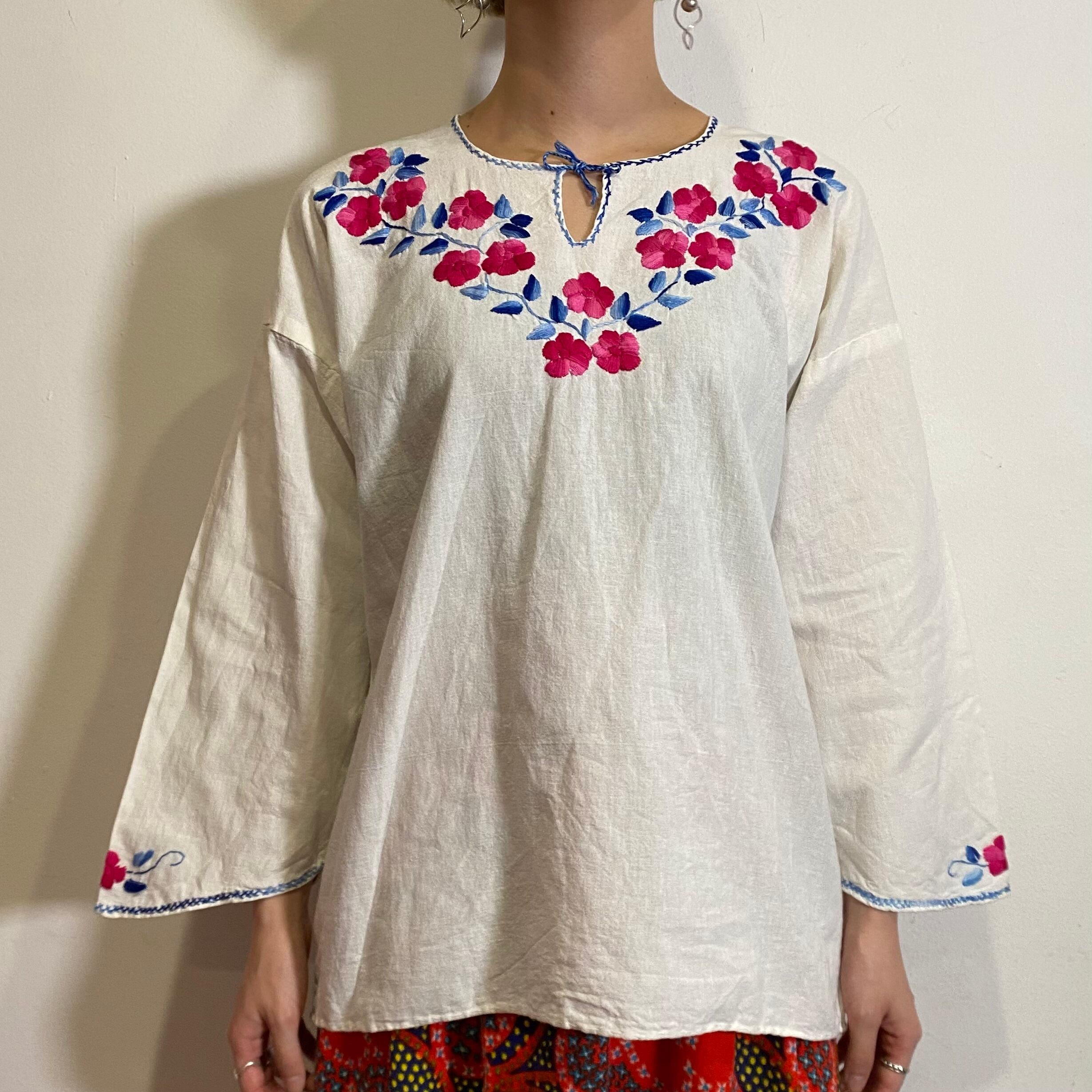 お花の刺繍が雰囲気たっぷりな70年代のチュニックトップスです。
