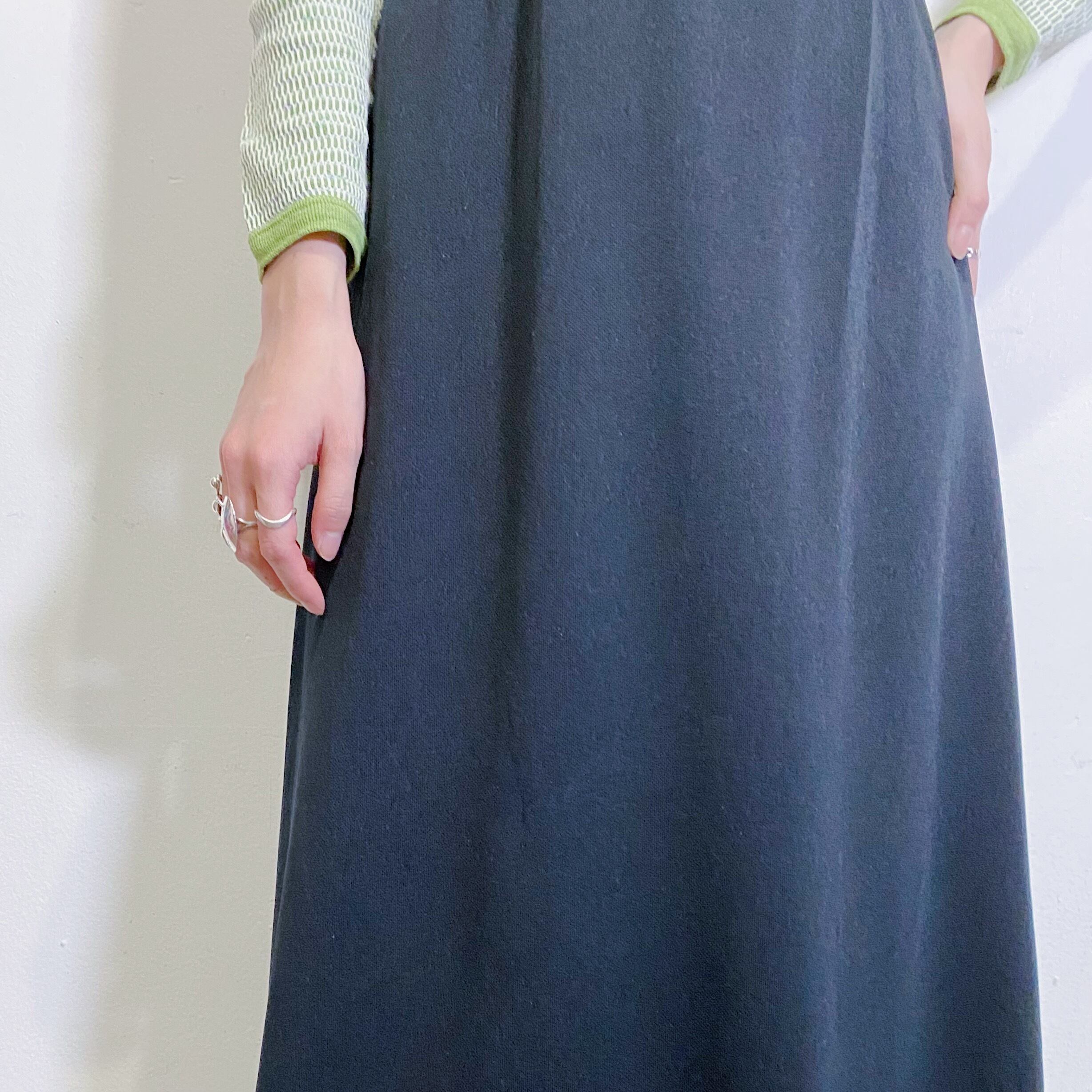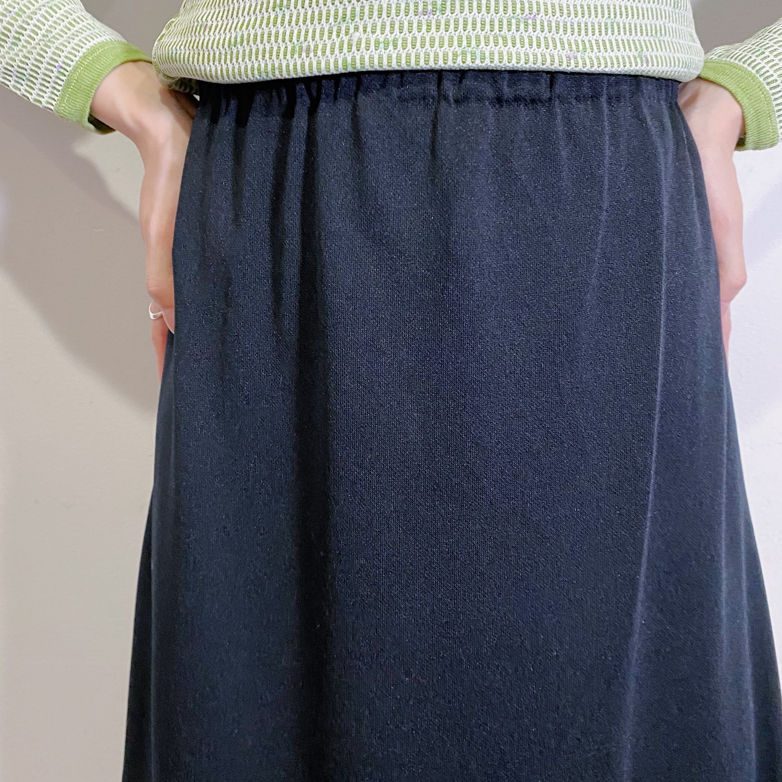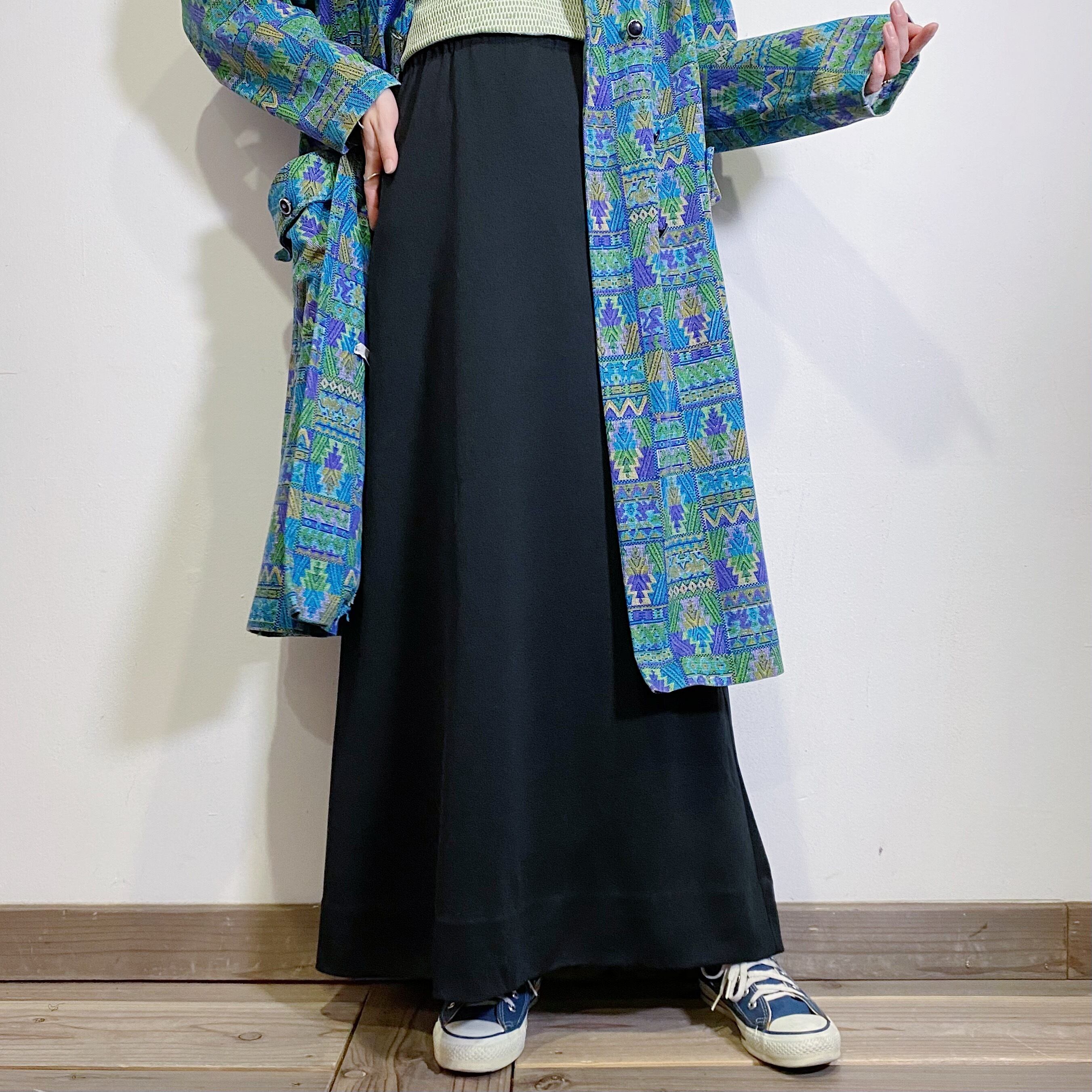 ブラックカラーで使い勝手のいい、70年代のシンプルなロングスカートです。