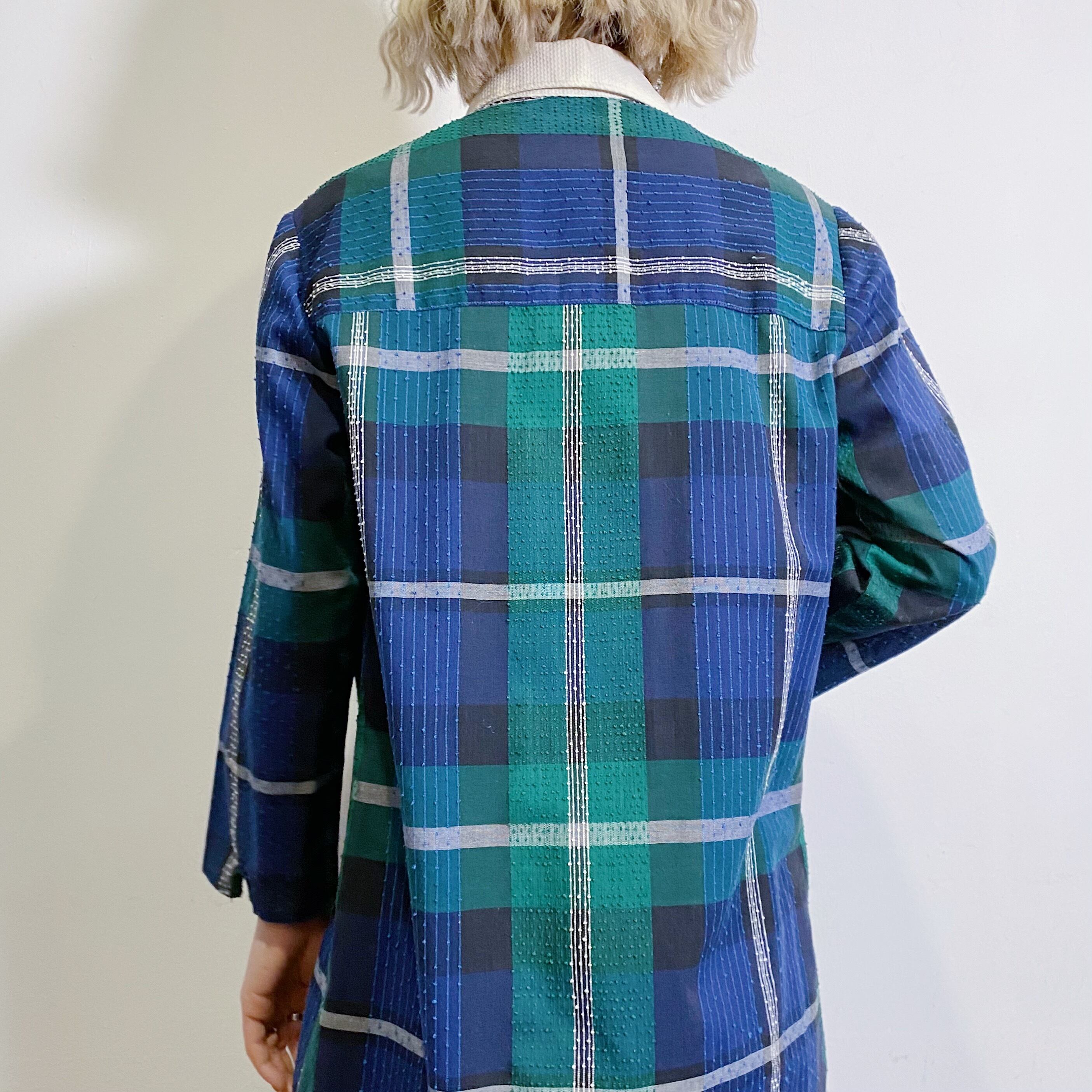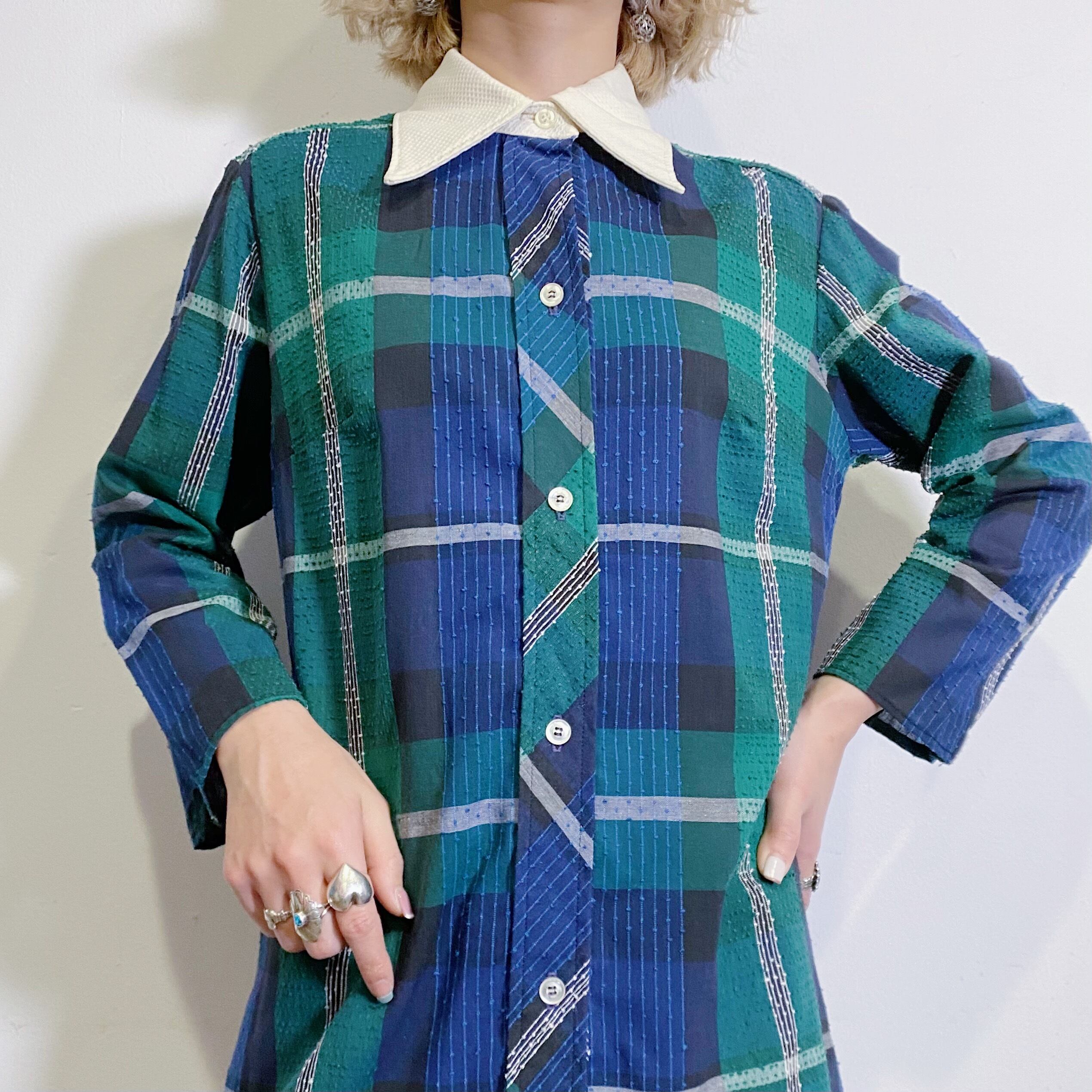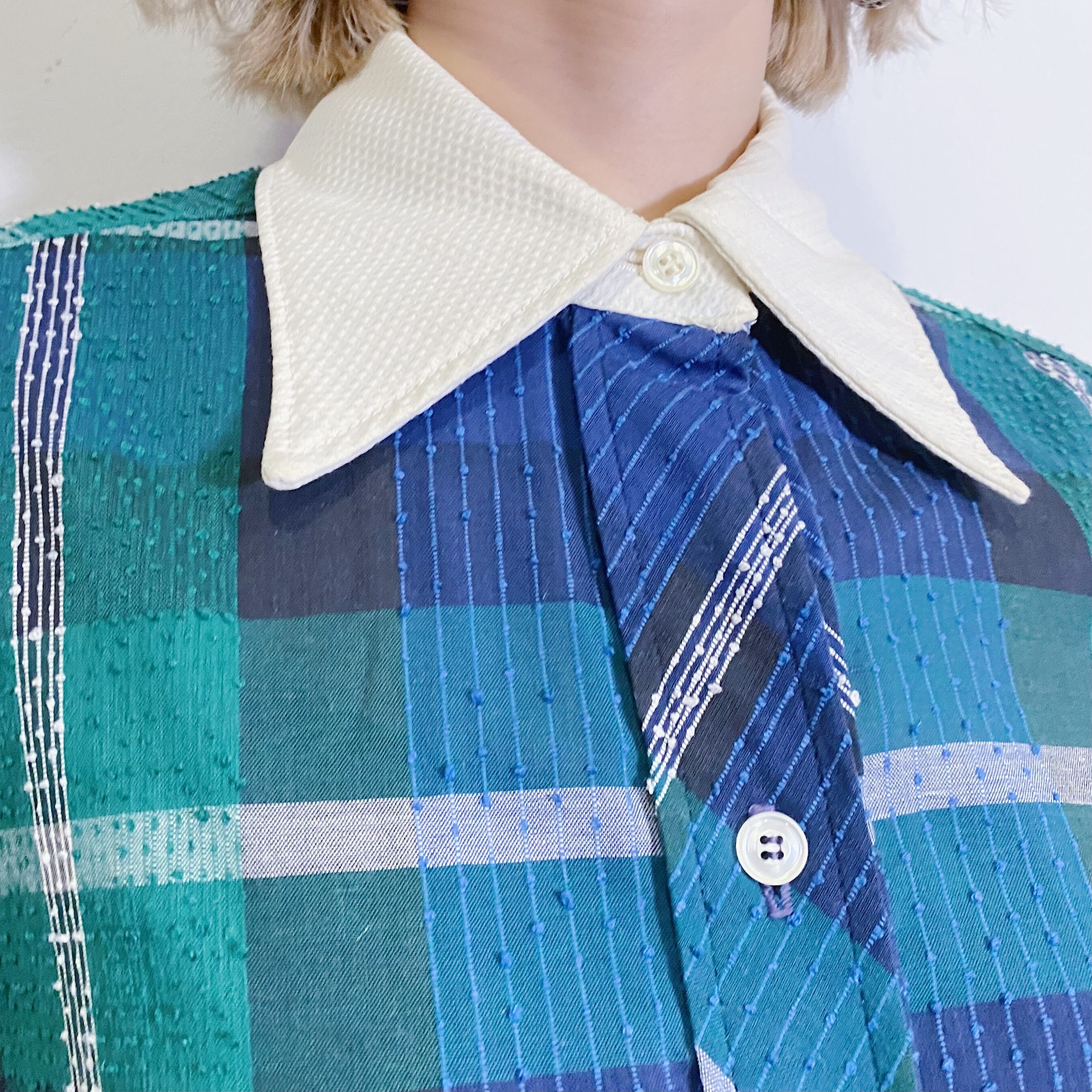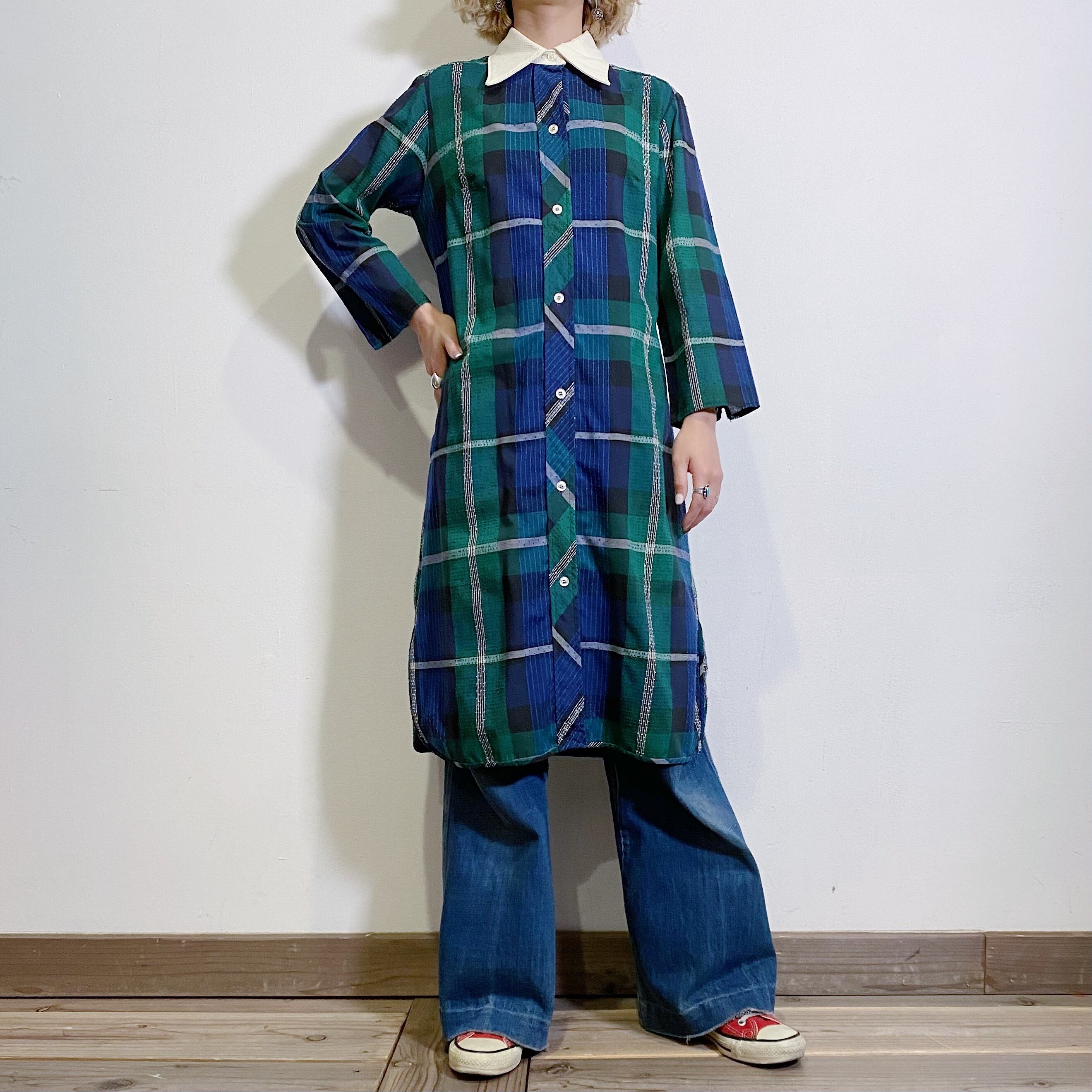 グリーンとネイビーのチェックの色合いが可愛い、60年代のシャツワンピースです。