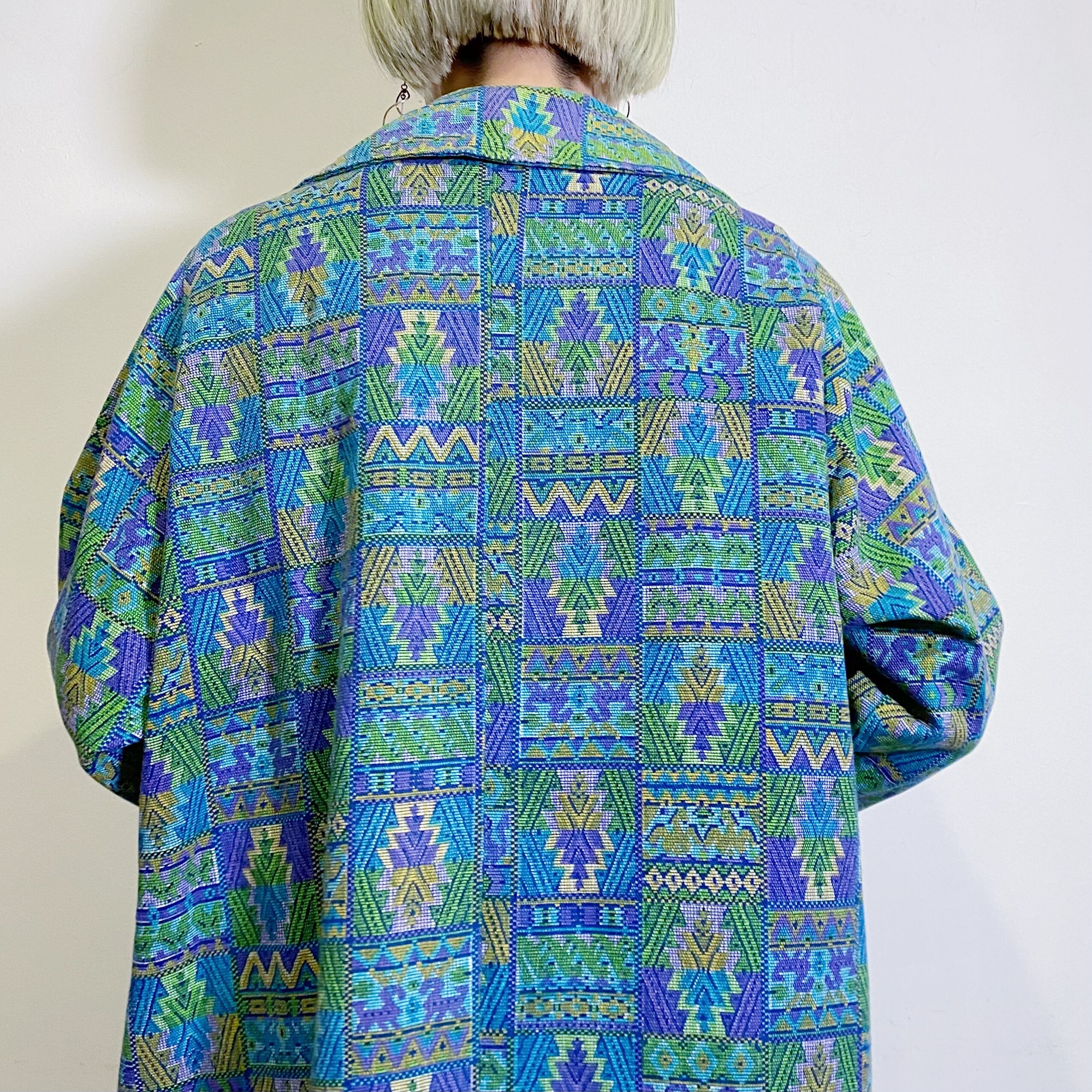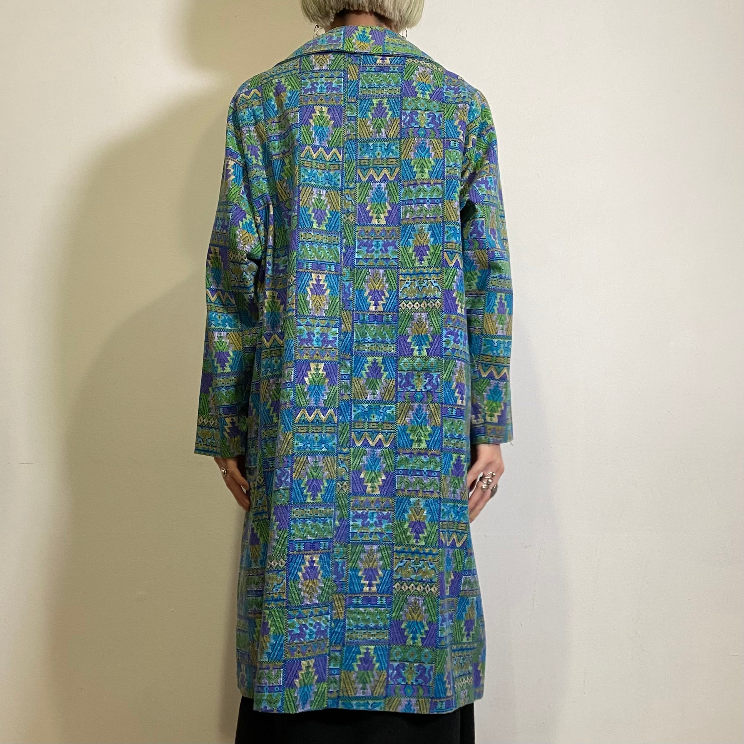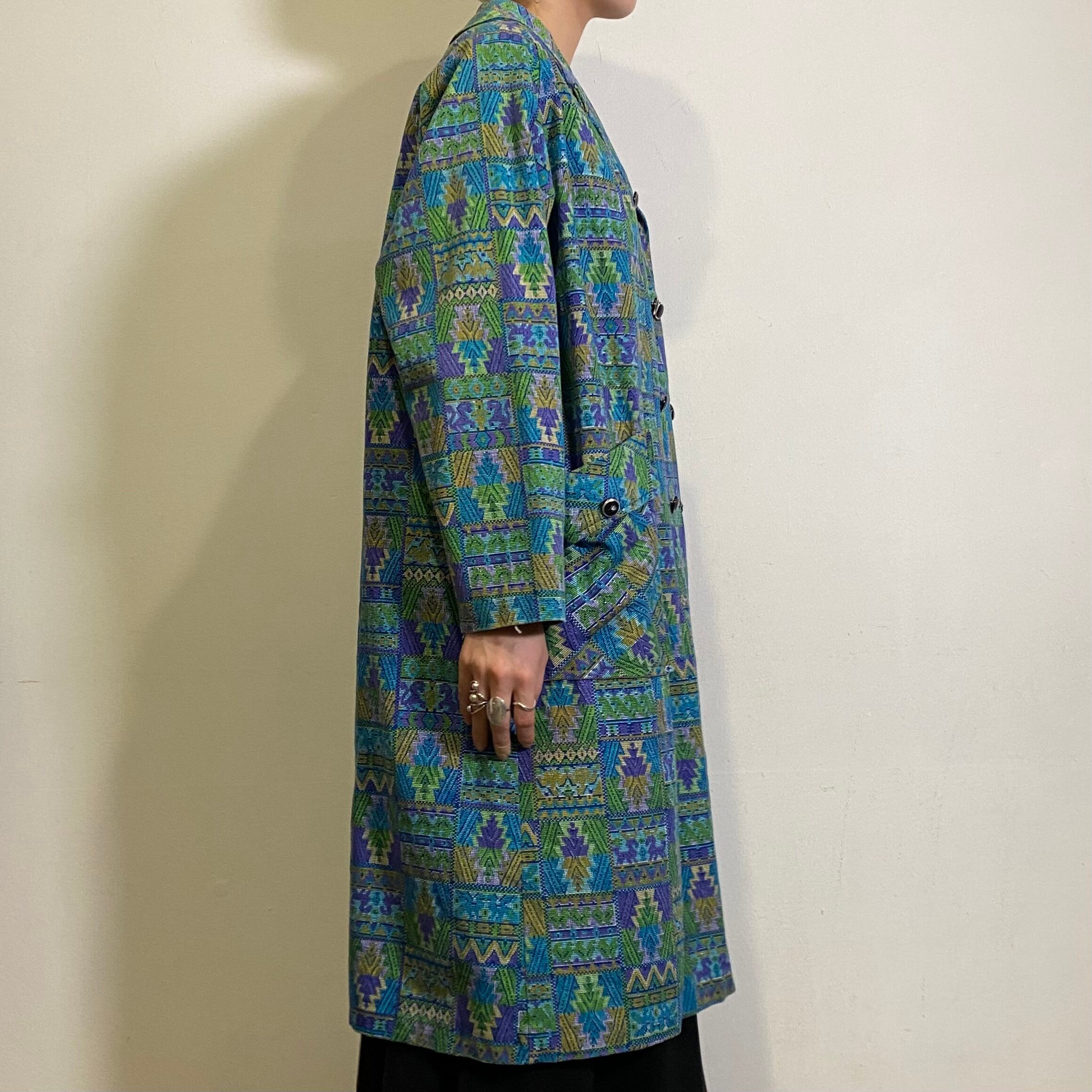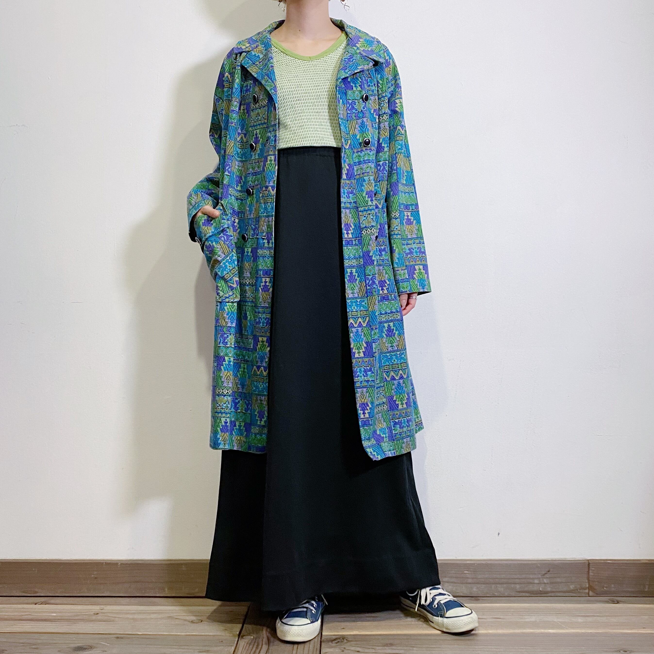 グリーンやブルー・パープルの不思議な柄が雰囲気たっぷりの、60~70年代のスプリングコートです。