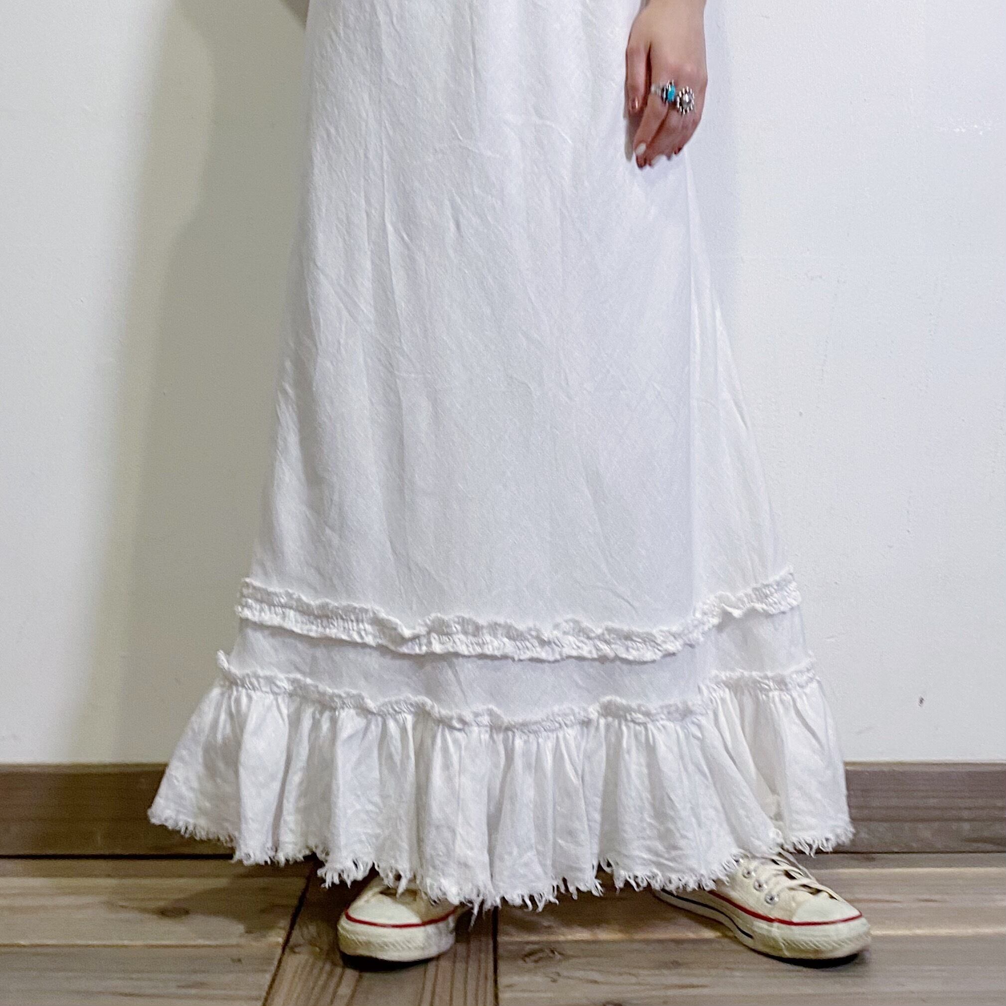 真っ白なリネン素材が素敵な、90年代のロングスカートです。