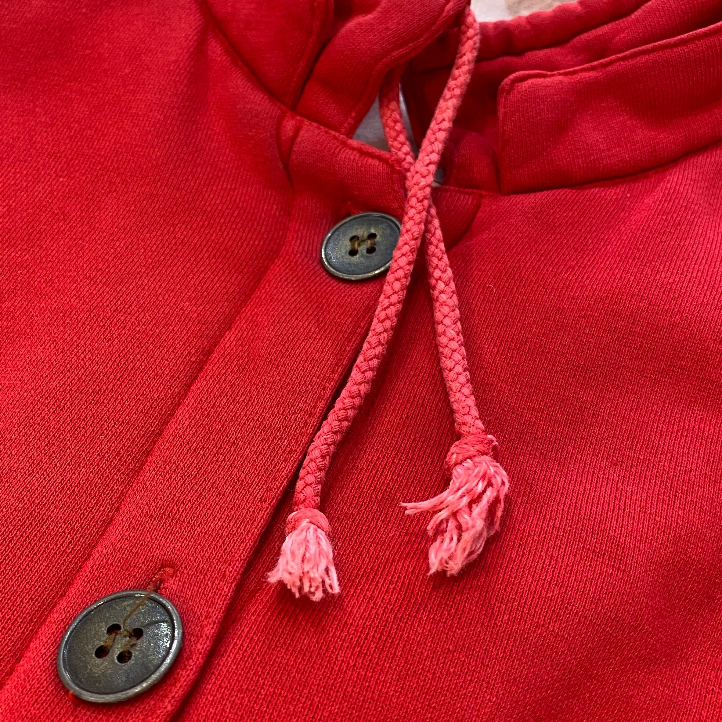 鮮やかなレッドカラーにスウェット素材がかわいい、90年代のジャンパーです。