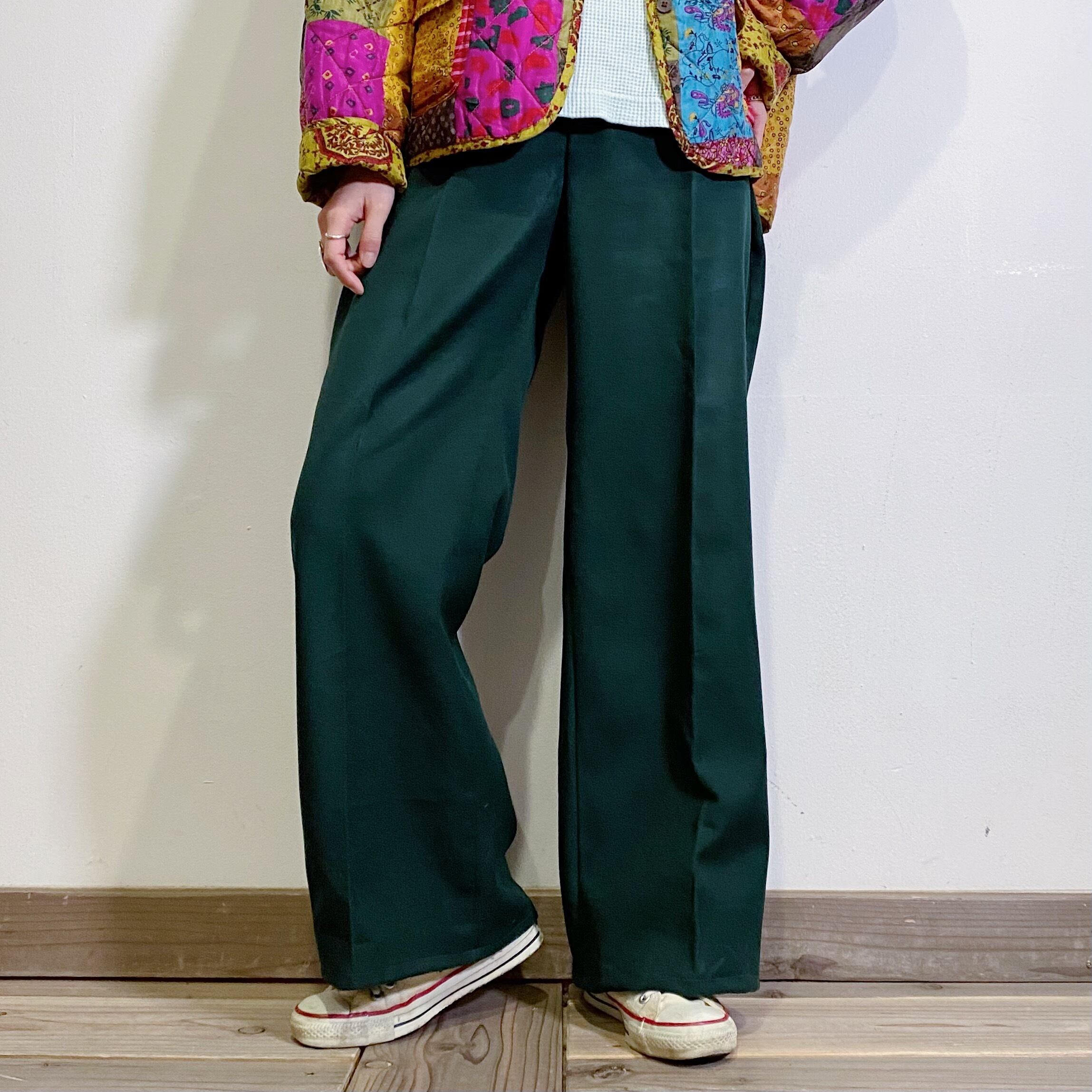 深めのグリーンカラーがかわいい、リーバイスの70年代のフレアパンツです。