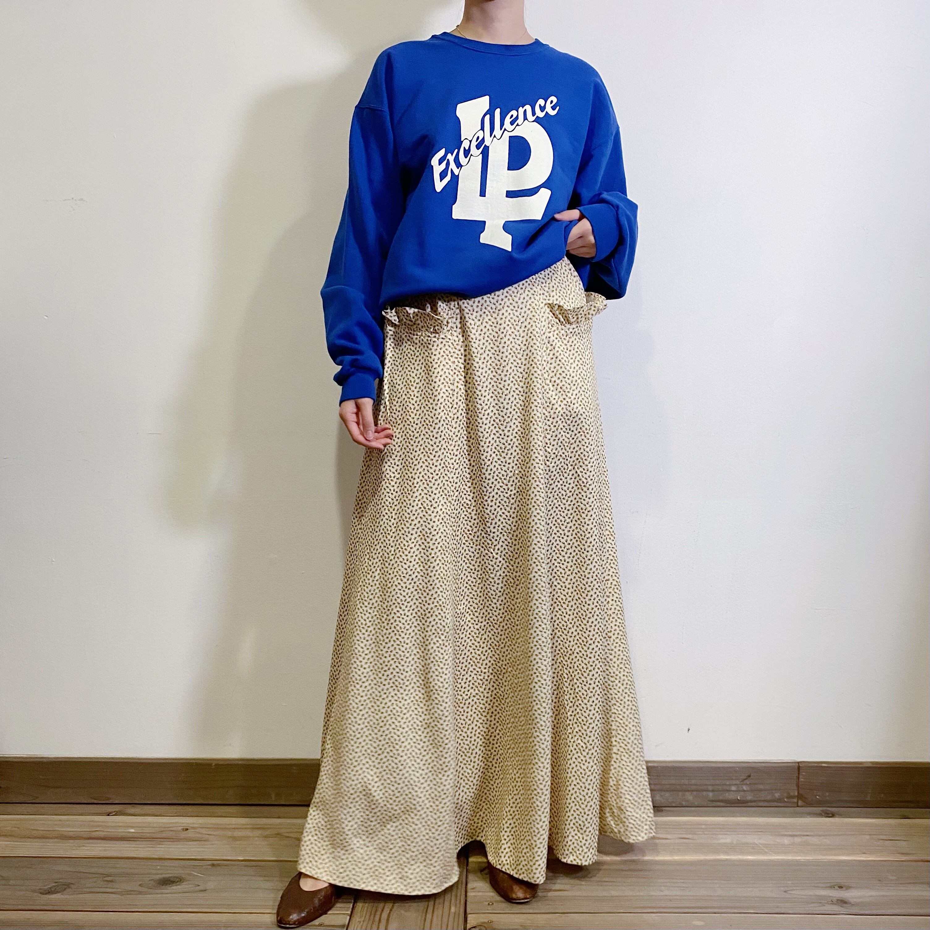 鮮やかなブルーに白のプリントが映える、90年代のスウェットです。
