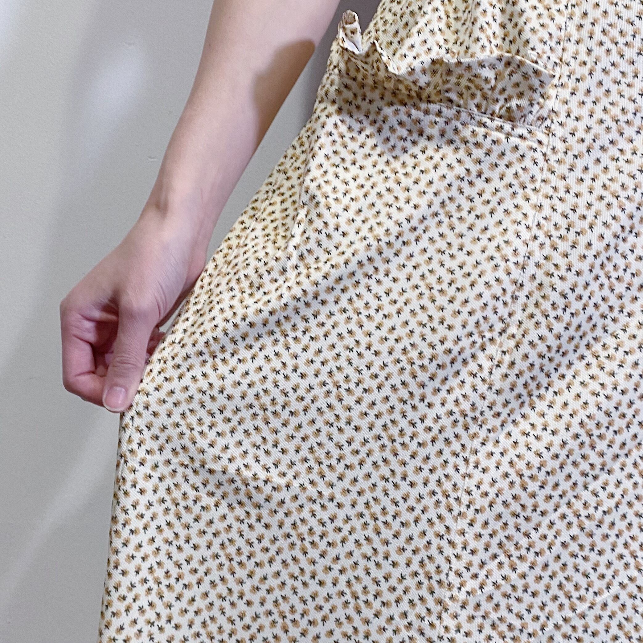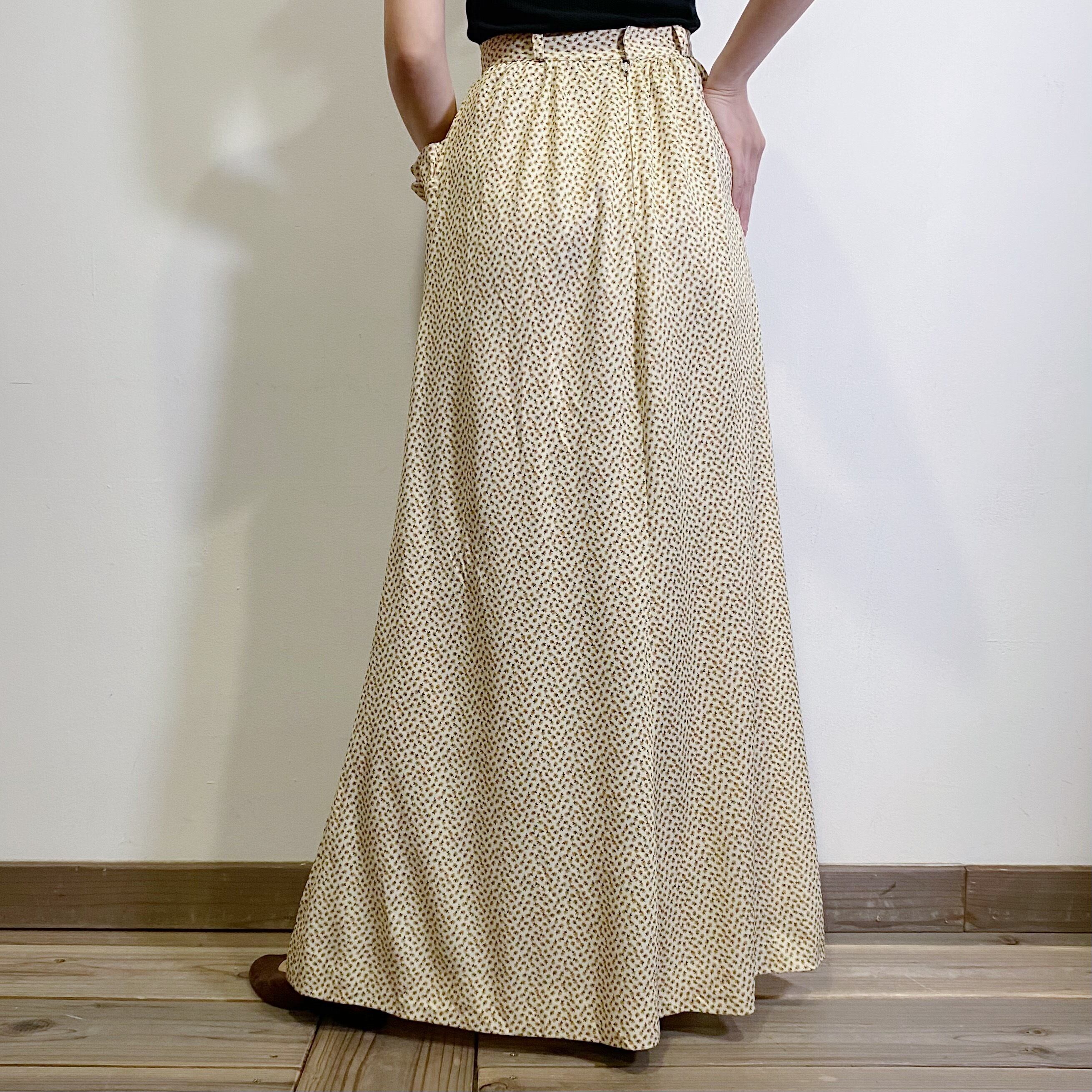 クリーム色ベースに小花柄が可愛い、70年代のロングスカートです。