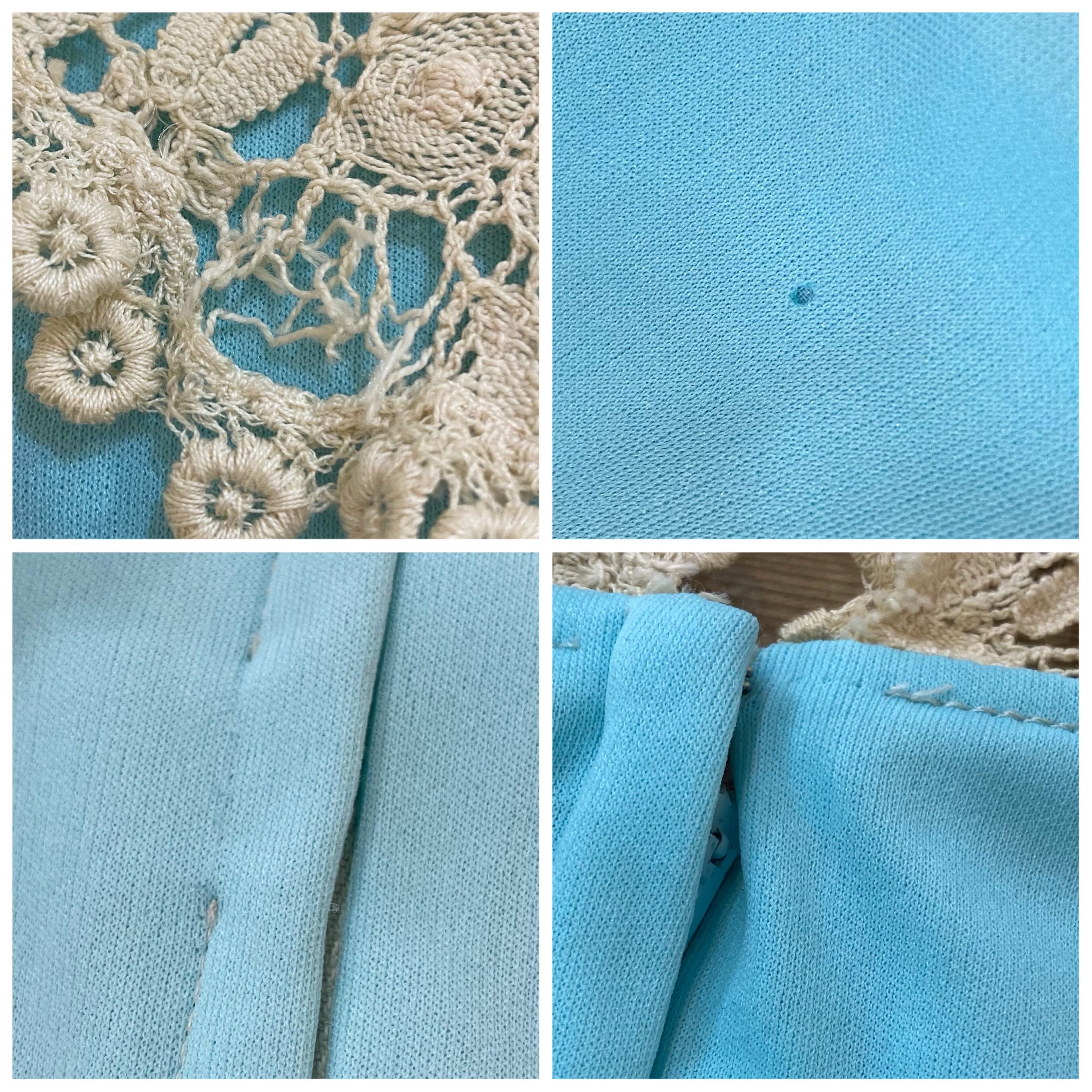 綺麗なサックスブルーにレースの襟が可愛い、70年代のワンピースです。