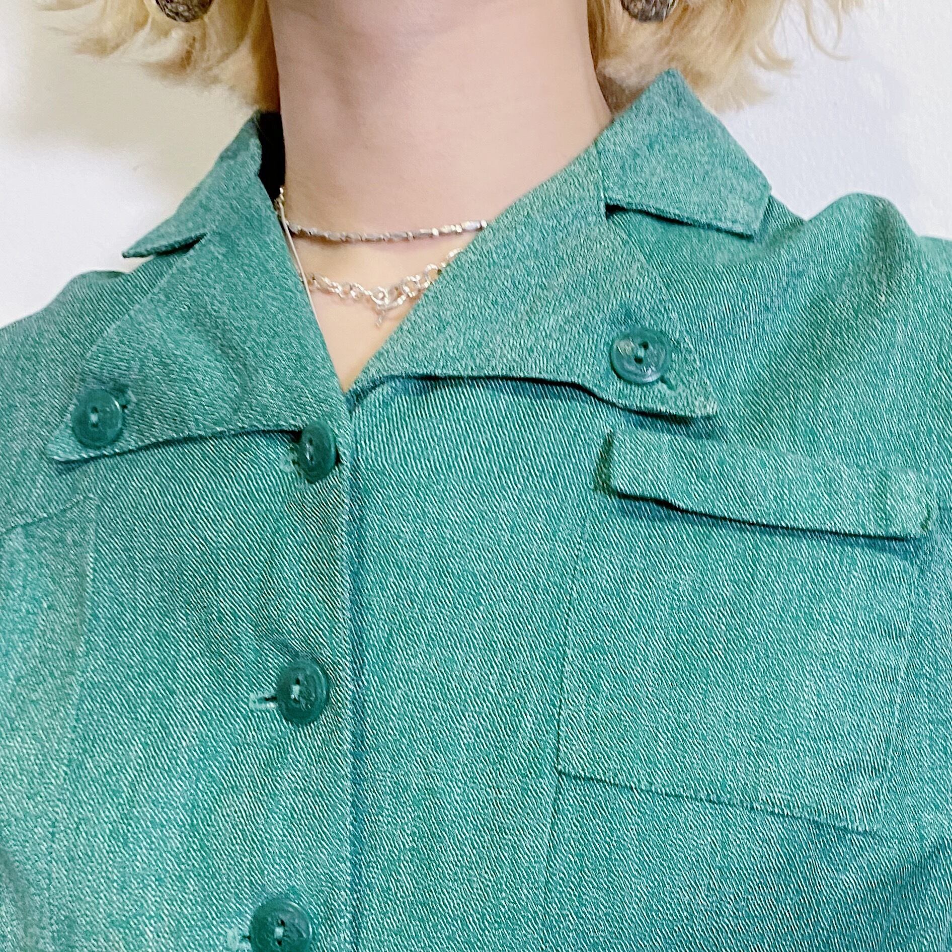 オリーブカラーが可愛い、60年代のガールスカウトワンピースです。