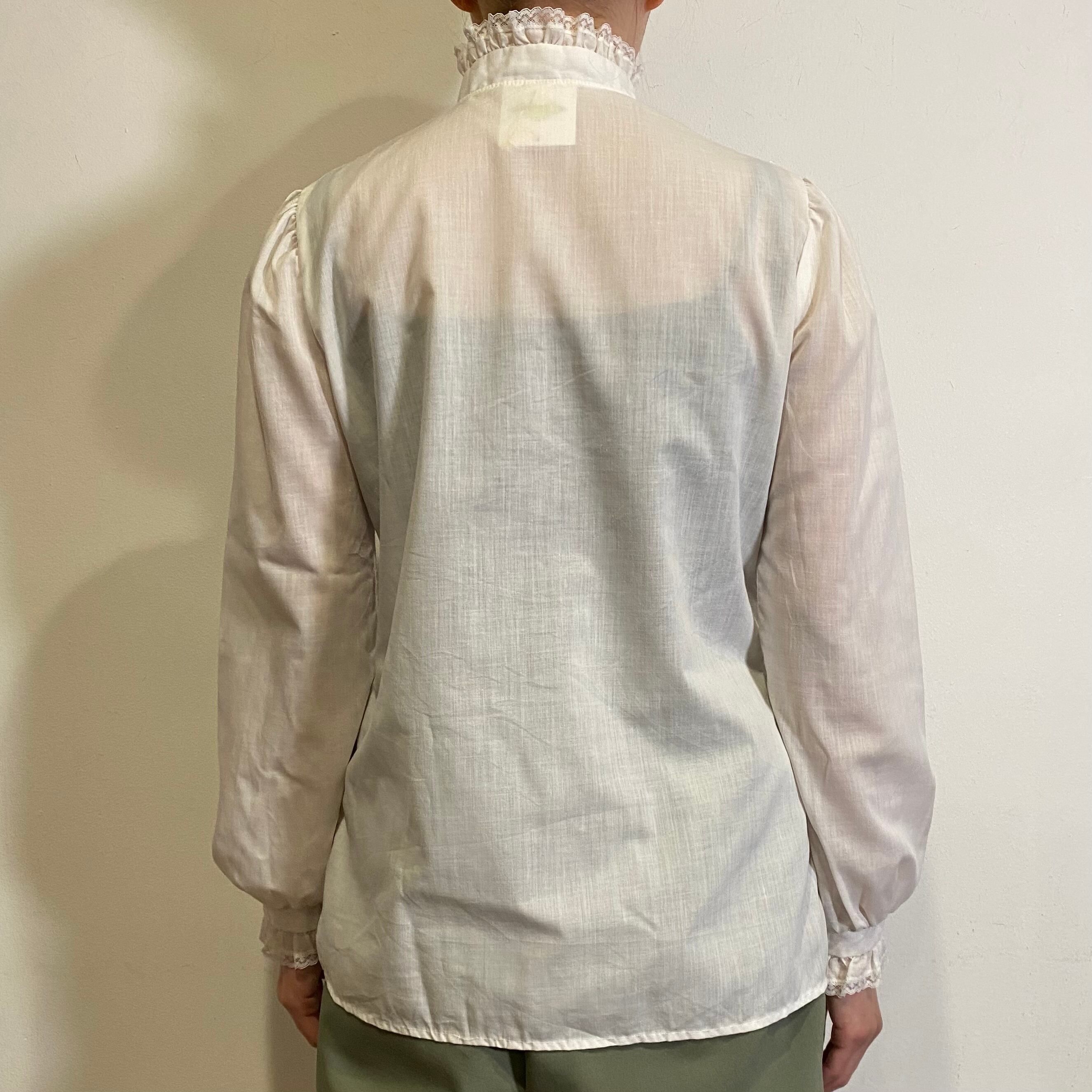 首回りや袖周りのレース使いがとってもかわいい、70年代のブラウスです。