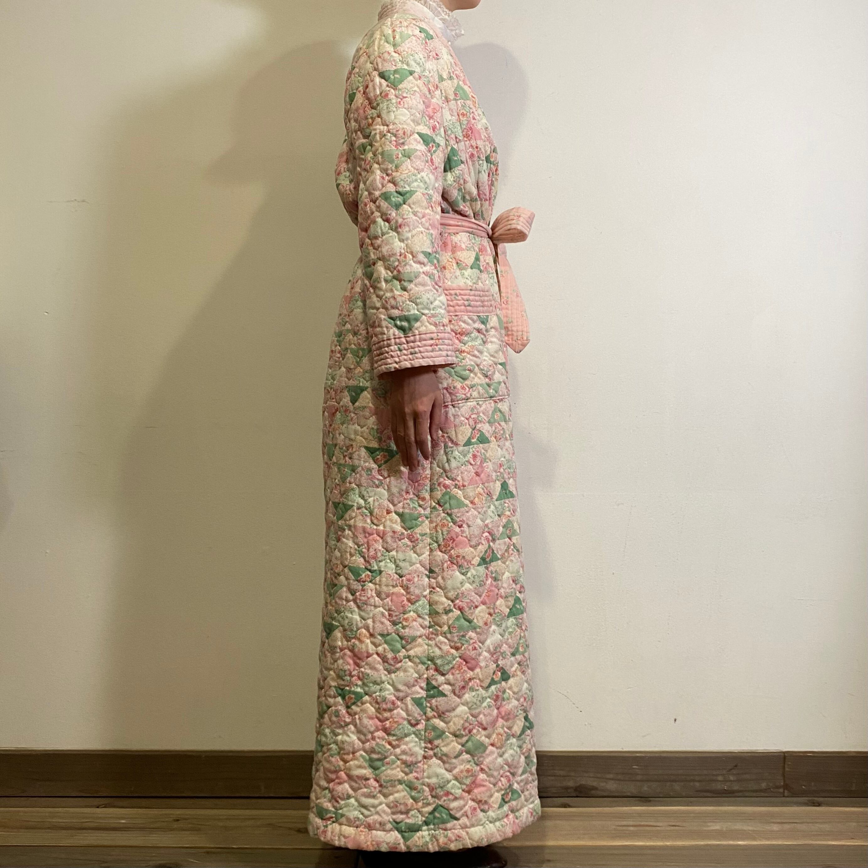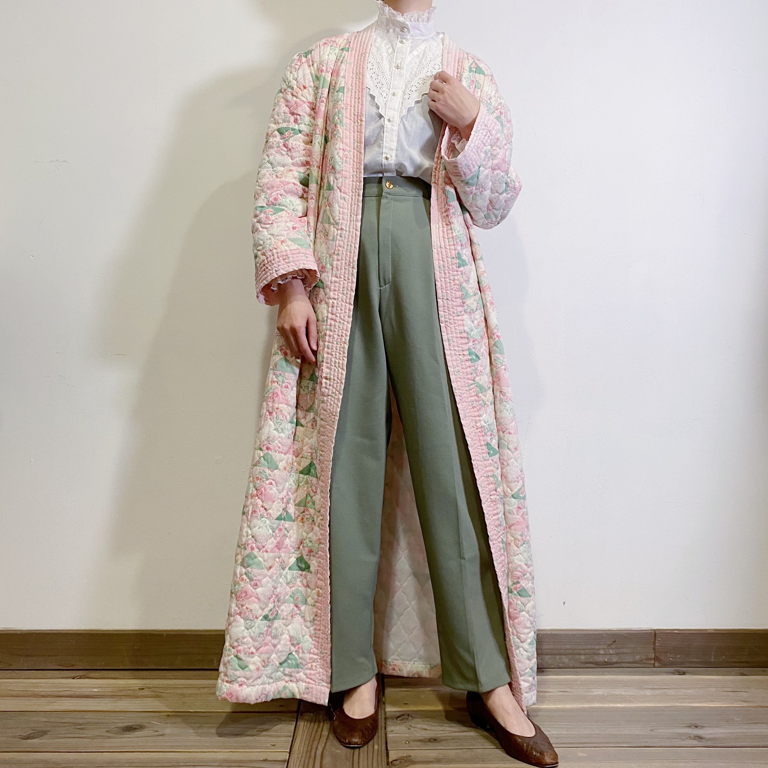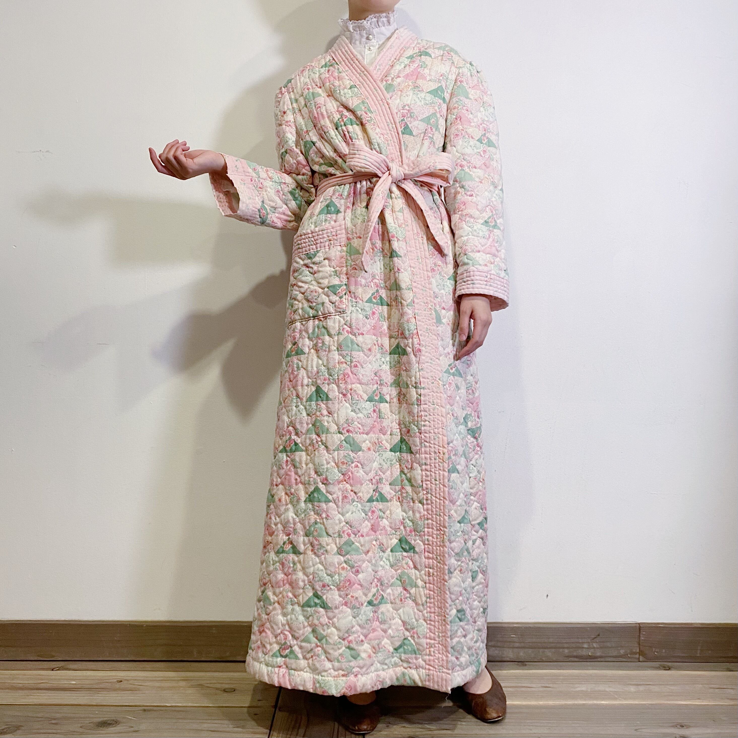 淡いベビーピンクベースの花柄がかわいい、80年代頃のロングガウンです。