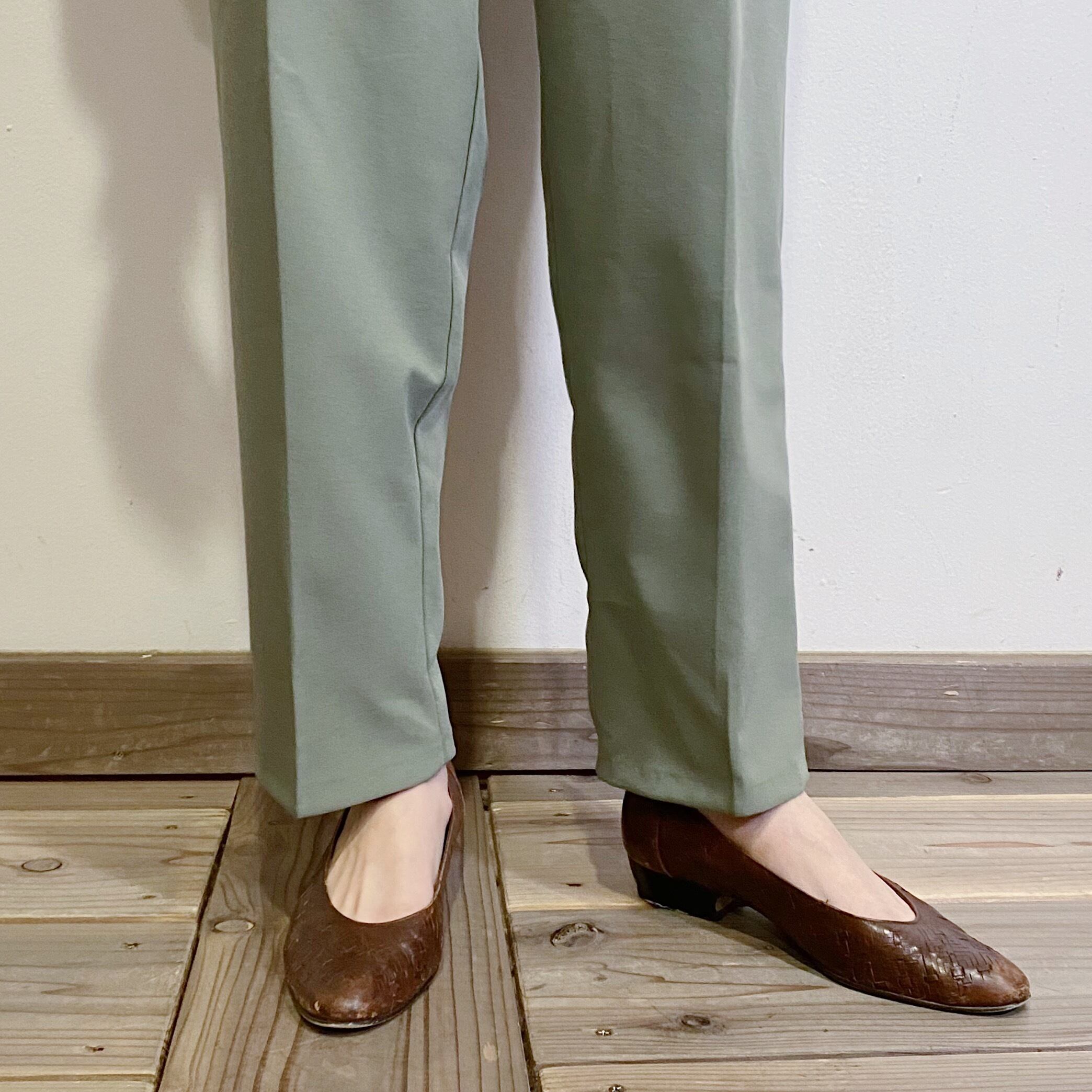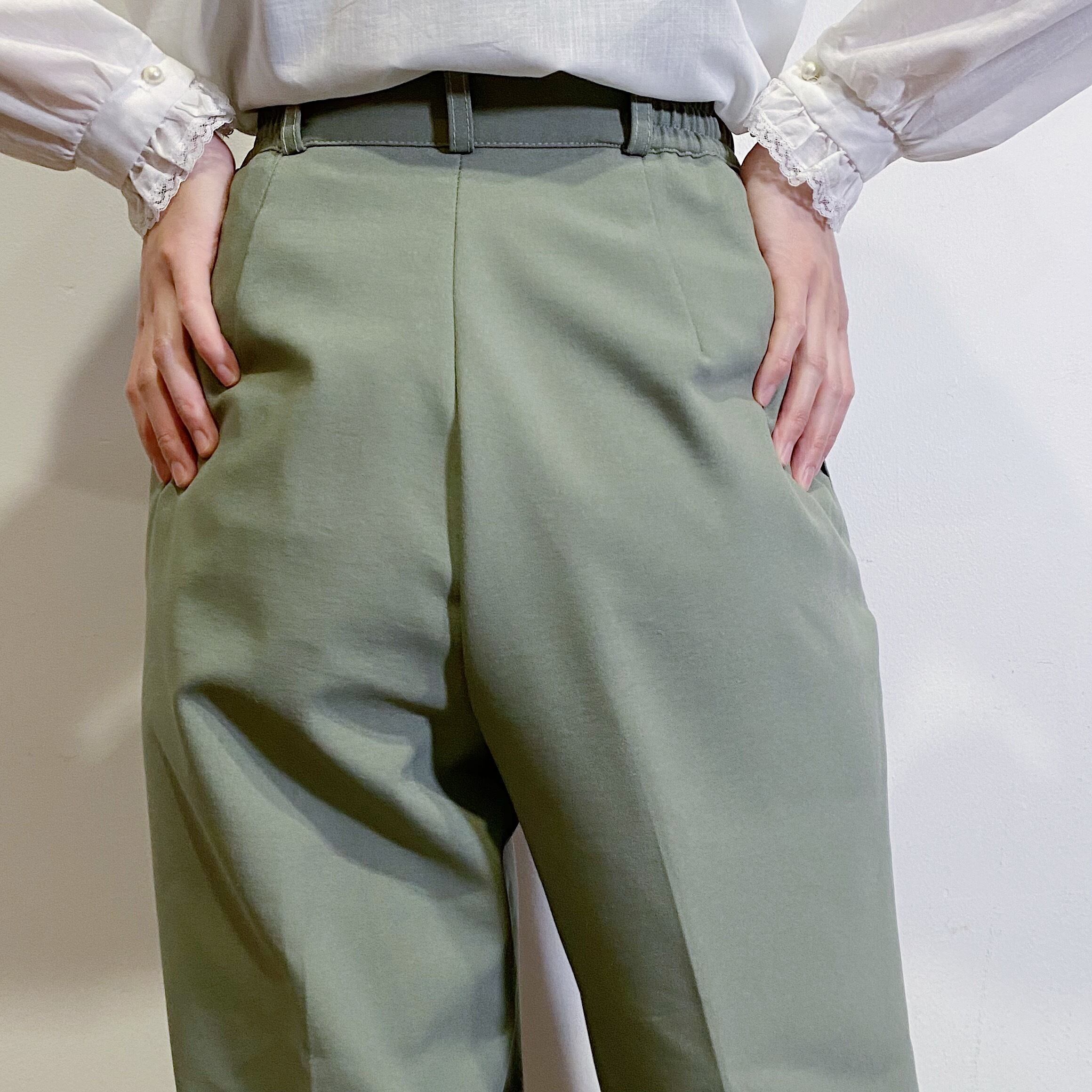 やわらかなペールグリーンカラーが素敵な、90年代のタックパンツです。