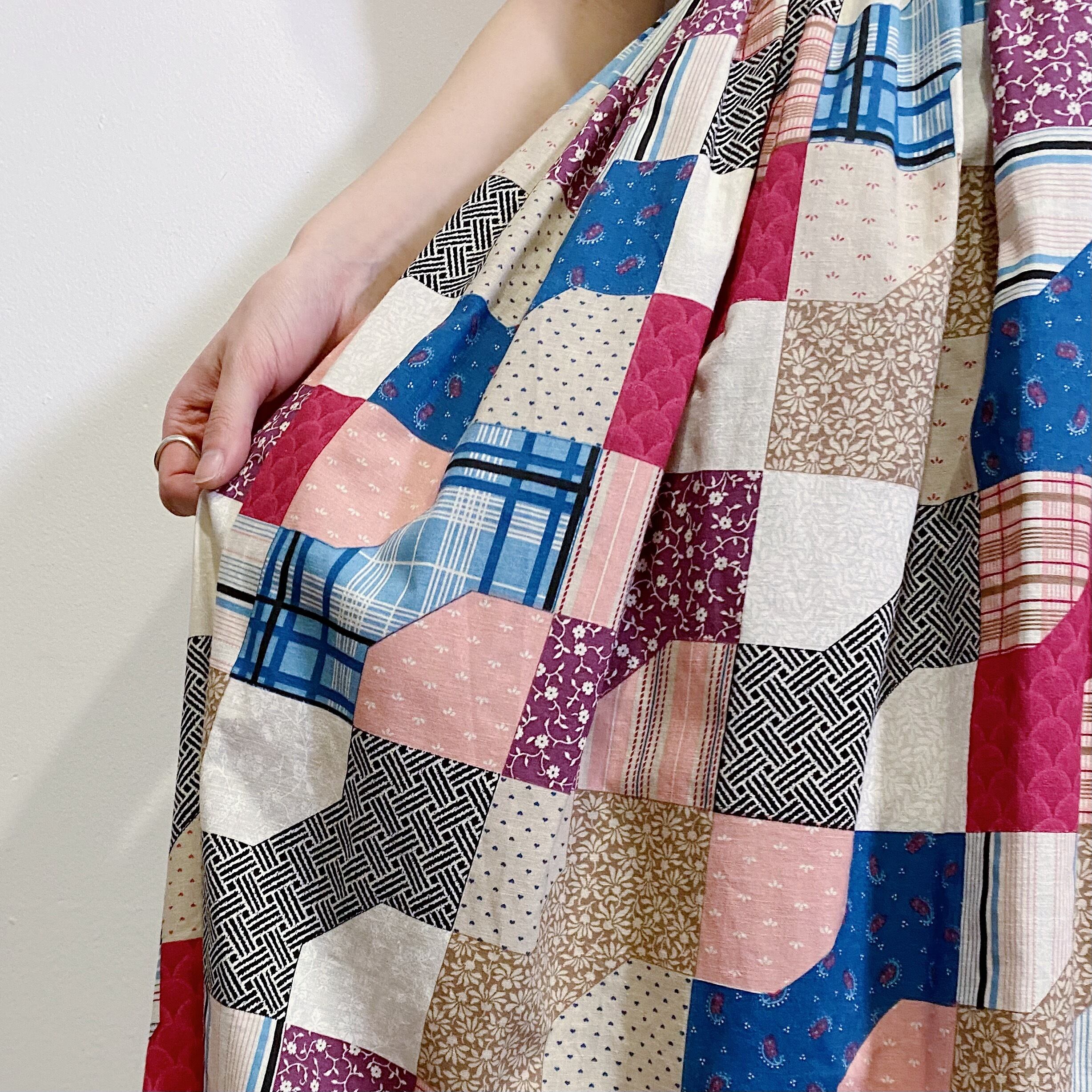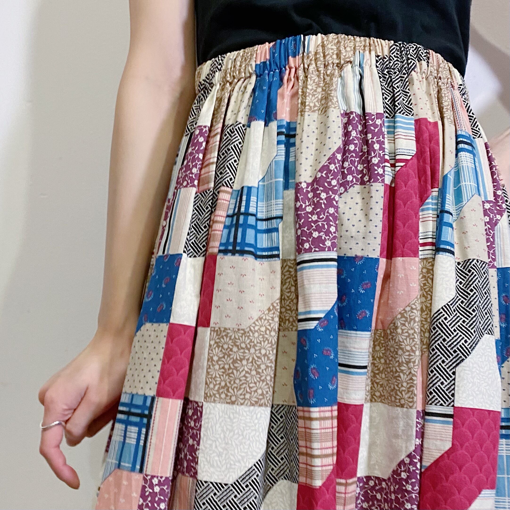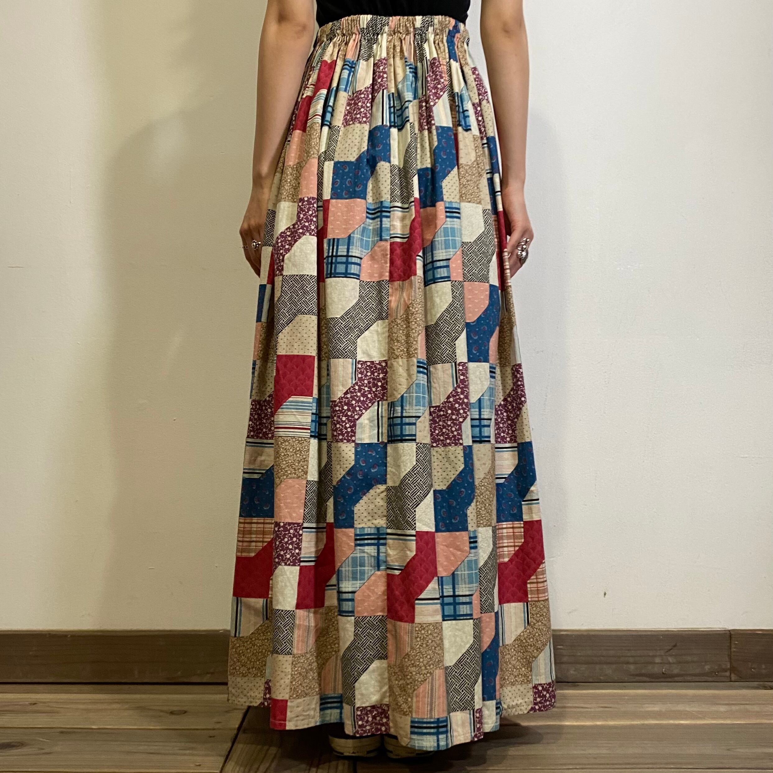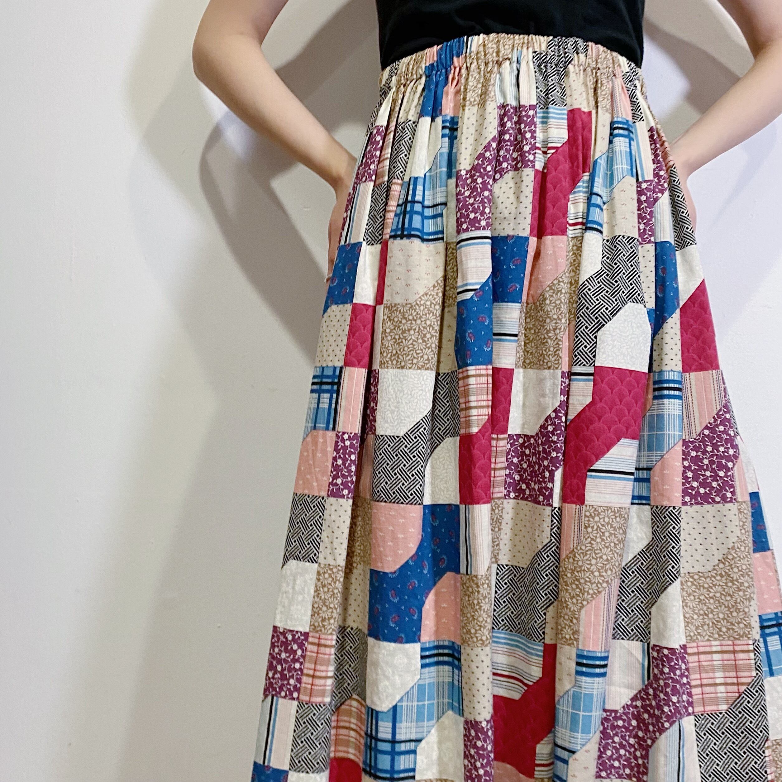 カラフルなパッチワーク柄がキュートな、70年代のロングスカートです。