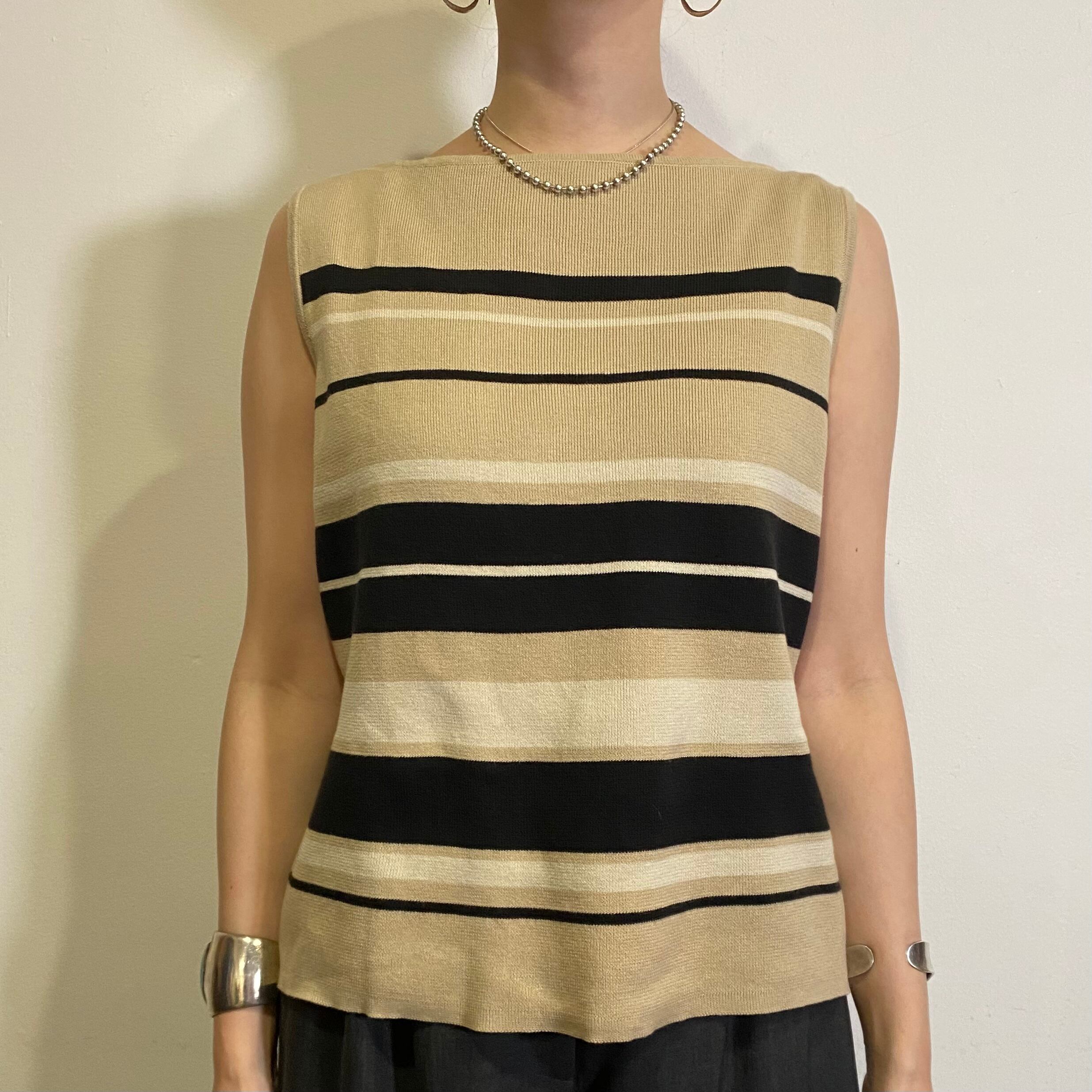 ベージュとブラックのストライプが可愛いノースリーブトップスです。