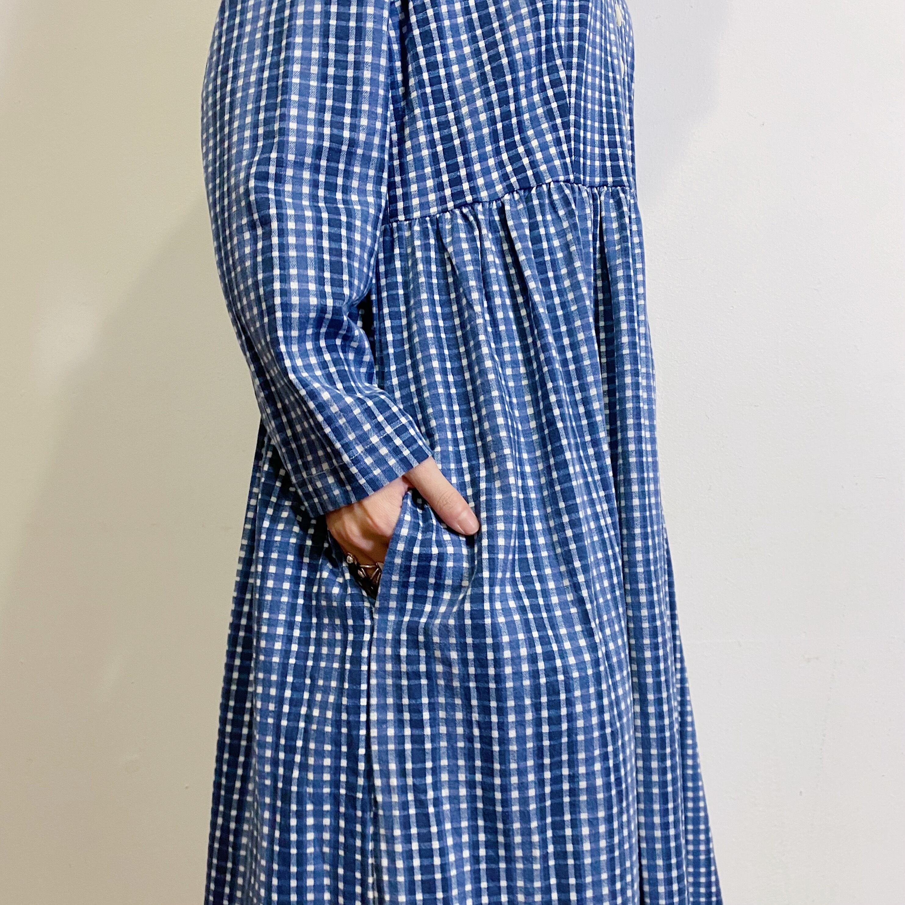 ホワイトとブルーのギンガムチェックがキュートな、80〜90年代のワンピースです。