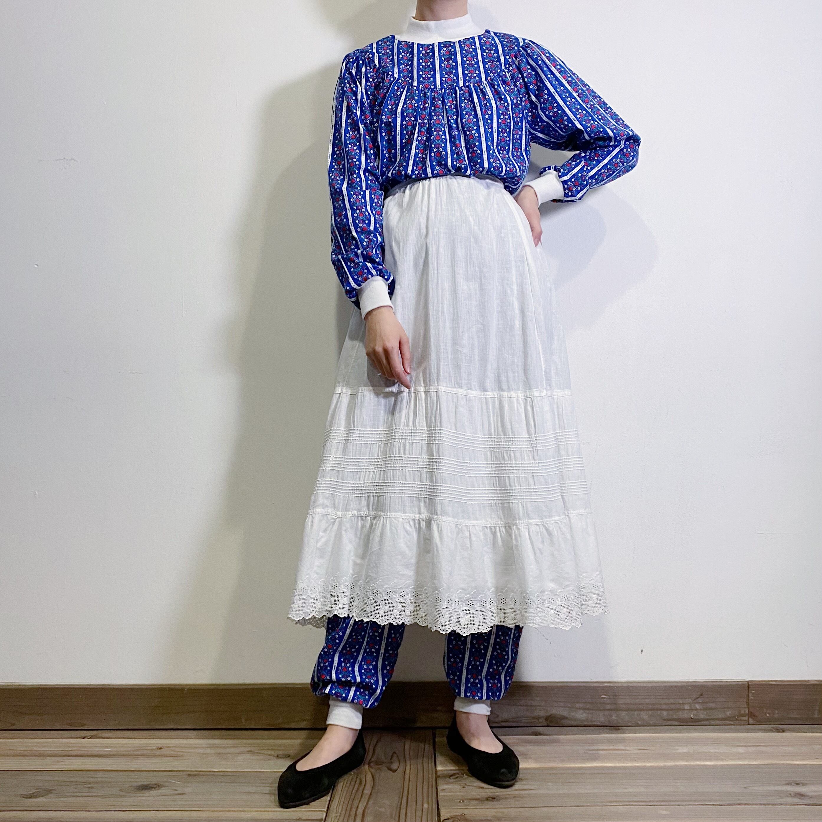 青と白のストライプが可愛い、70年代のツーピースです。