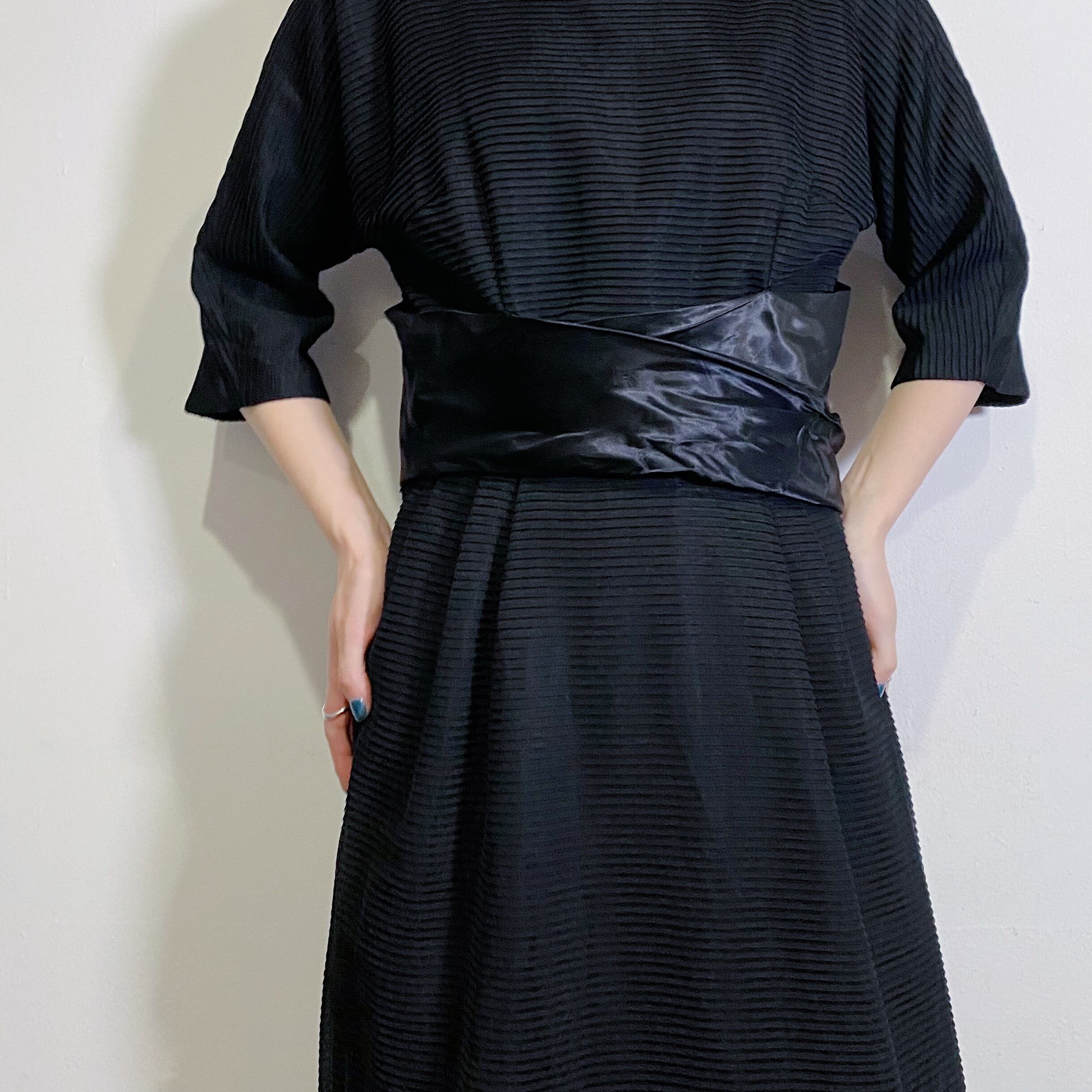 細かなプリーツ加工が施された綺麗なIラインシルエットが魅力的な、50年代のドレスです。