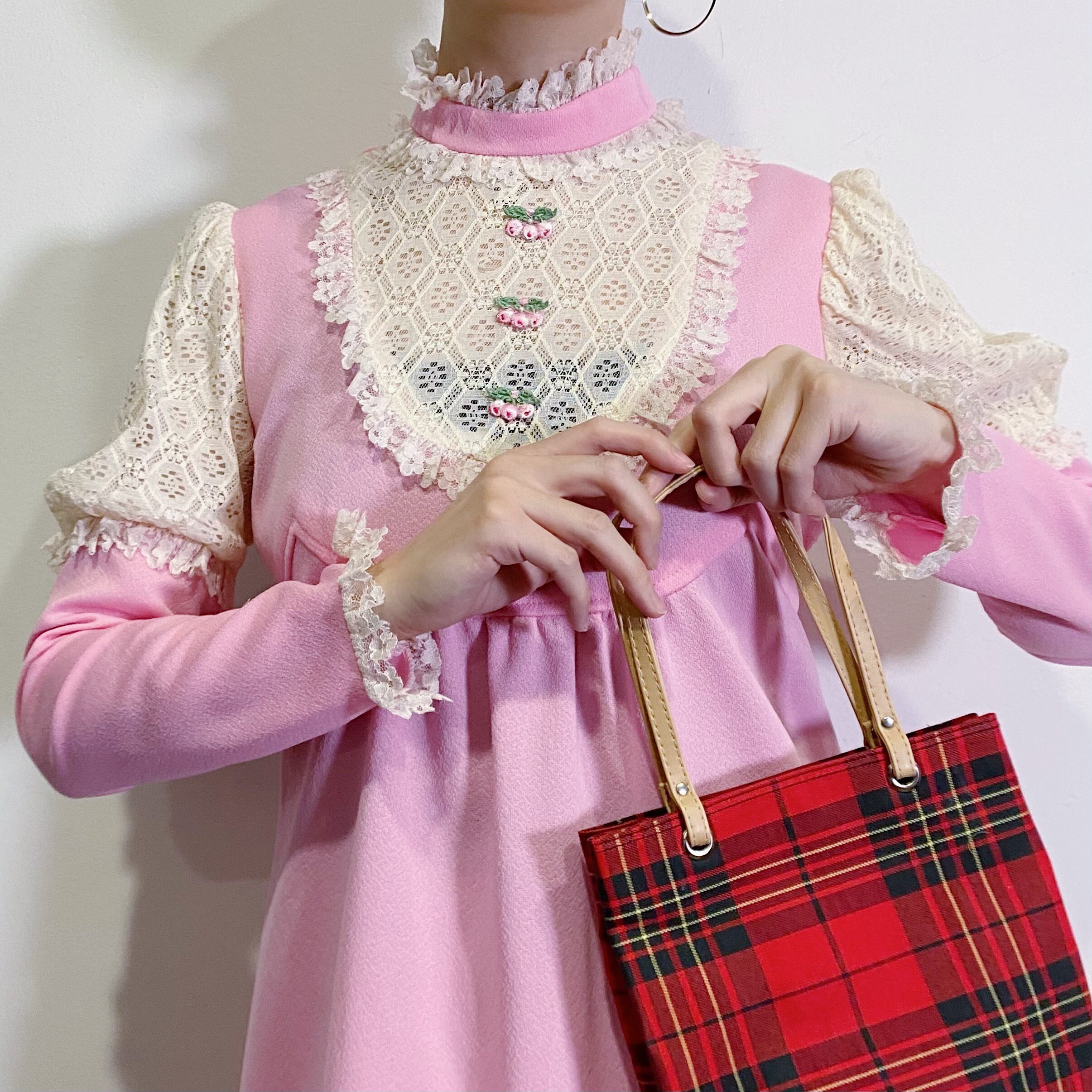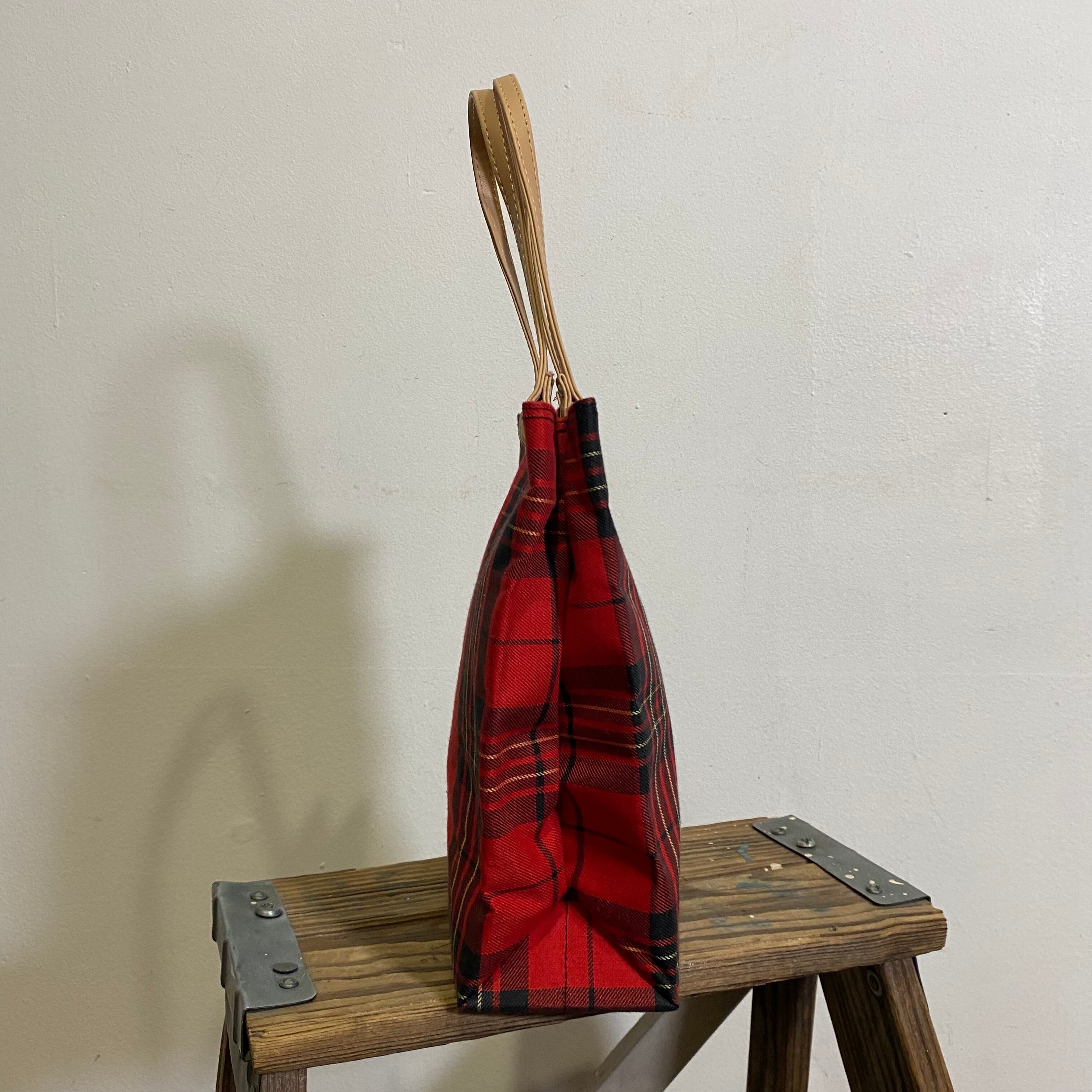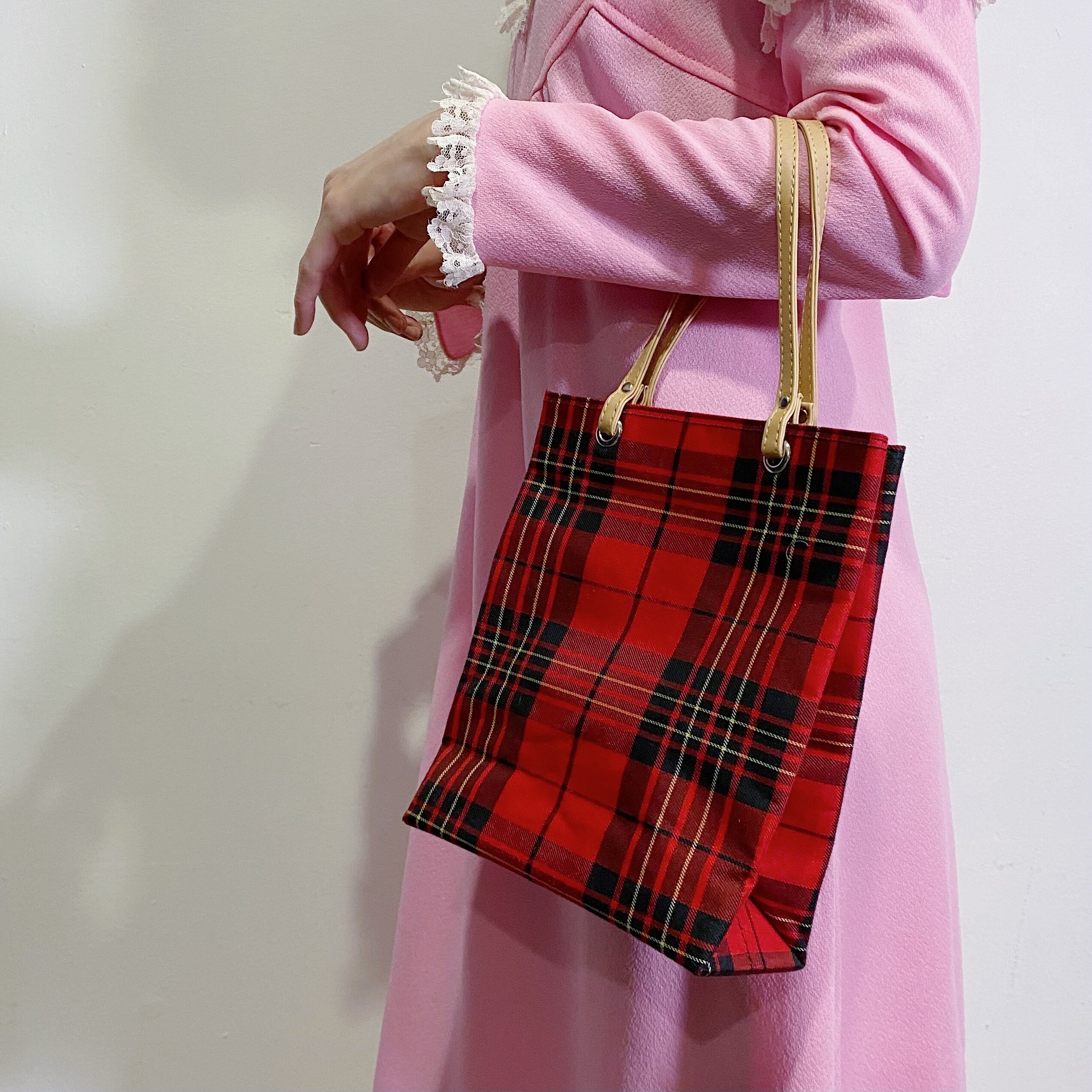 レッドカラーのタータンチェックがかわいい、トートバックです。
