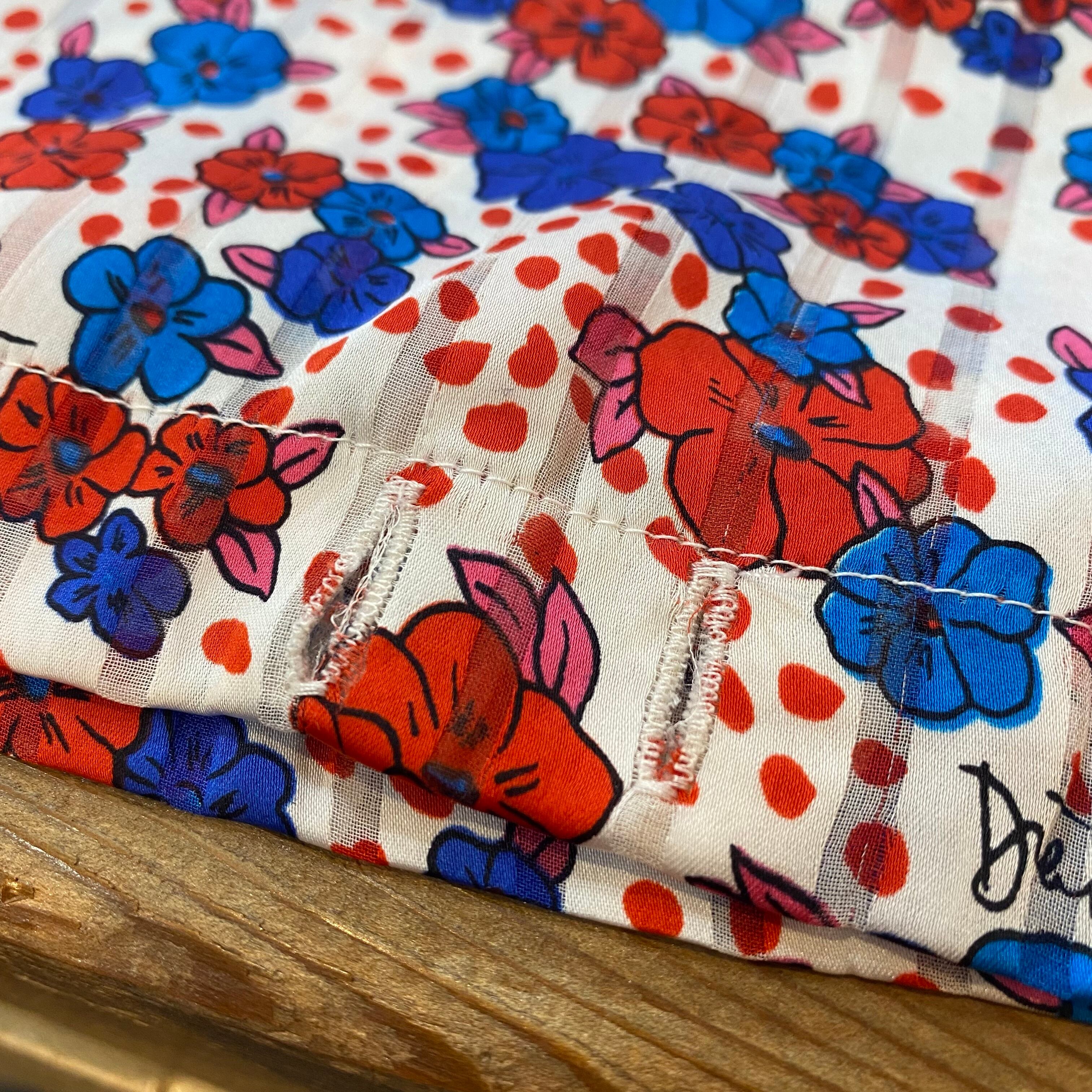 お花と鳥の鮮やかなレッドとブルーの綺麗な色合いもダイアンらしい一枚。