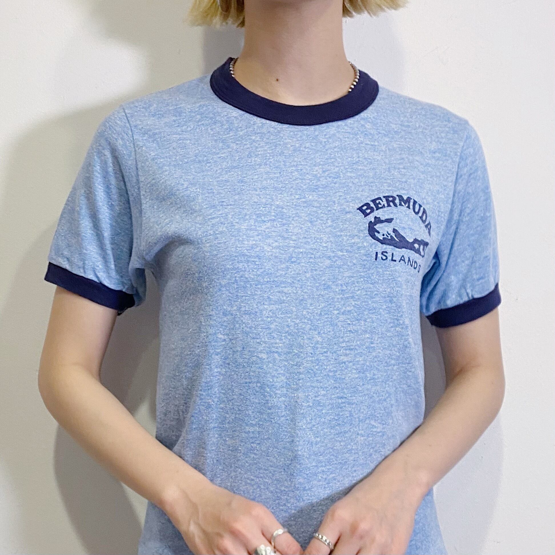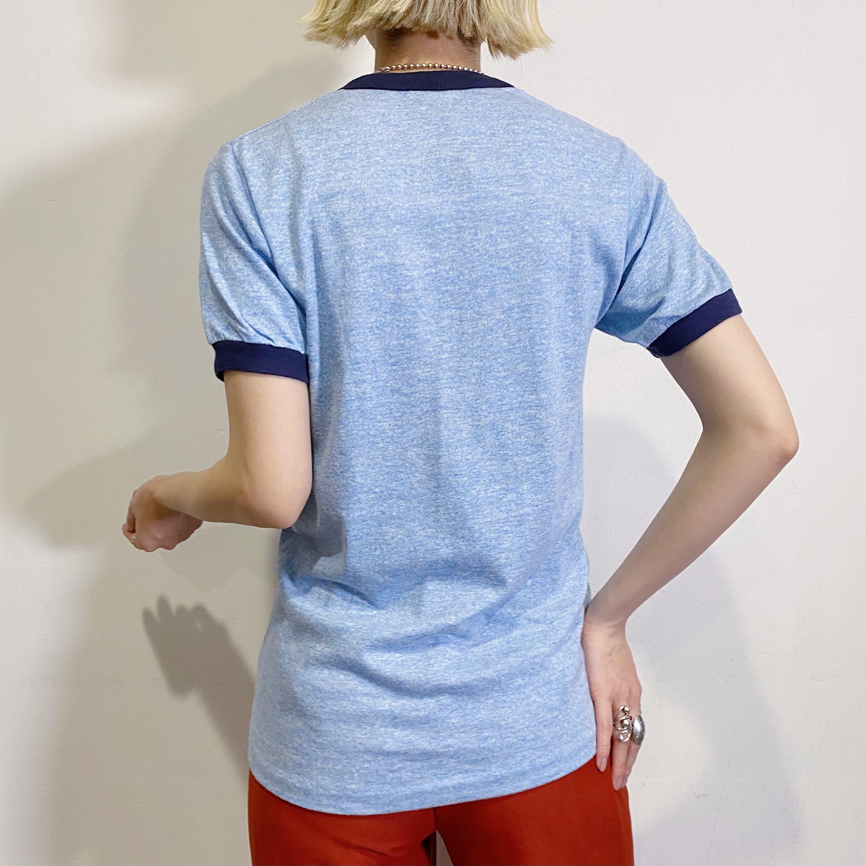 ネイビーとサックスブルーの色合いが可愛い、70年代のリンガーTです。