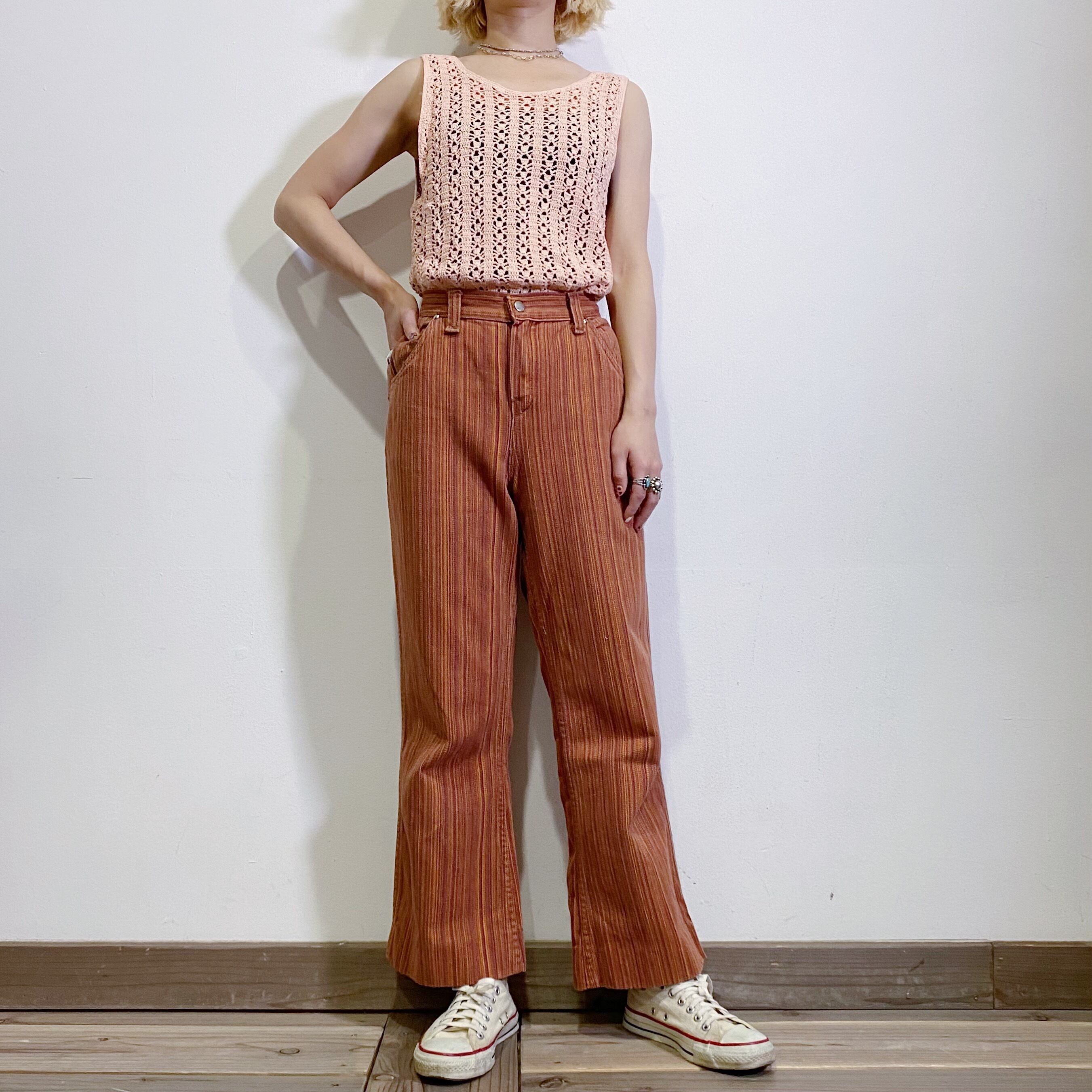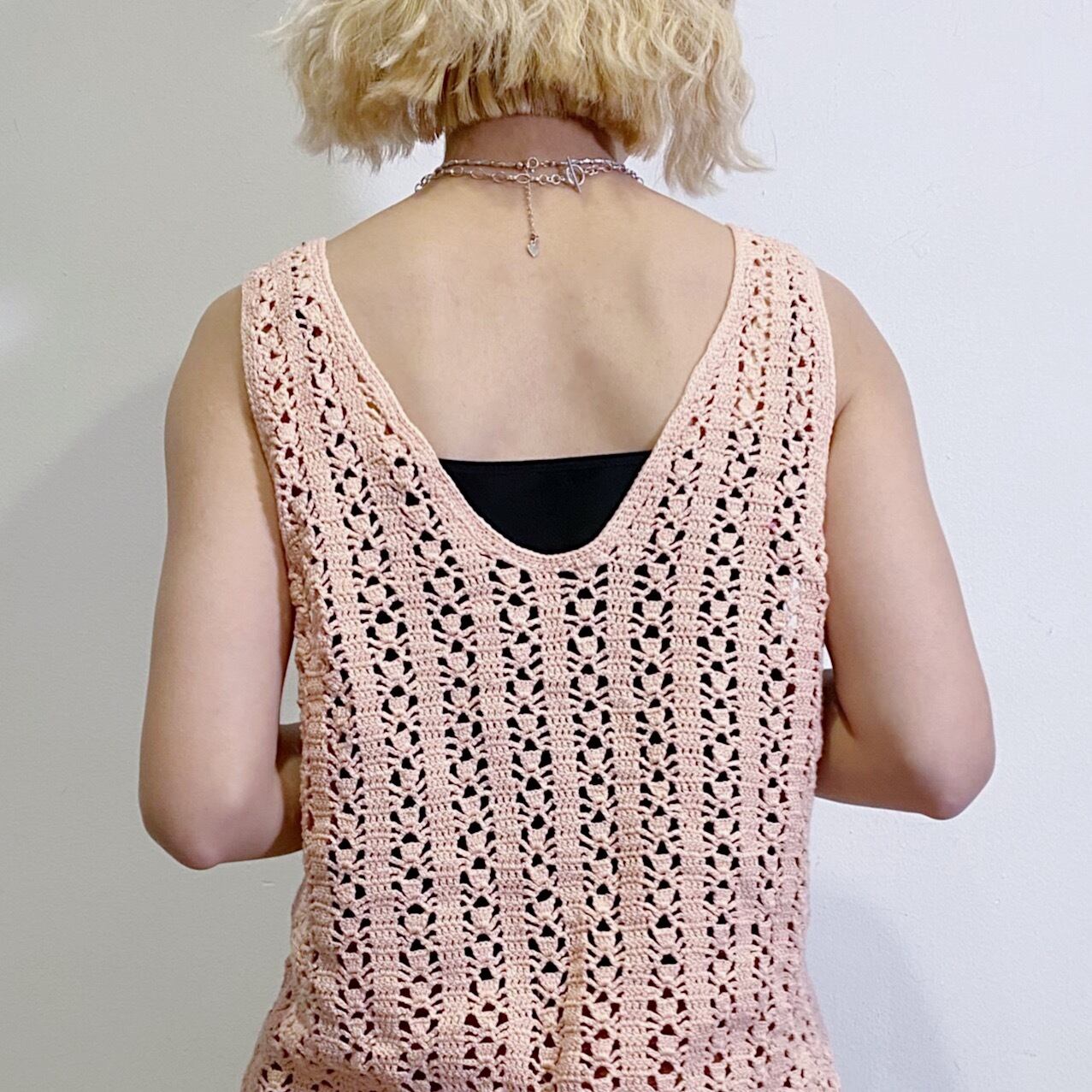 サーモンピンクの色合いが可愛い、70年代くらいのクロシェトップです。