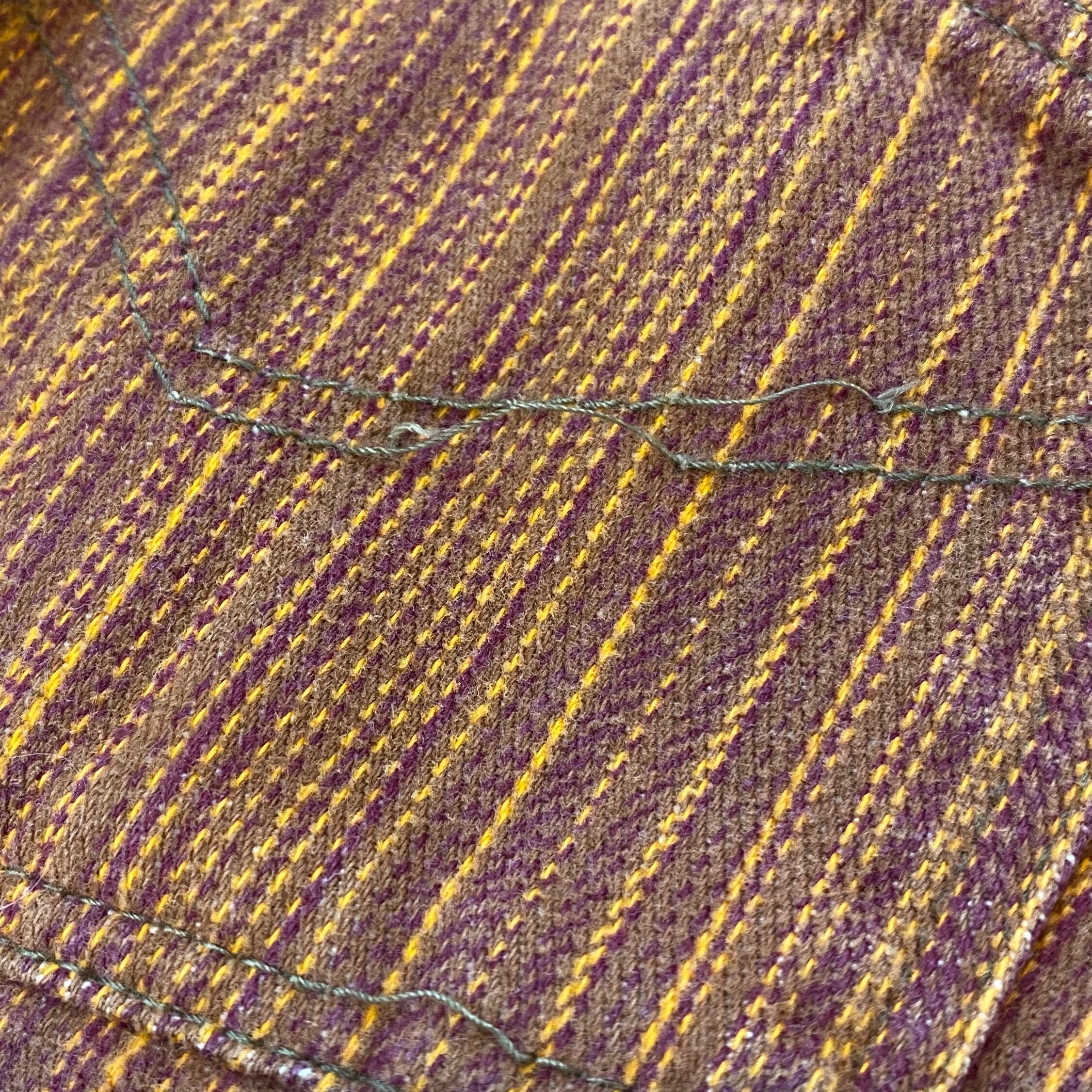 ヒッピー感溢れる色合いが可愛い、70年代のコットンフレアパンツです。