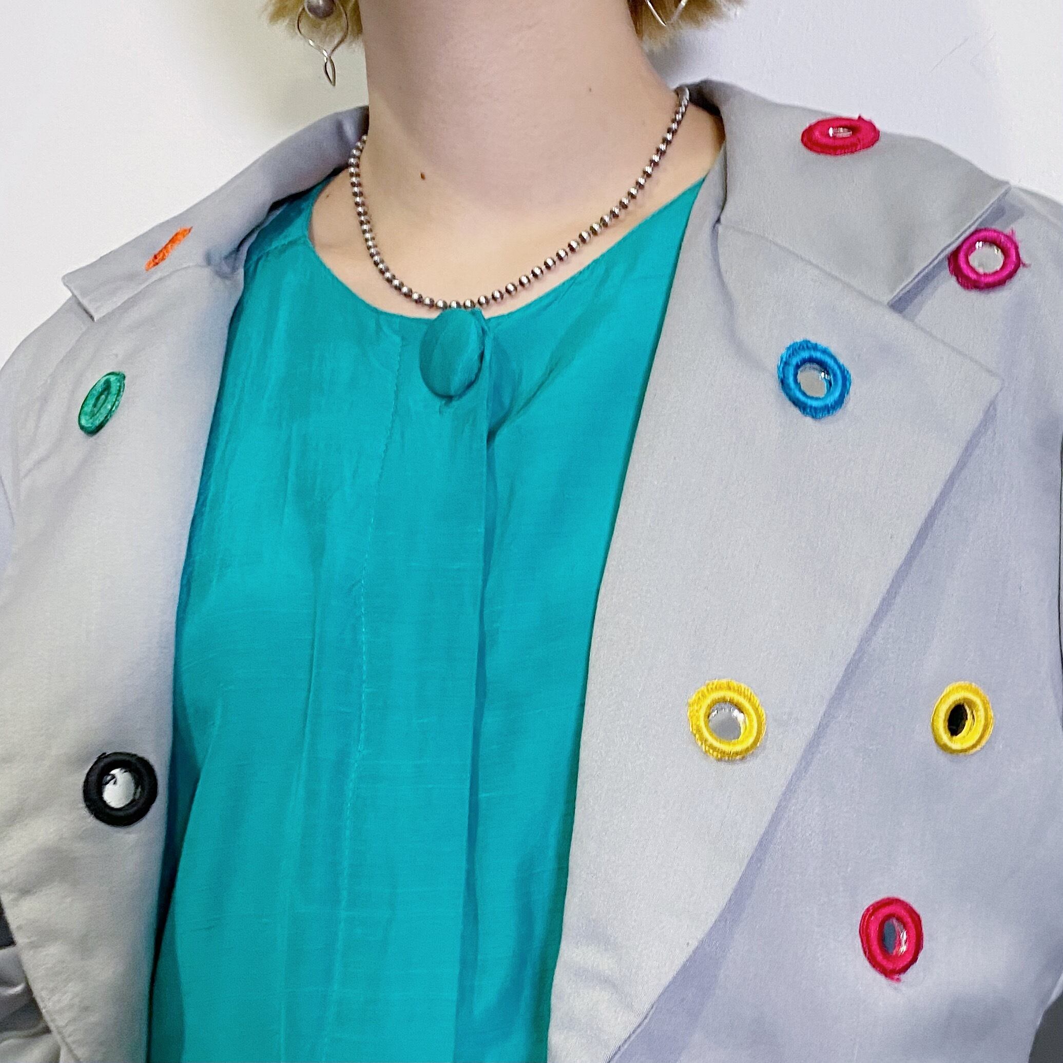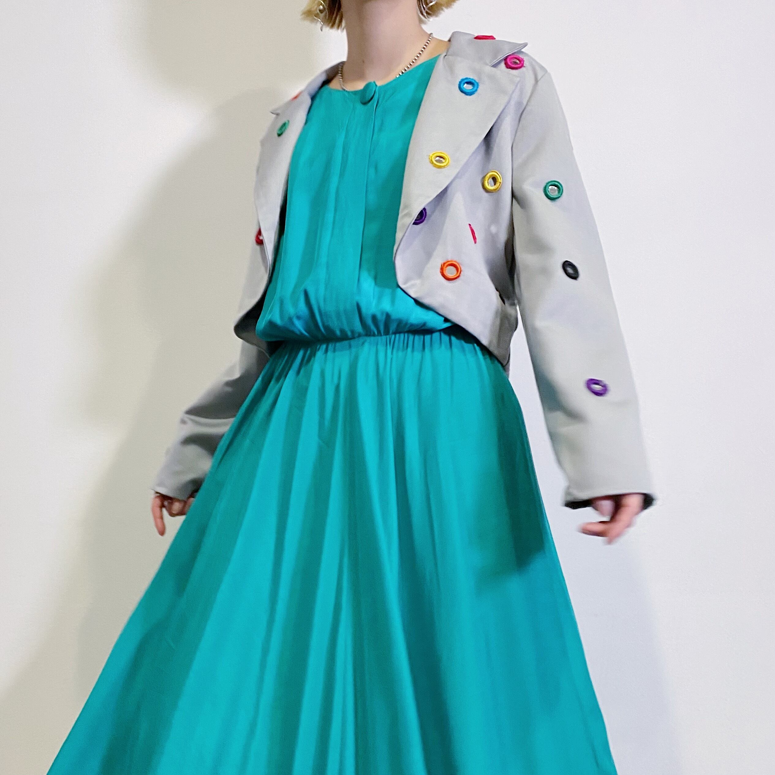 全面に散りばめられたカラフルなミラーワークが可愛い、80年代のジャケットです。
