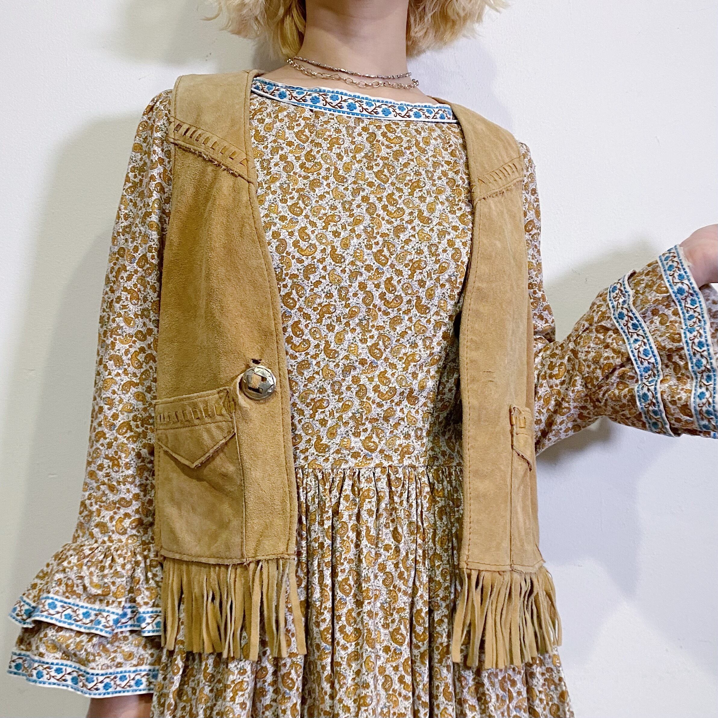 裾のフリンジやフロントのコンチョが可愛い、70年代のレザーベストです。