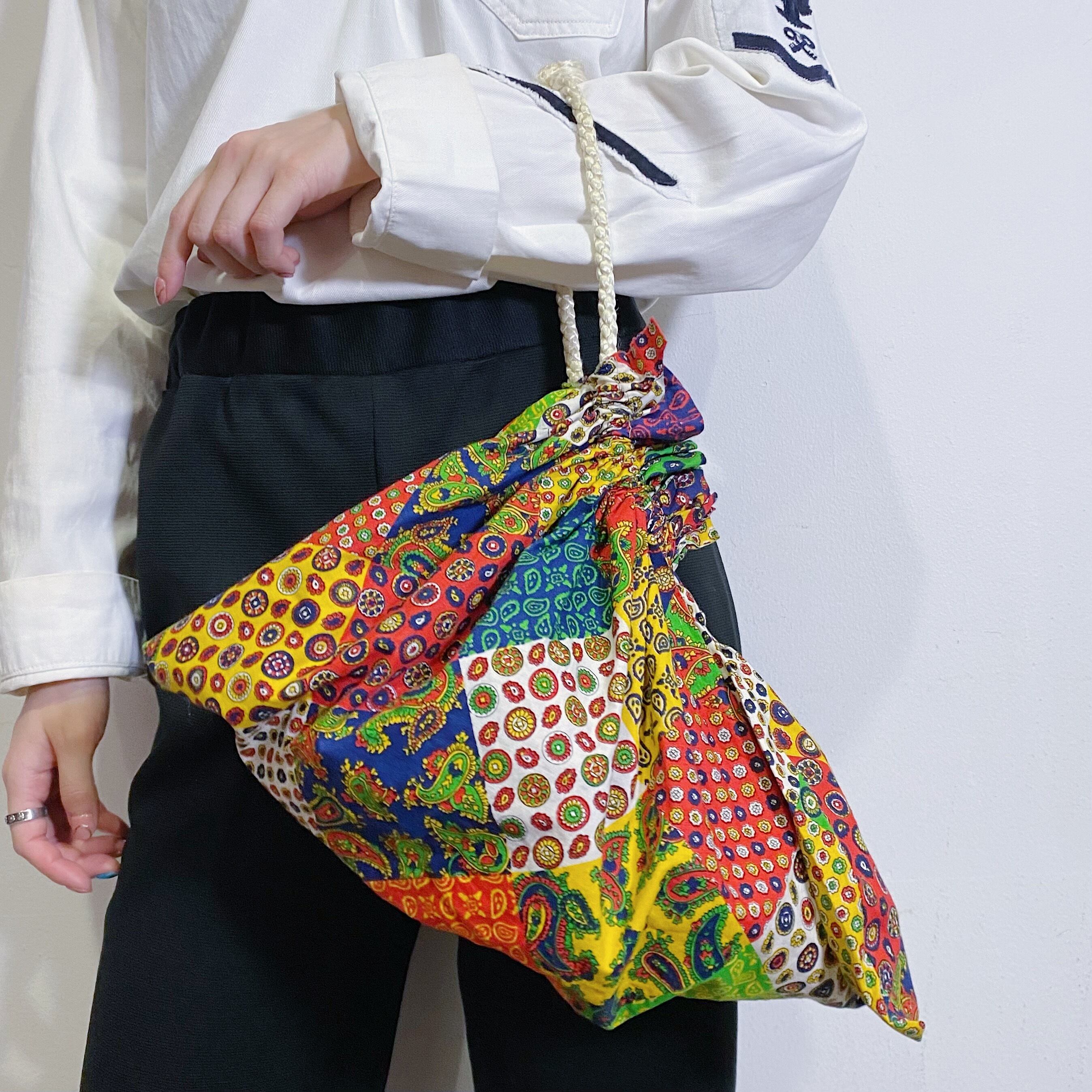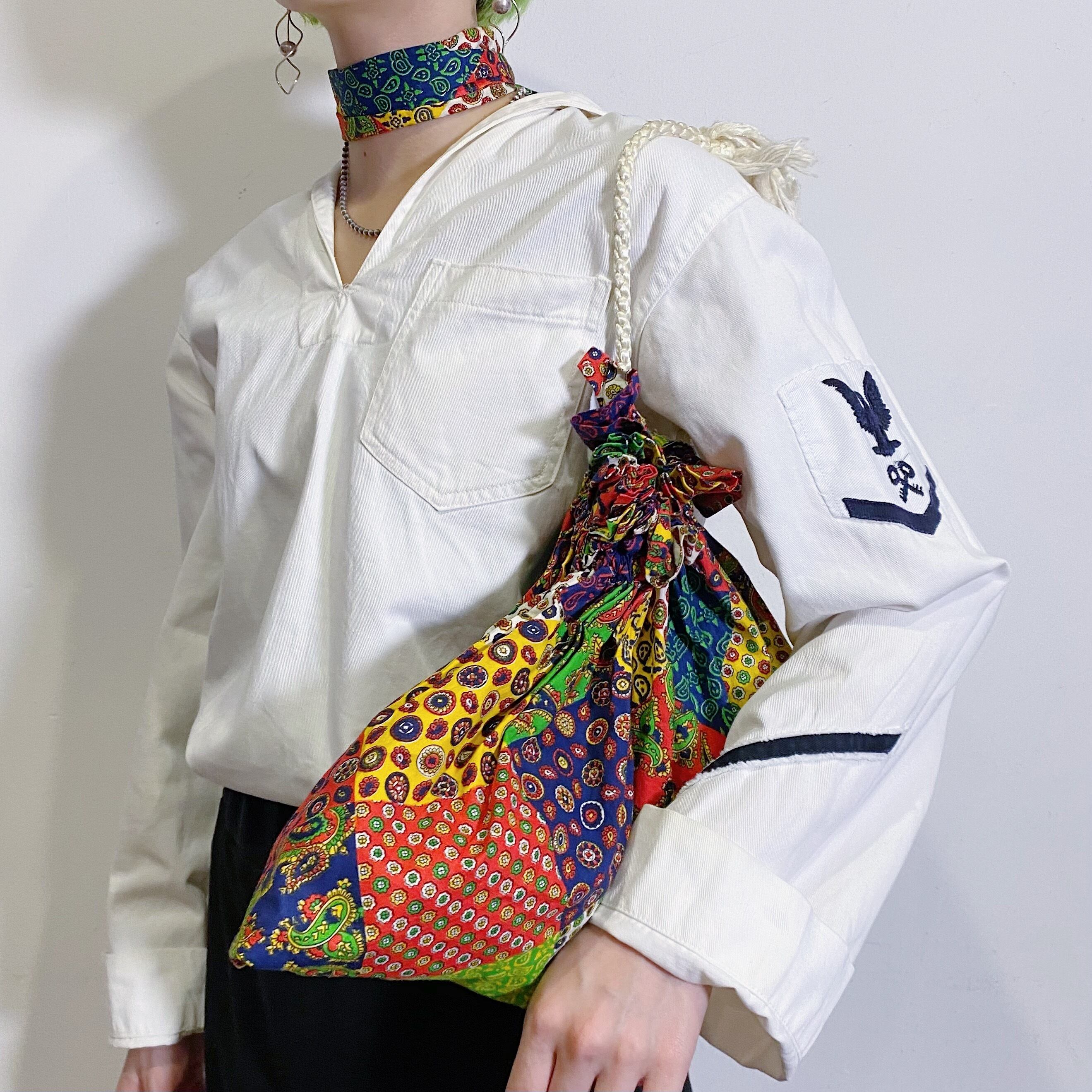 パッチワーク柄が可愛い、70年代のハンドメイドバックです。