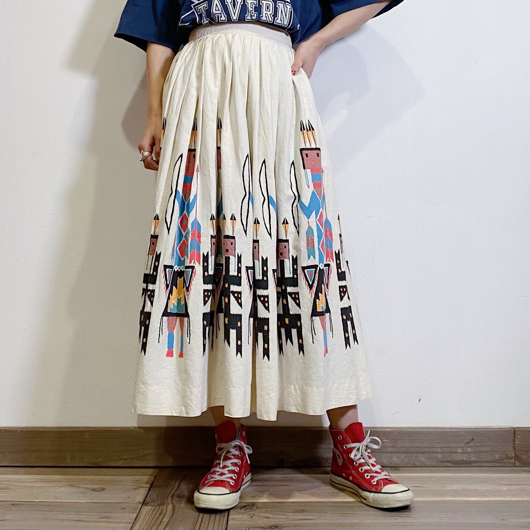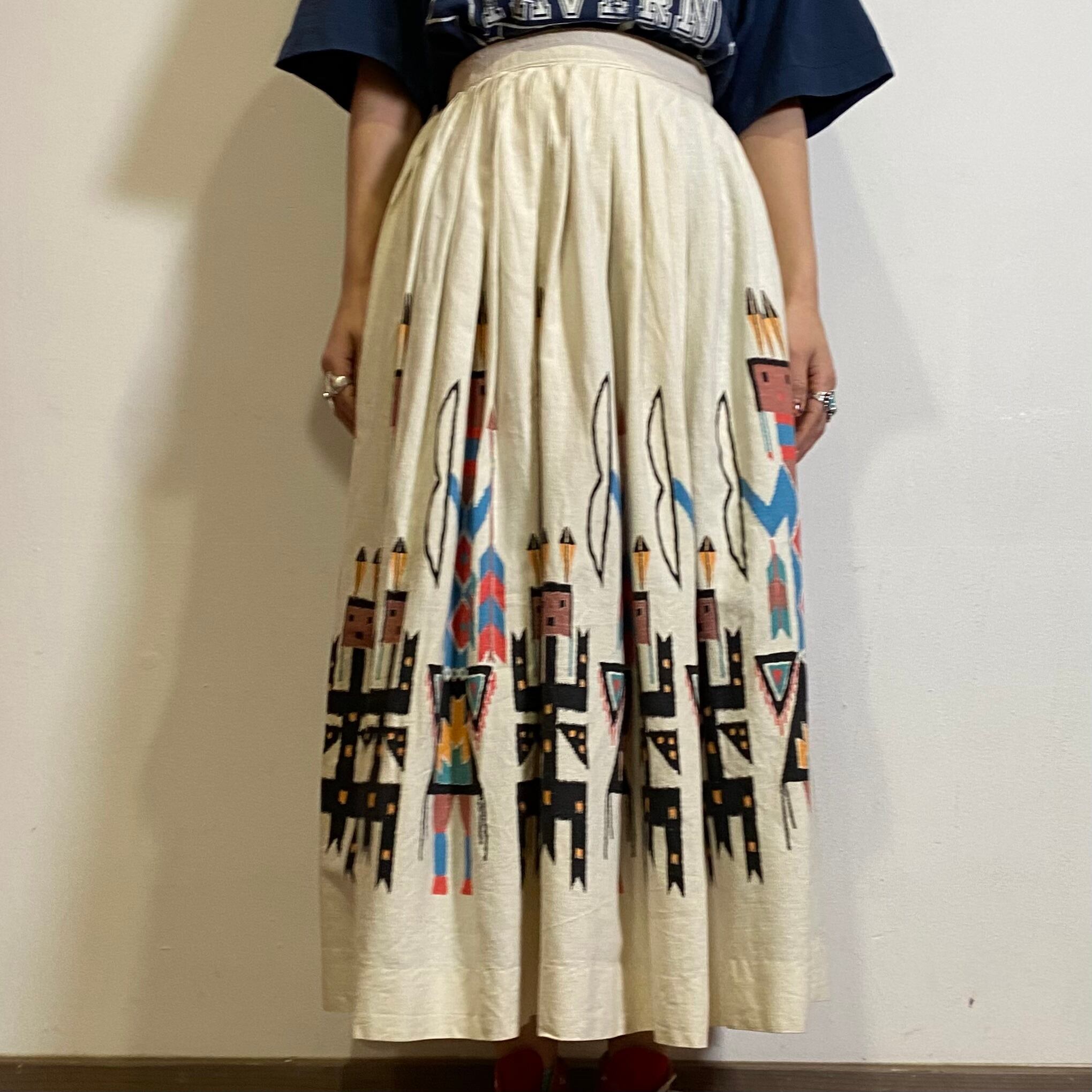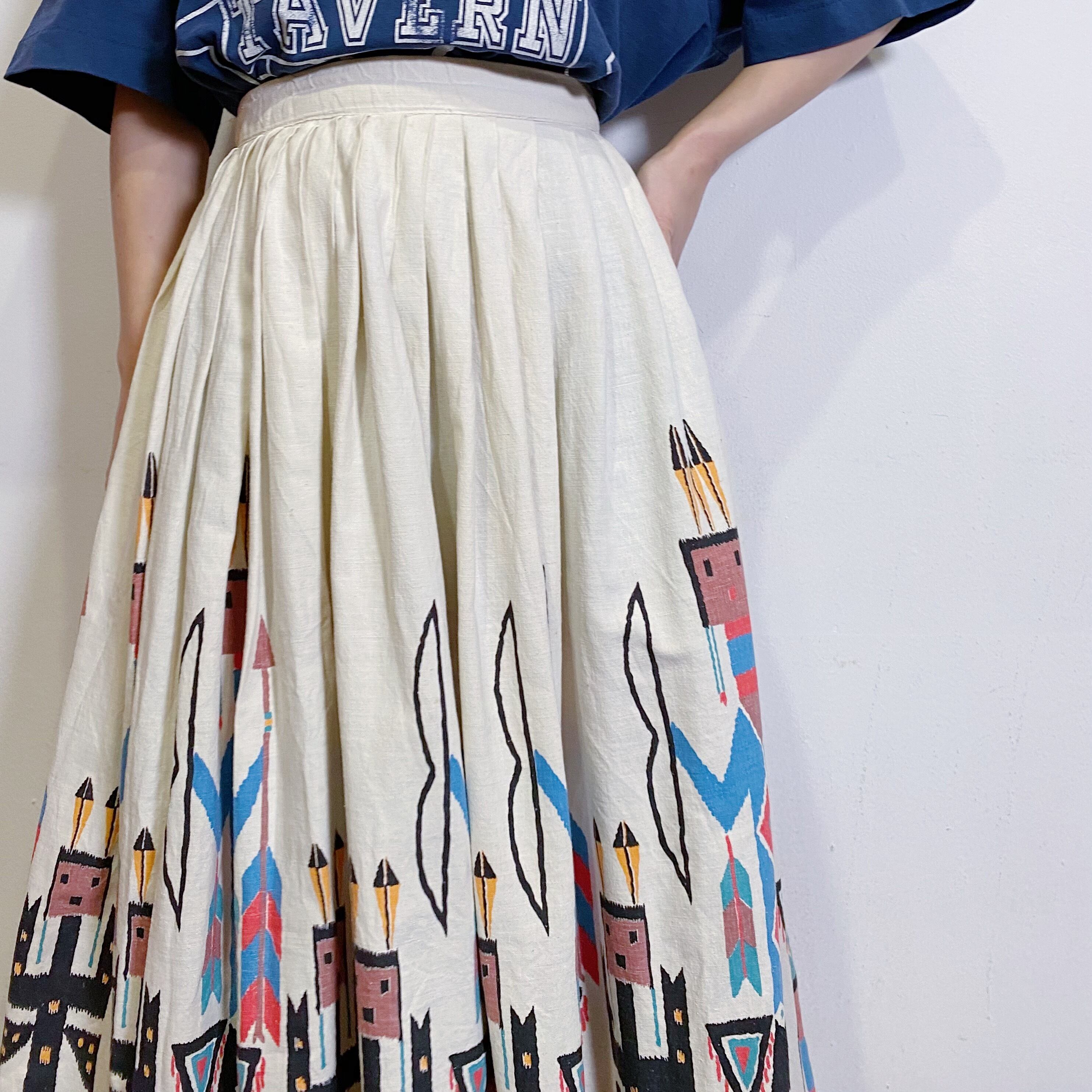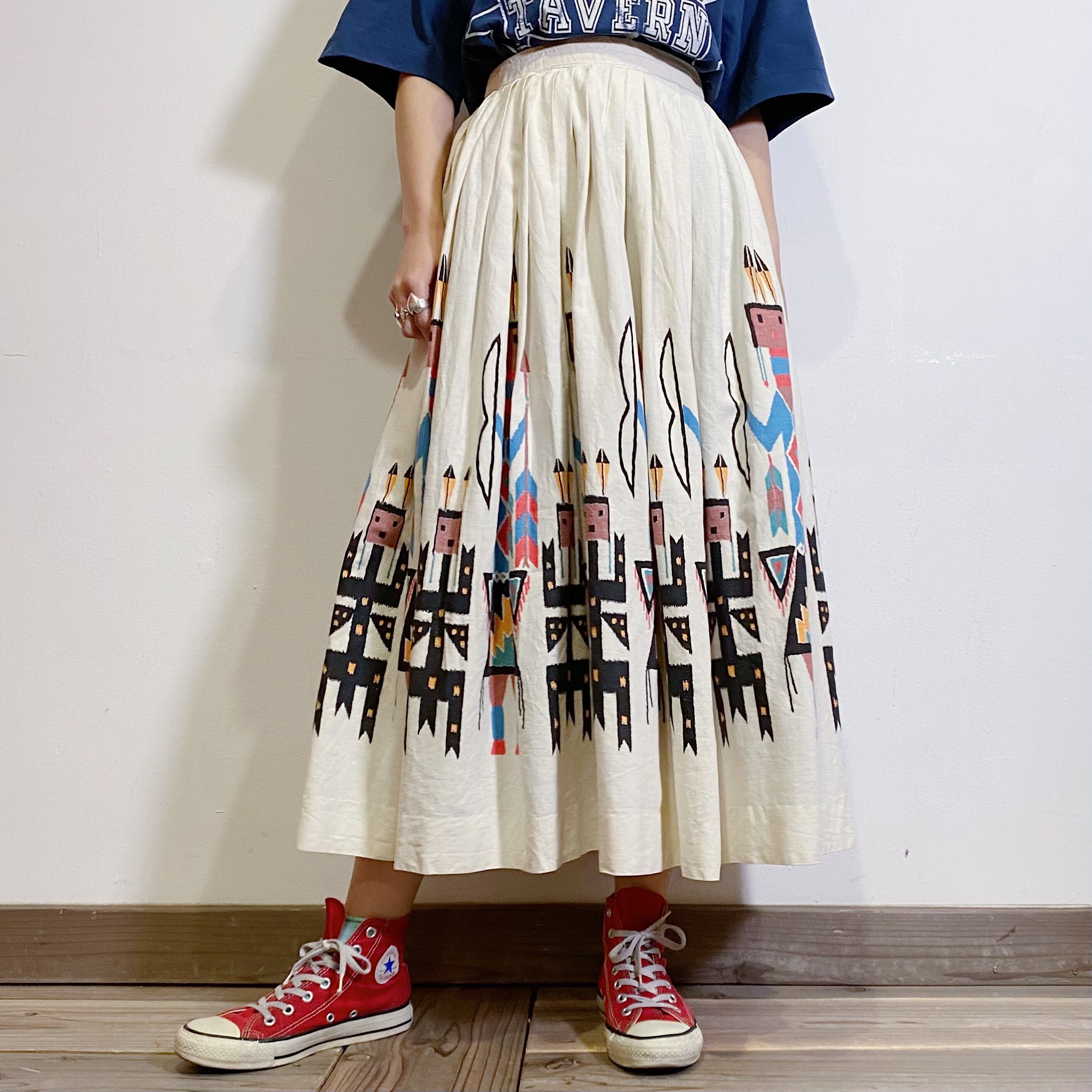 ずらりと並んだネイティブアメリカンのプリントがとっても可愛い、フレアスカートです。